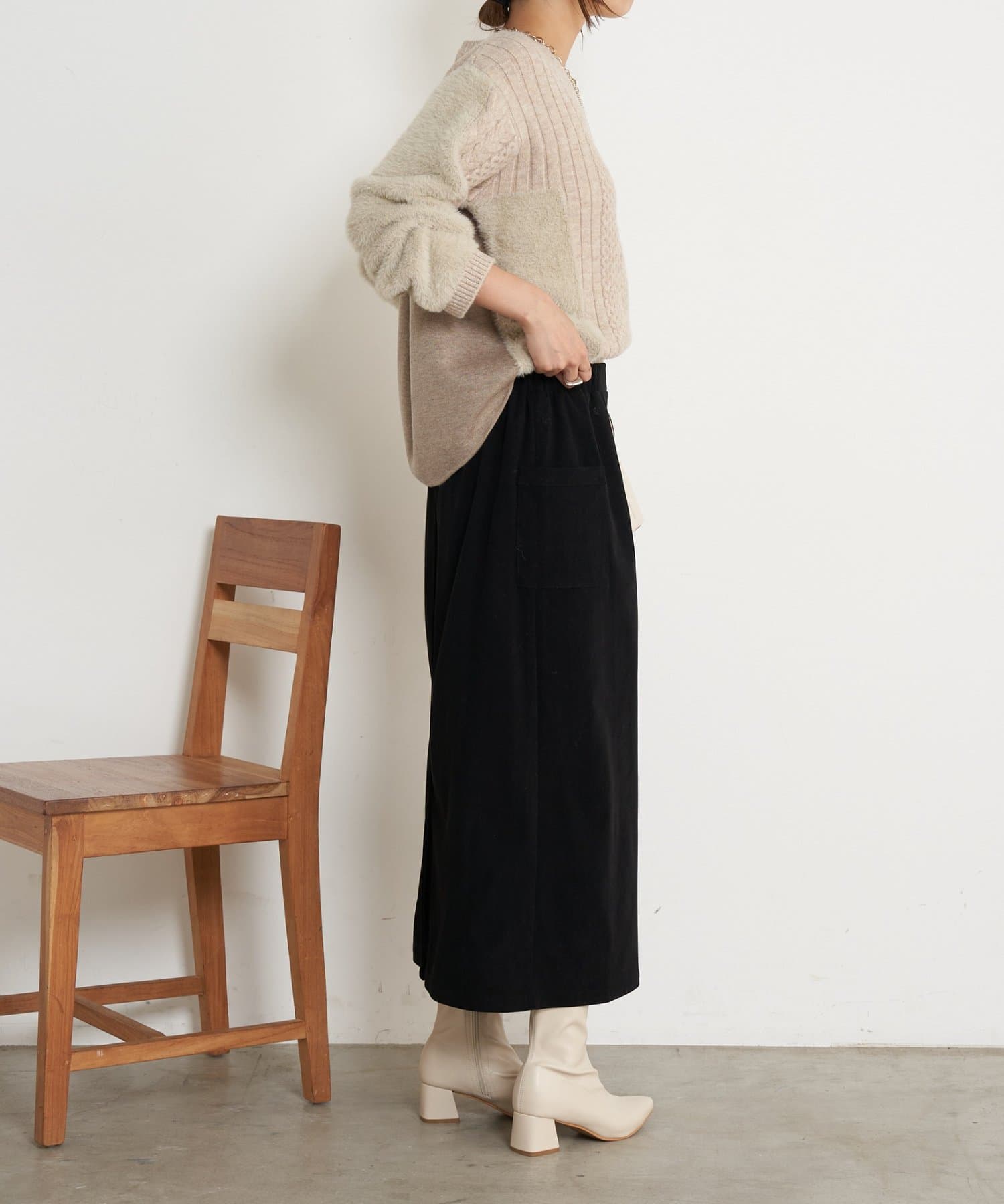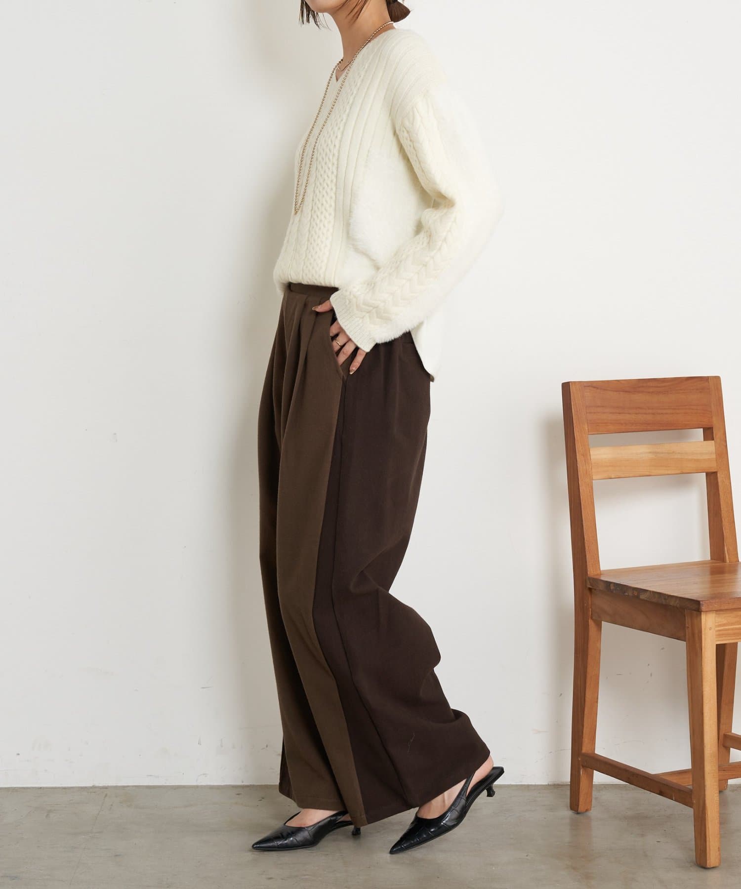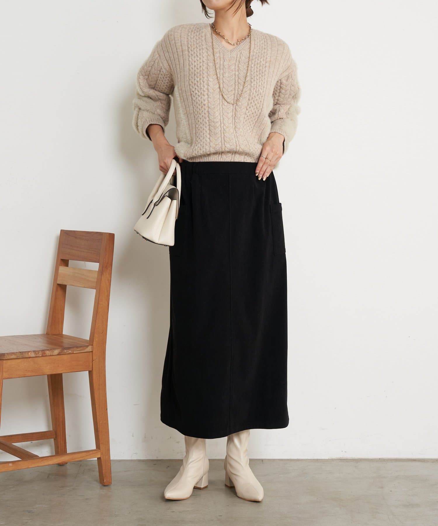・立体感のあるデザインですが、Vネックで抜け感◎着膨れ感なく着こなせます。