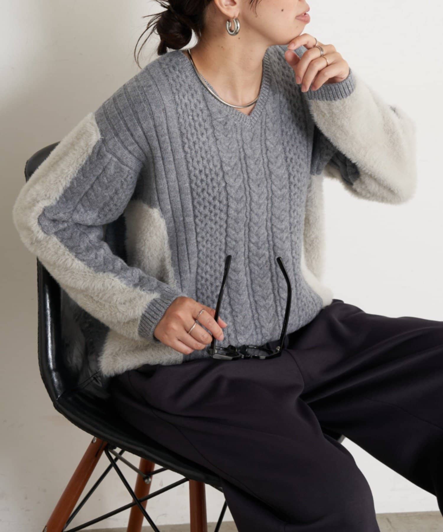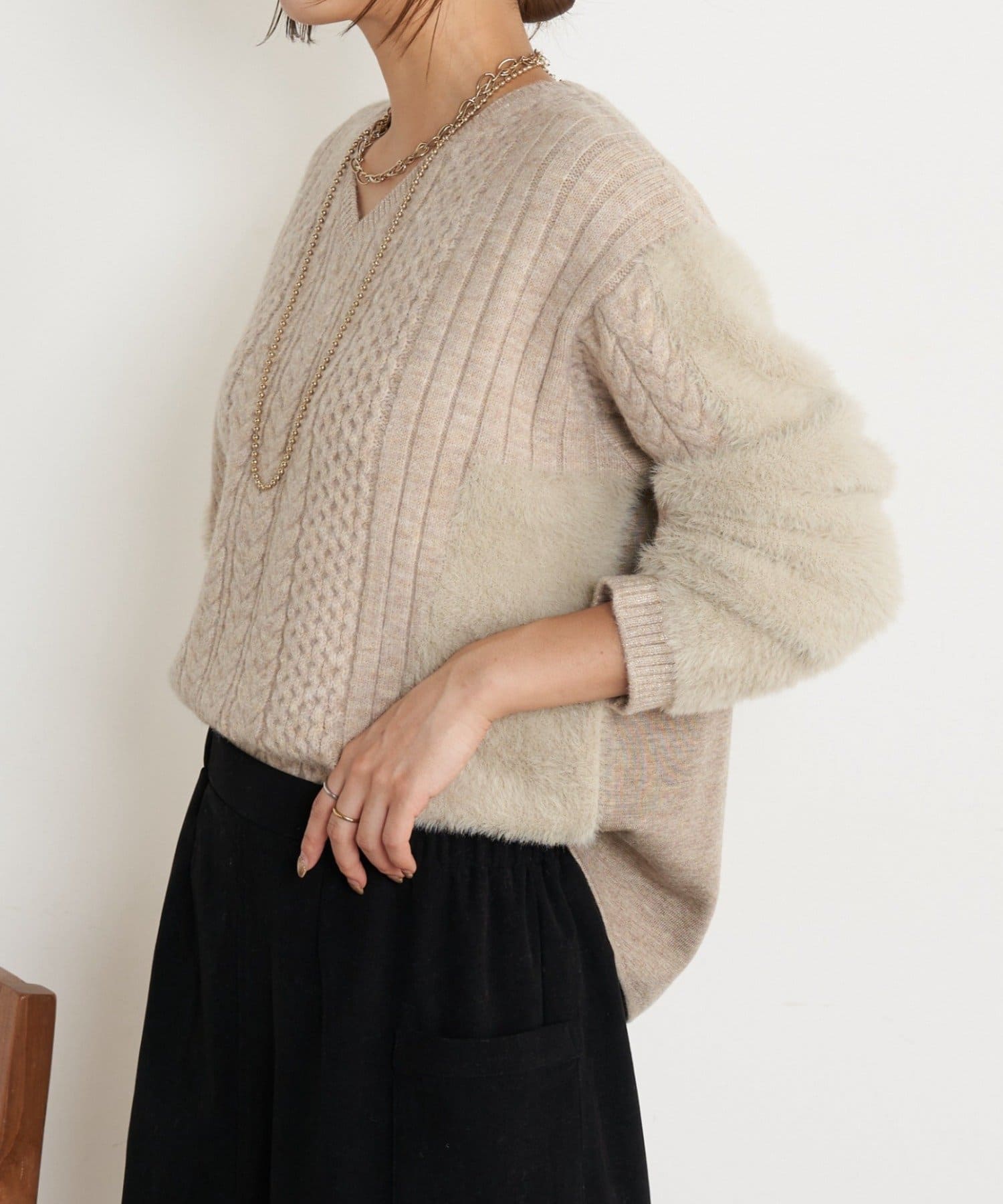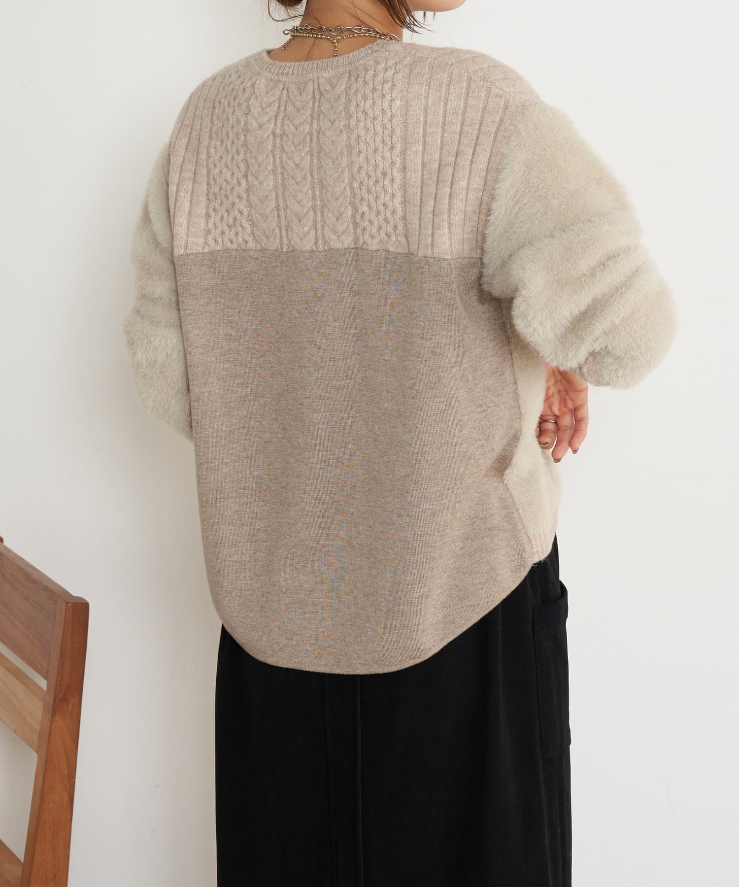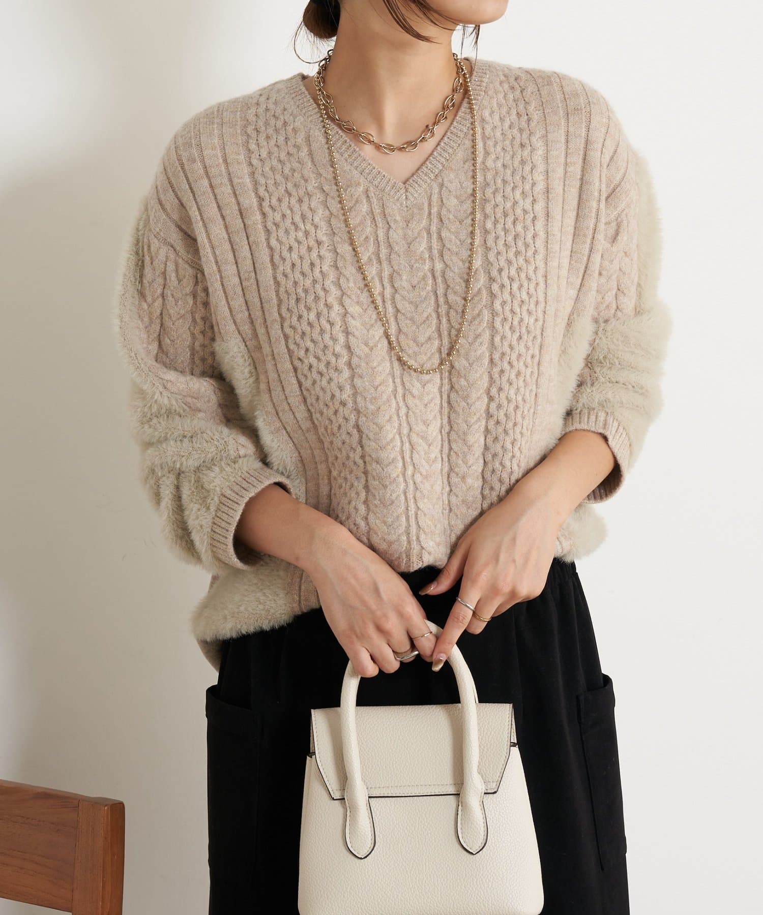 ケーブルラメシャギーニット