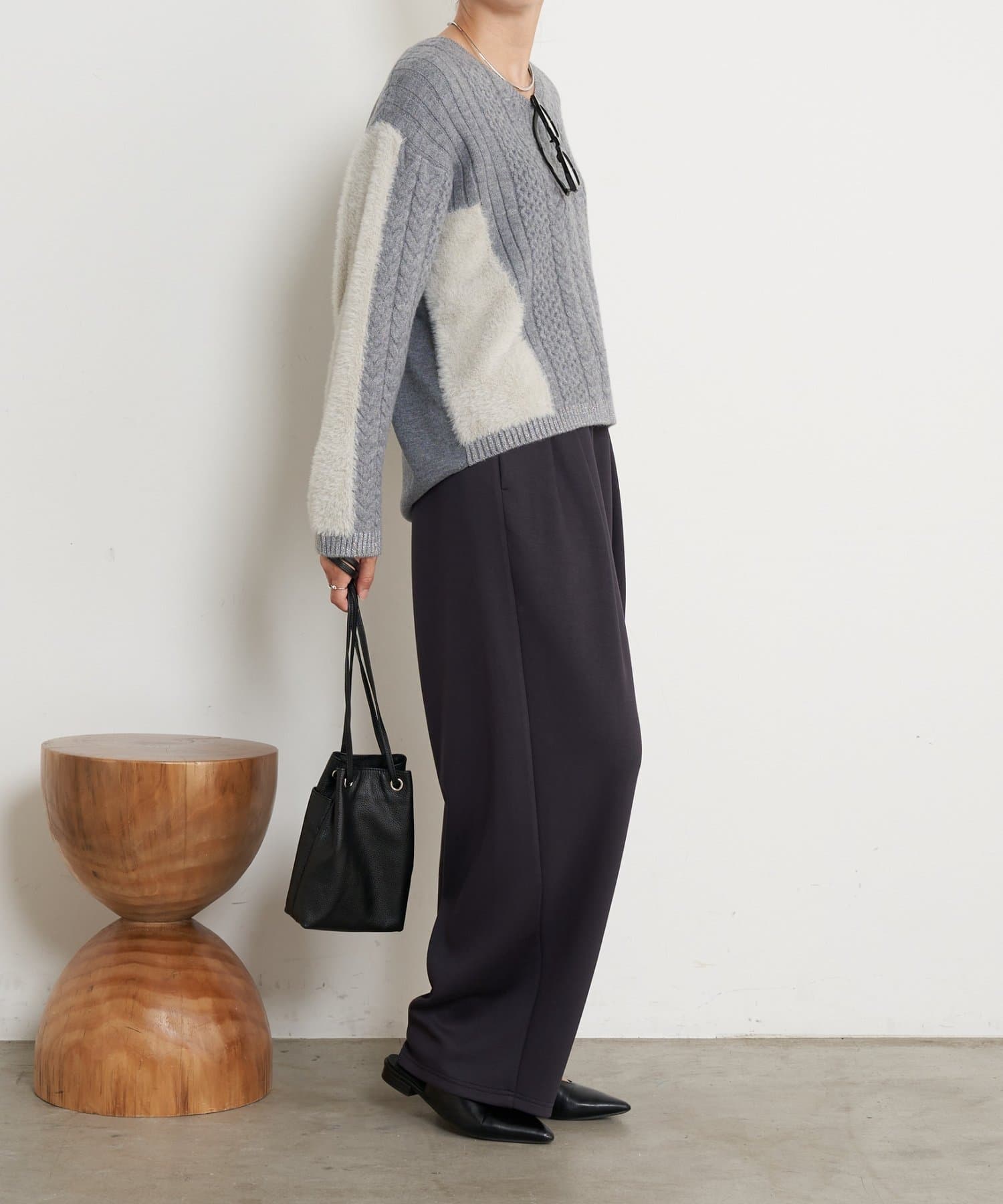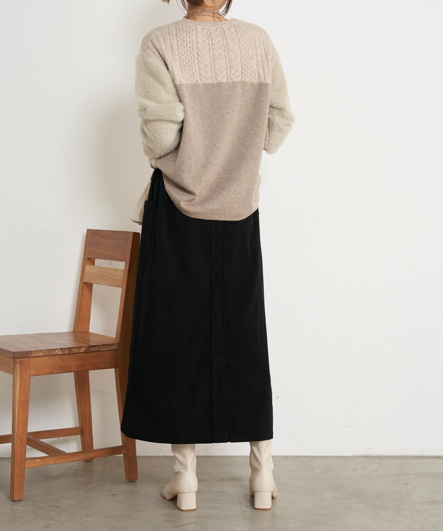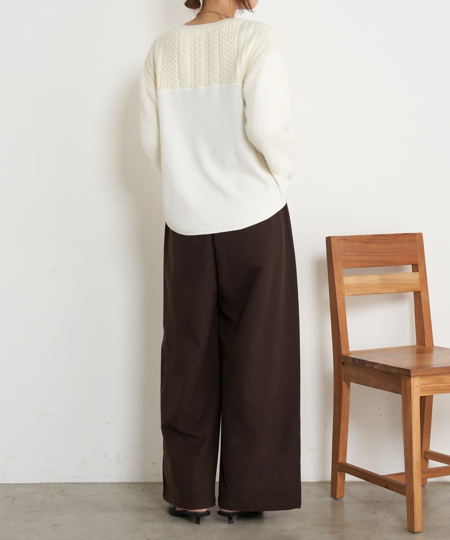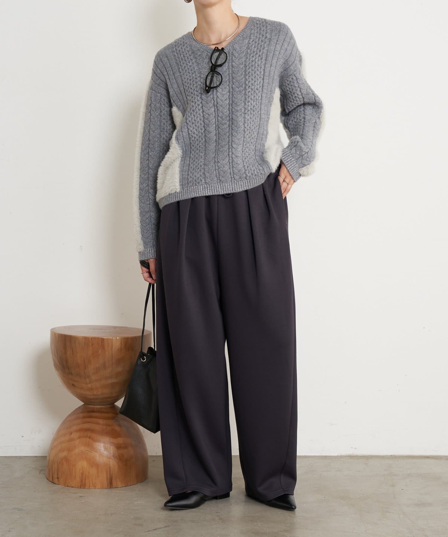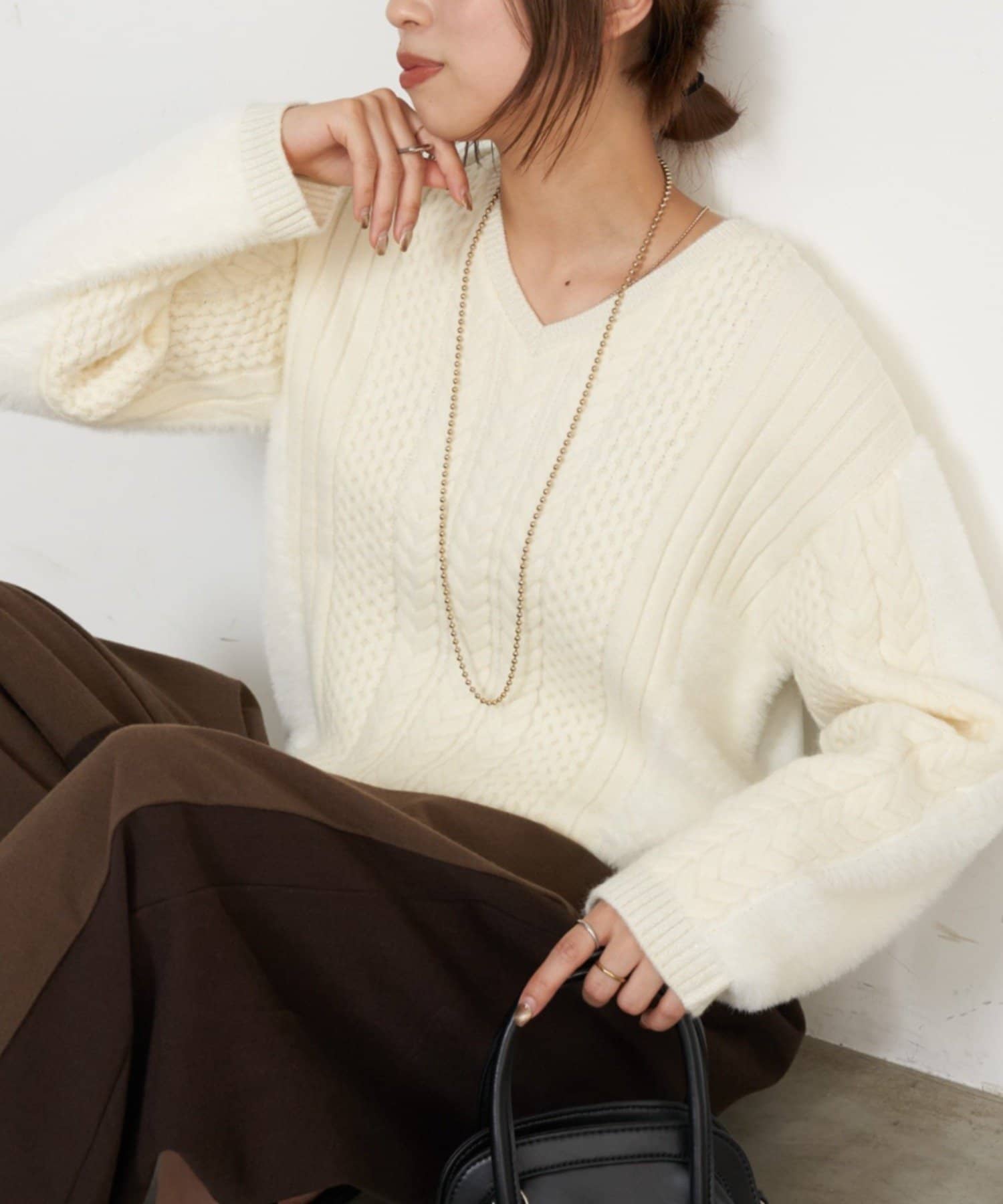 ケーブルラメシャギーニット
