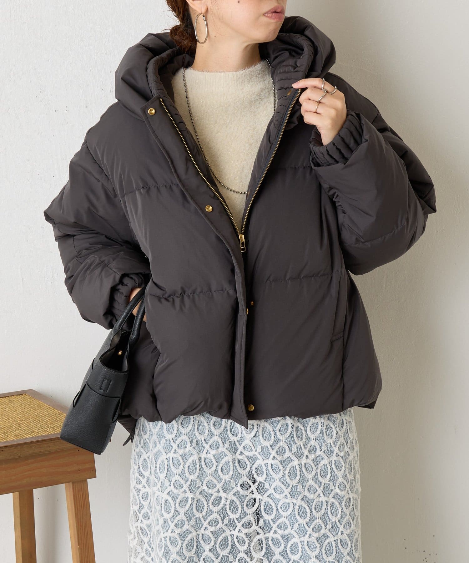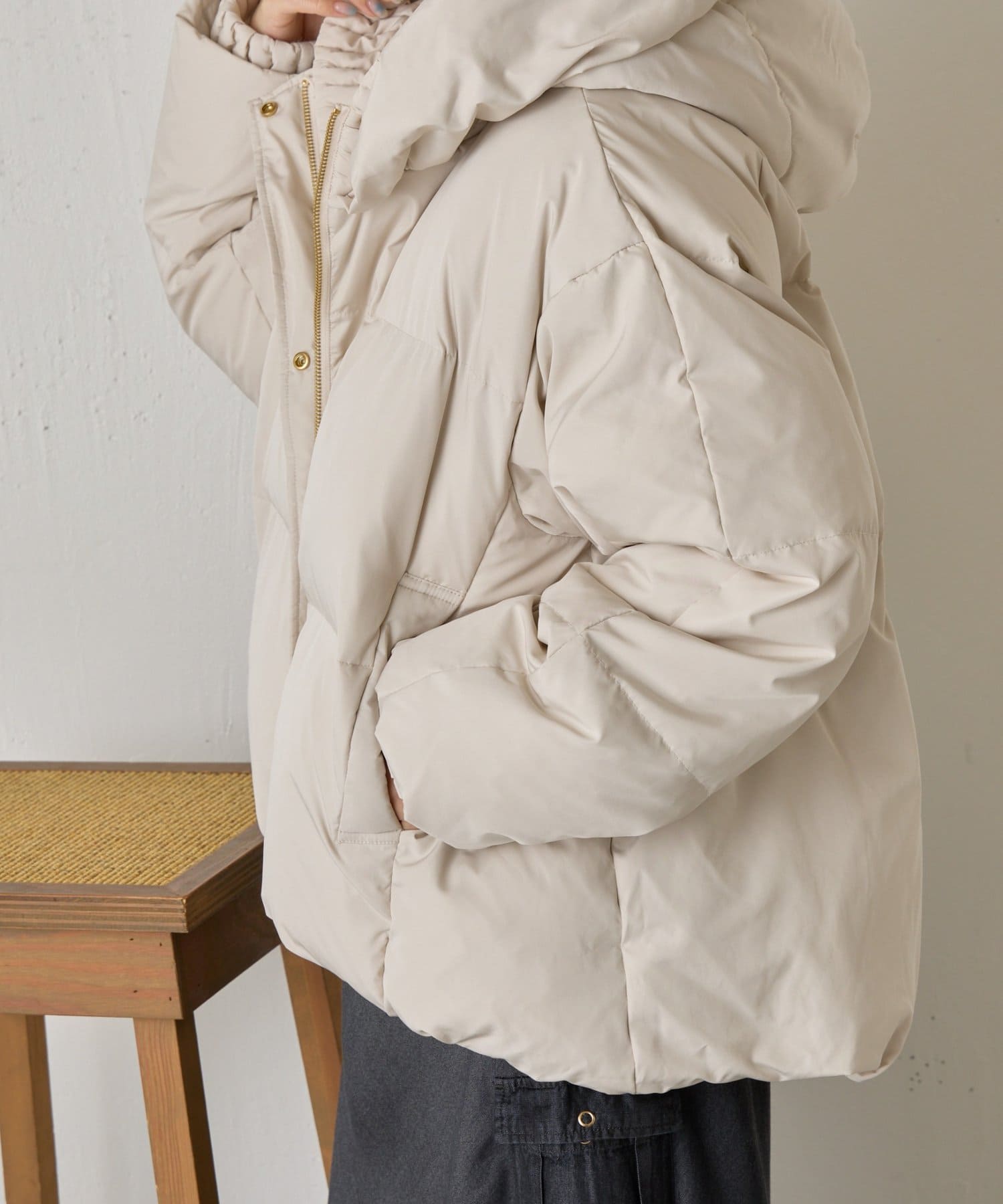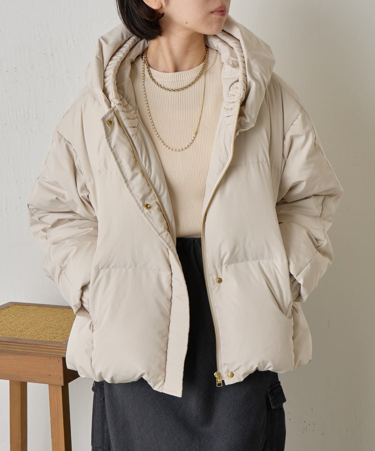 ・ふんわりとしたボリューム感が魅力のショートダウンジャケット。