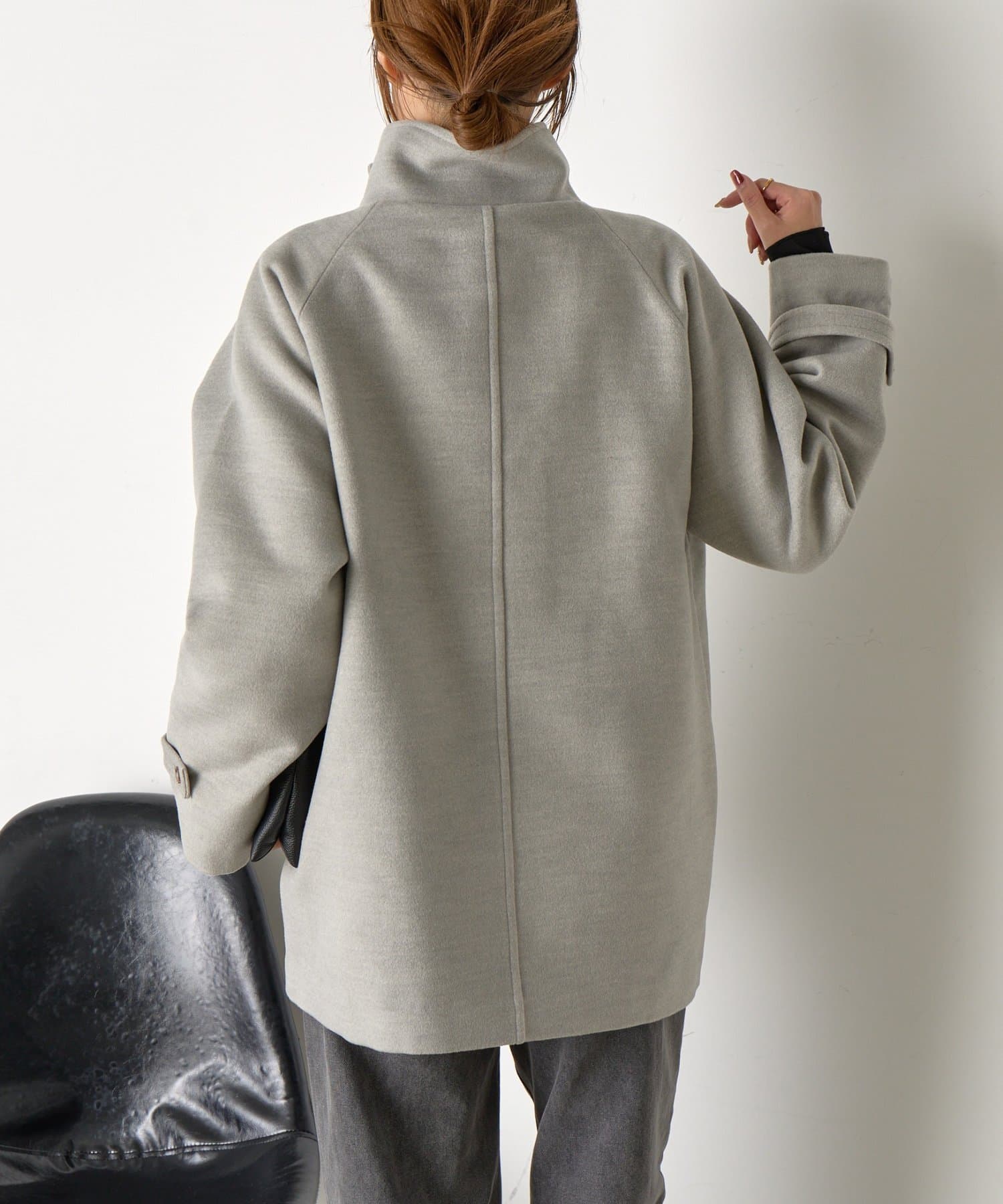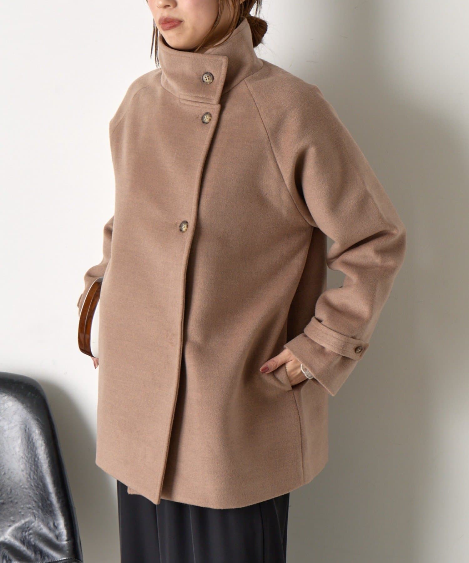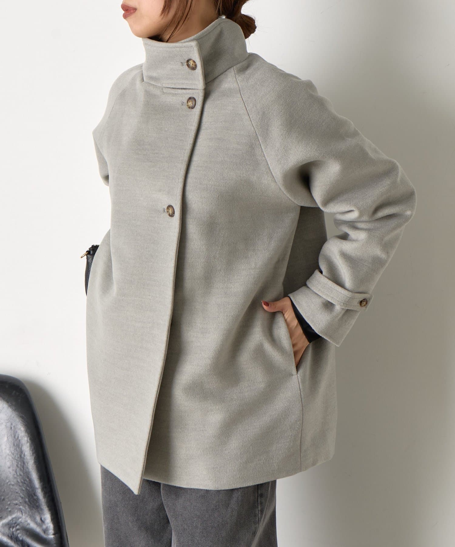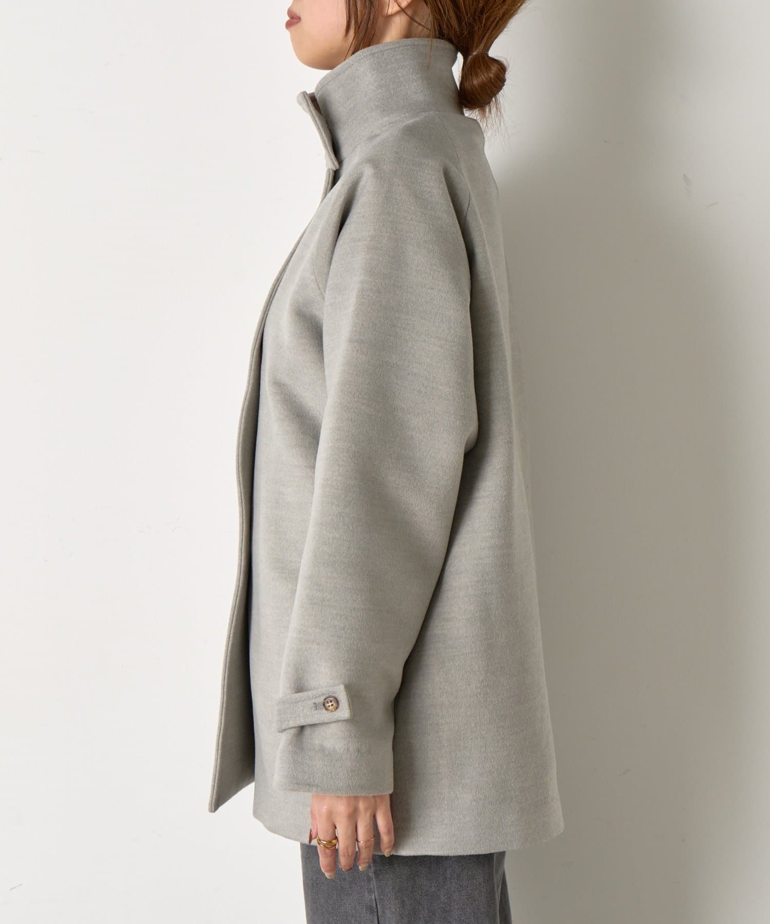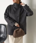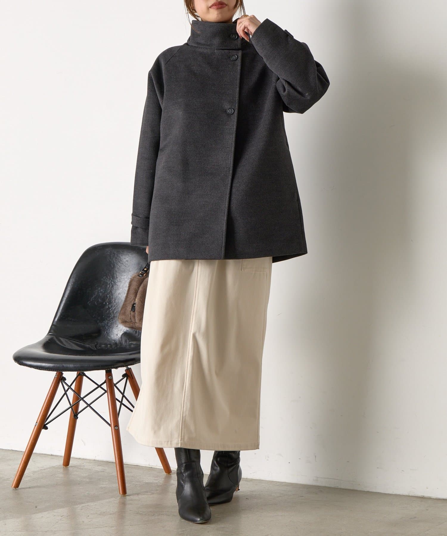 ・高級感あるウールライク素材で仕立てたスタンドカラーコート。