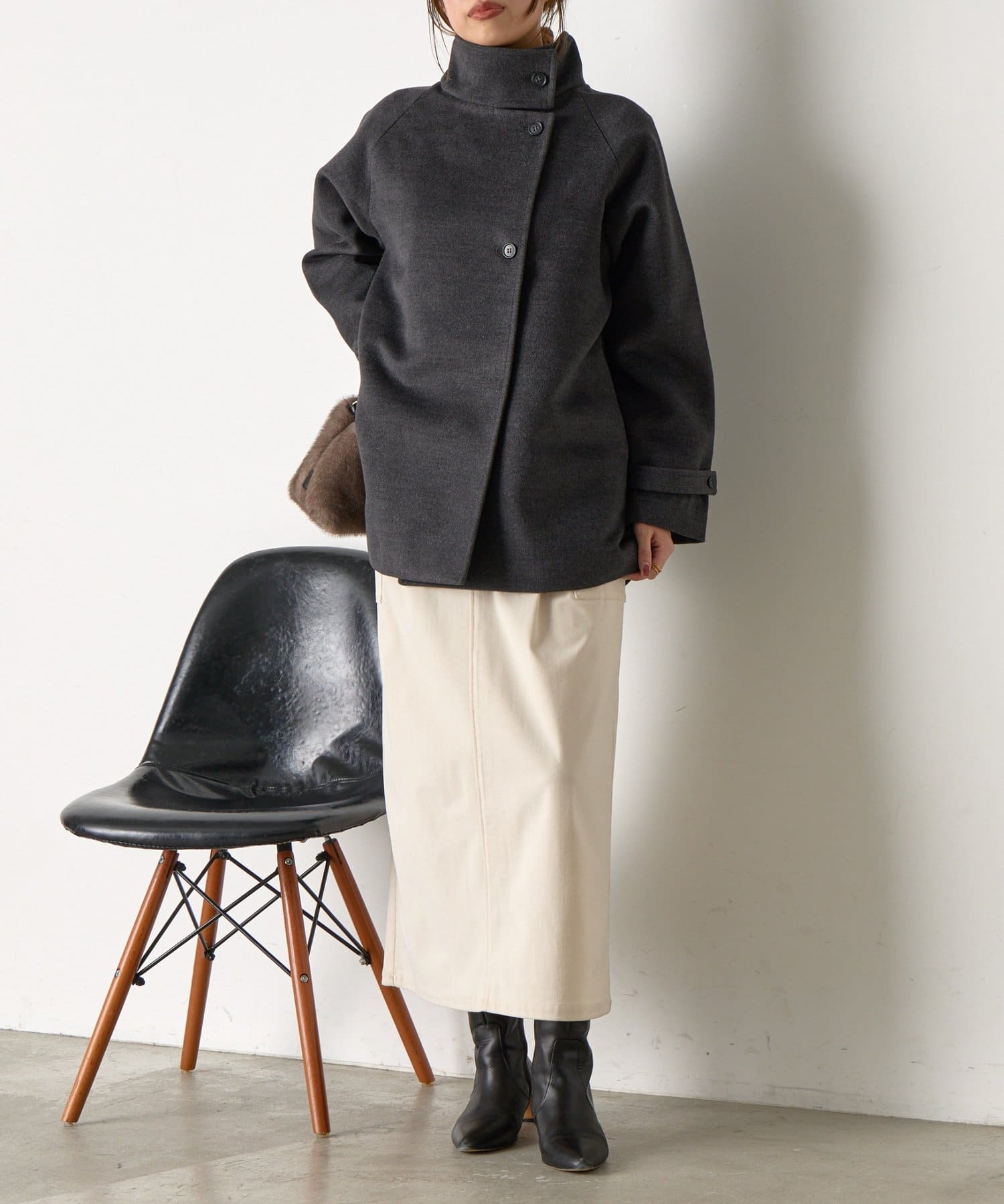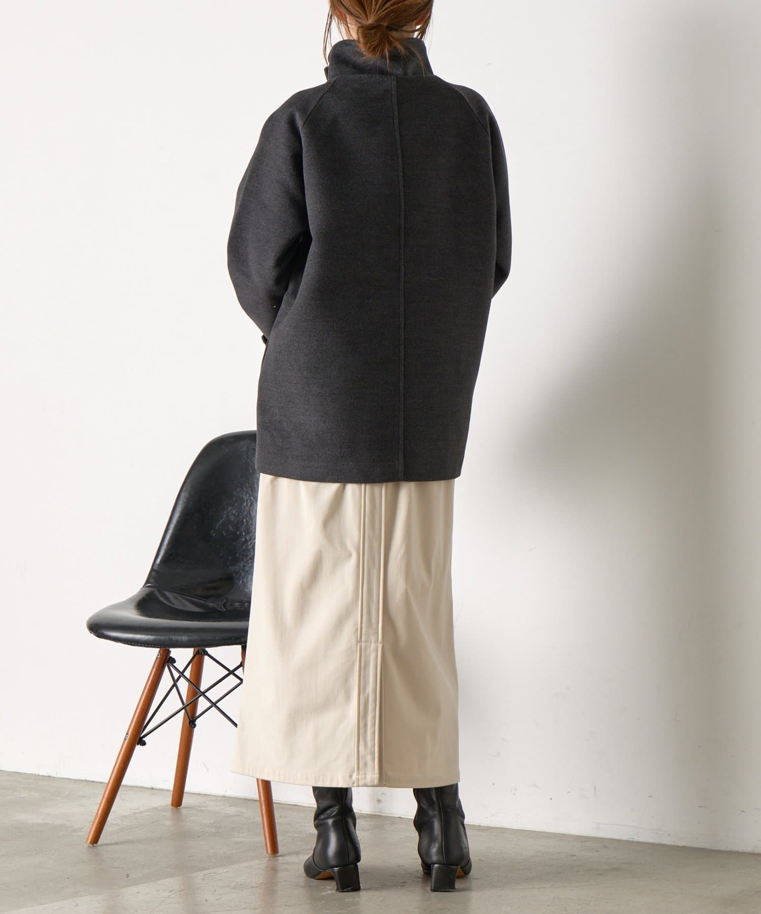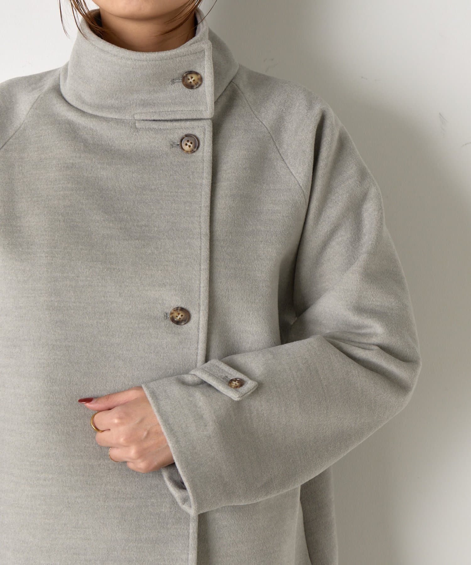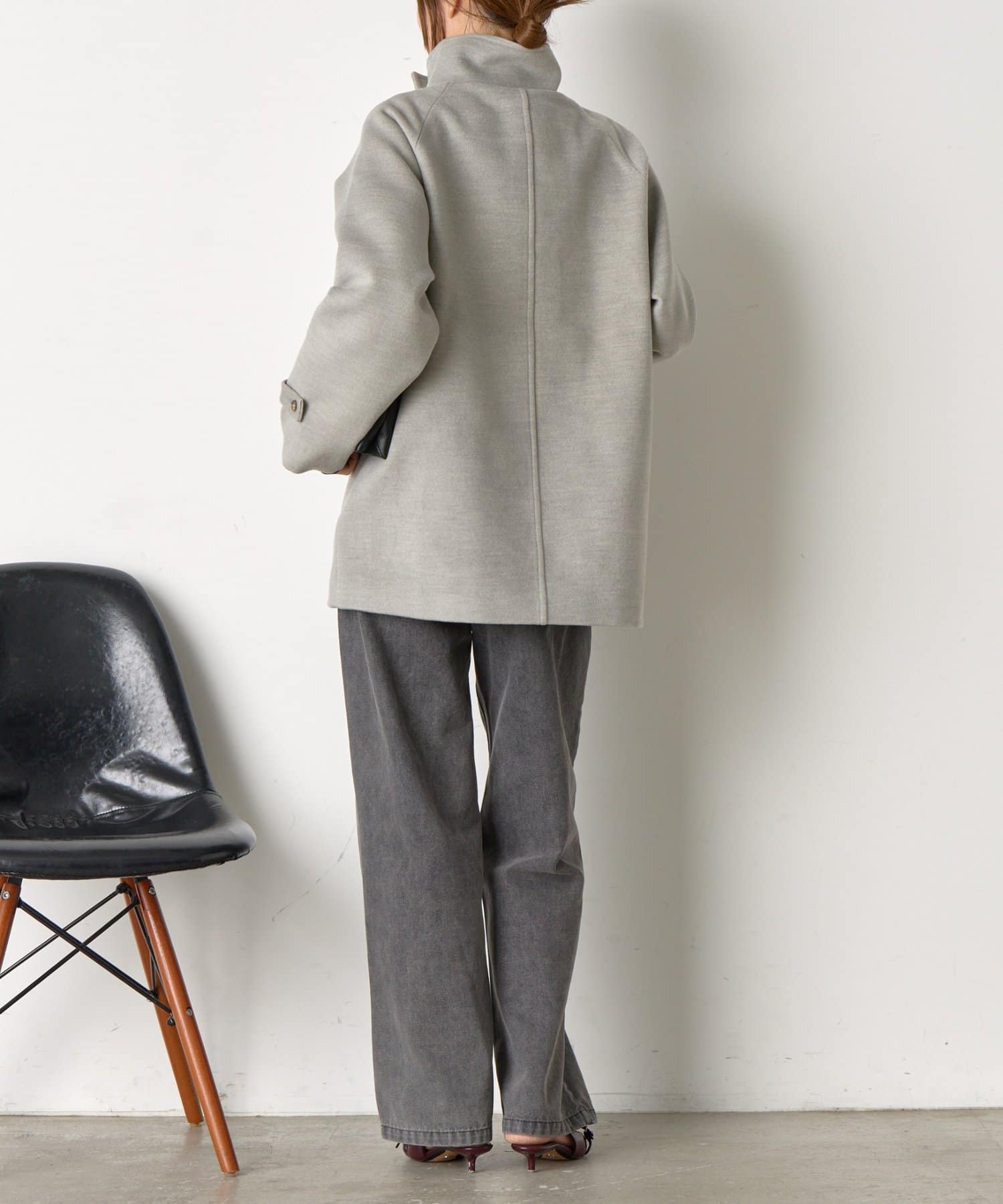 ・高級感あるウールライク素材で仕立てたスタンドカラーコート。
