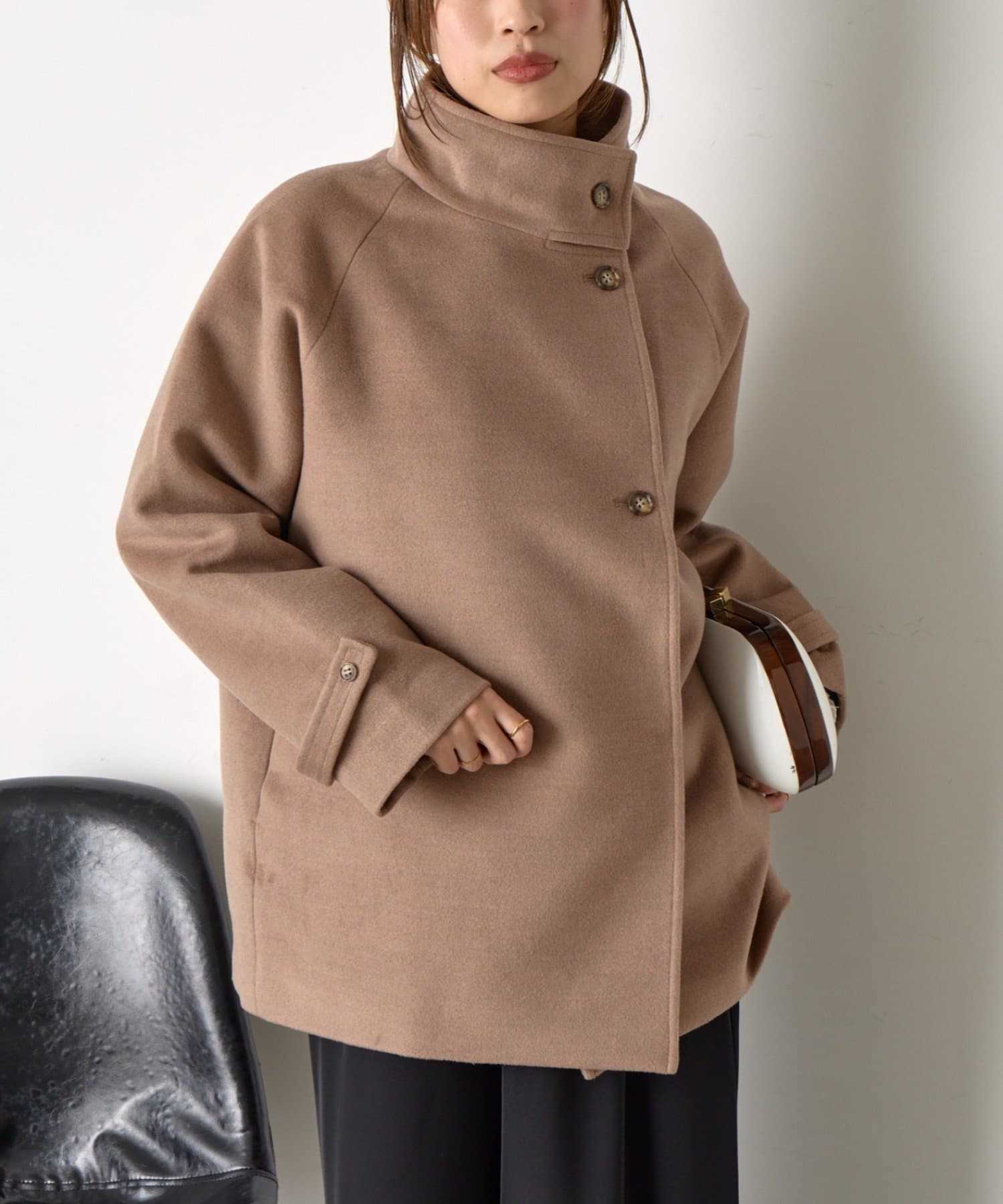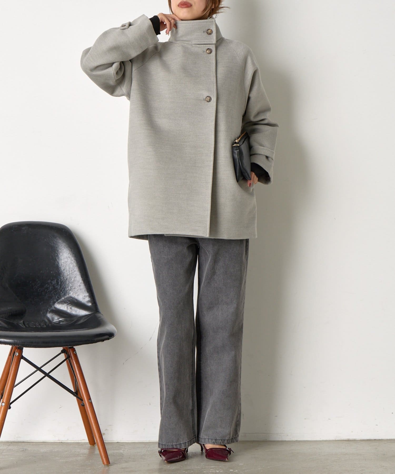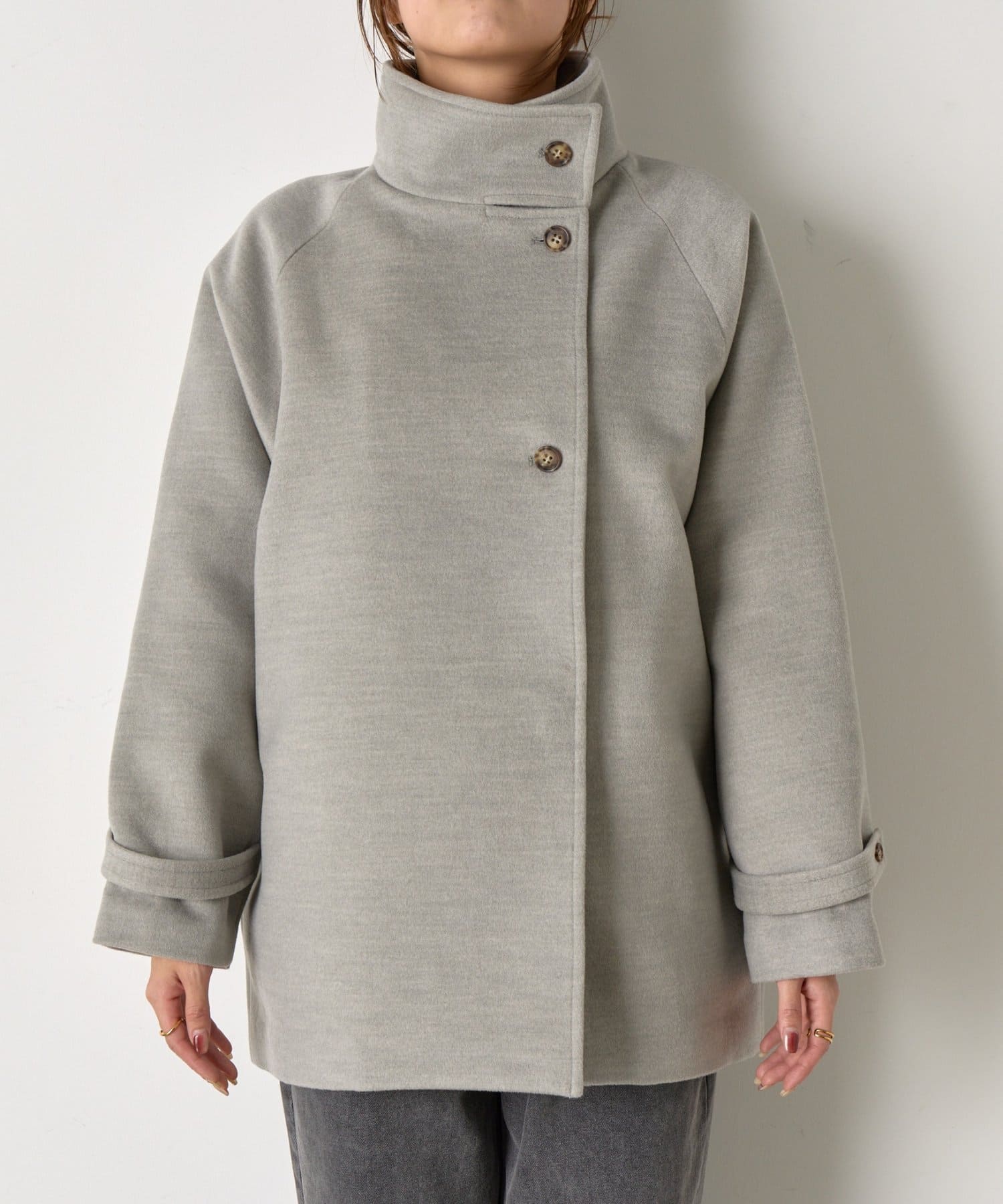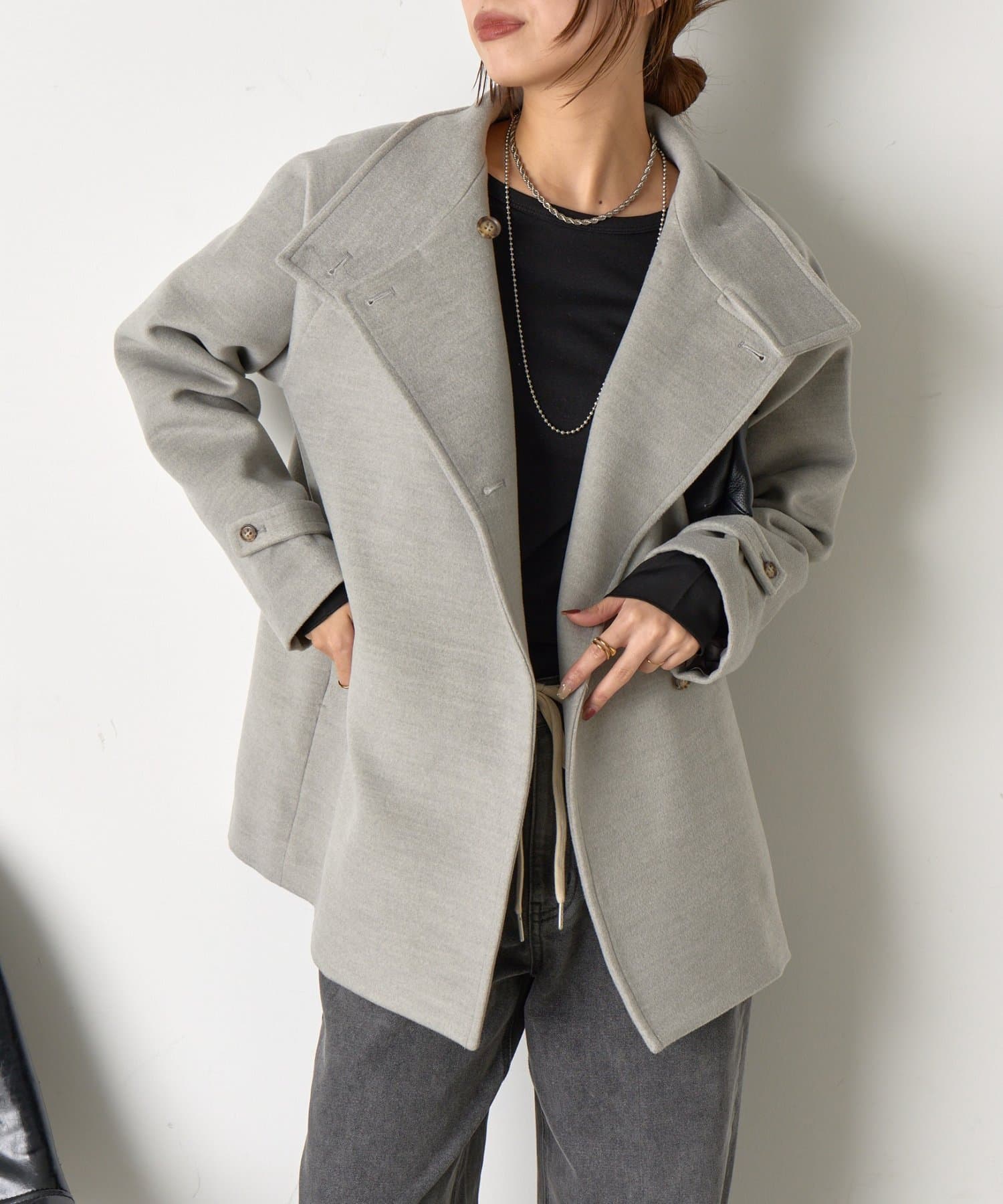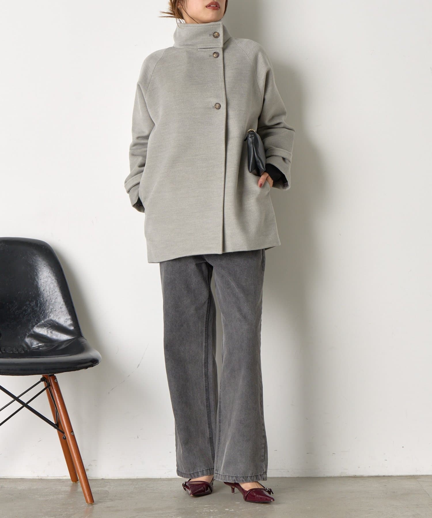 ・高級感あるウールライク素材で仕立てたスタンドカラーコート。