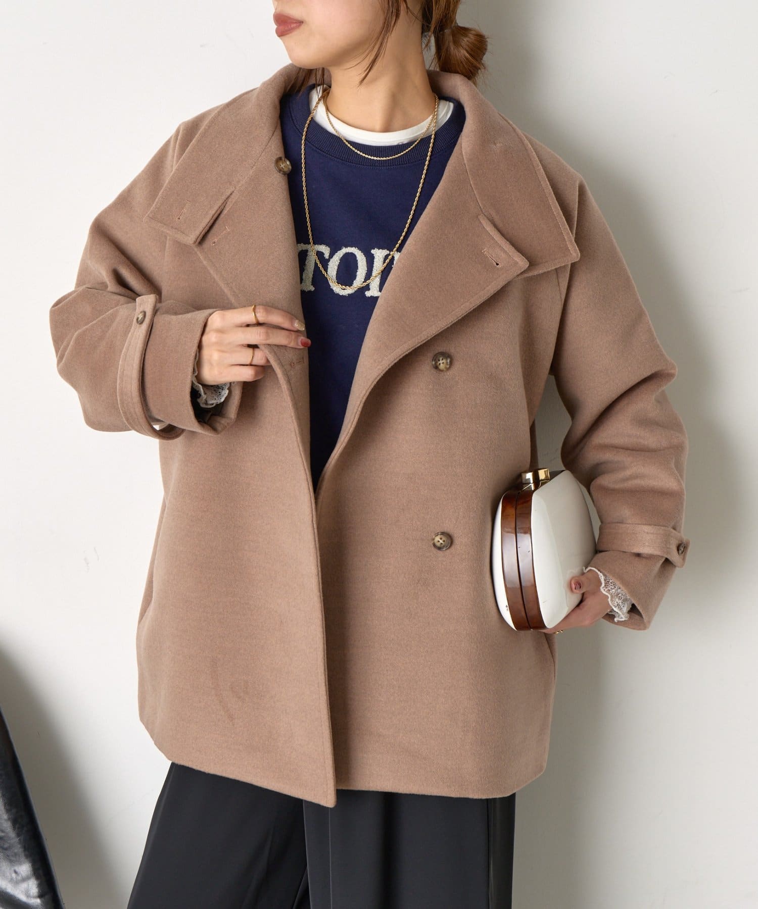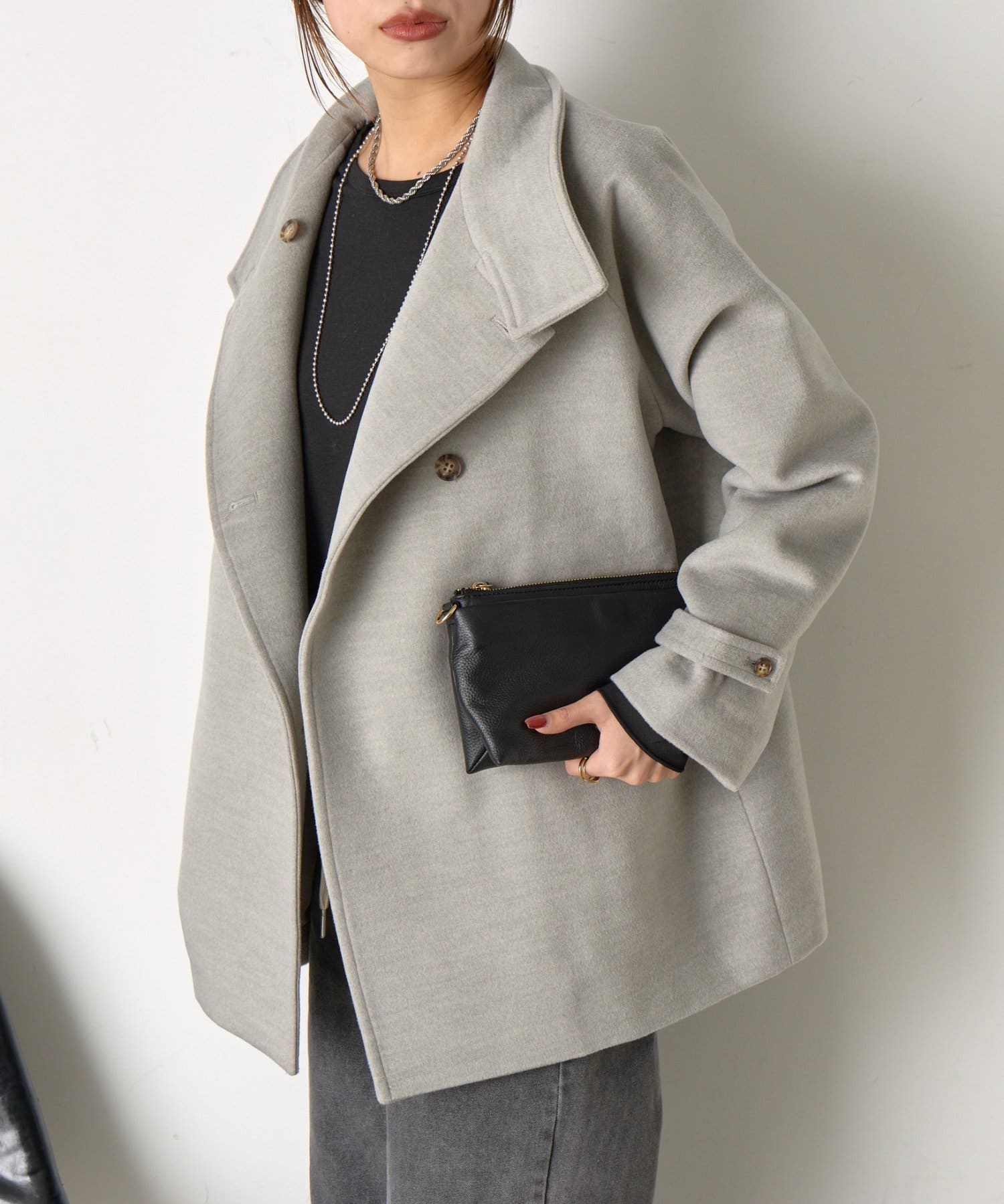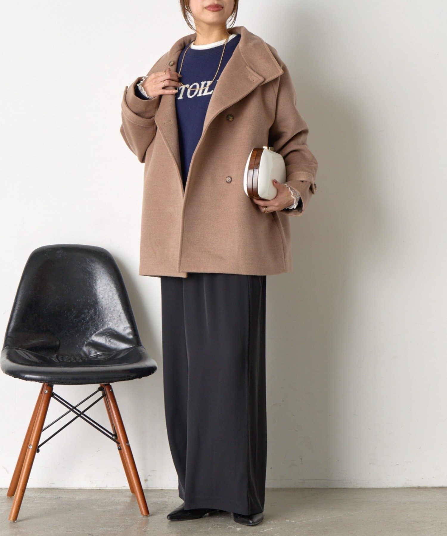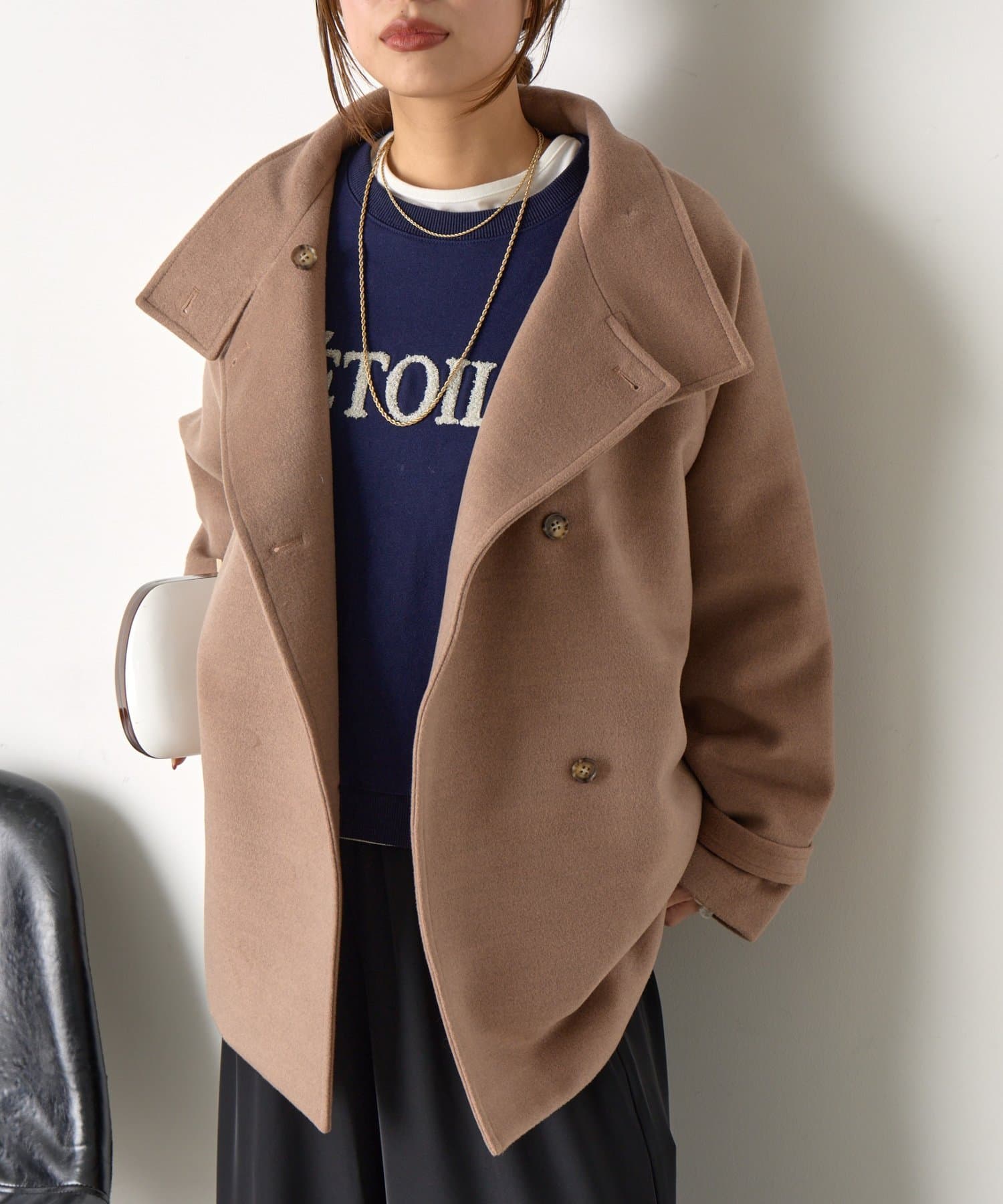 ・高級感あるウールライク素材で仕立てたスタンドカラーコート。