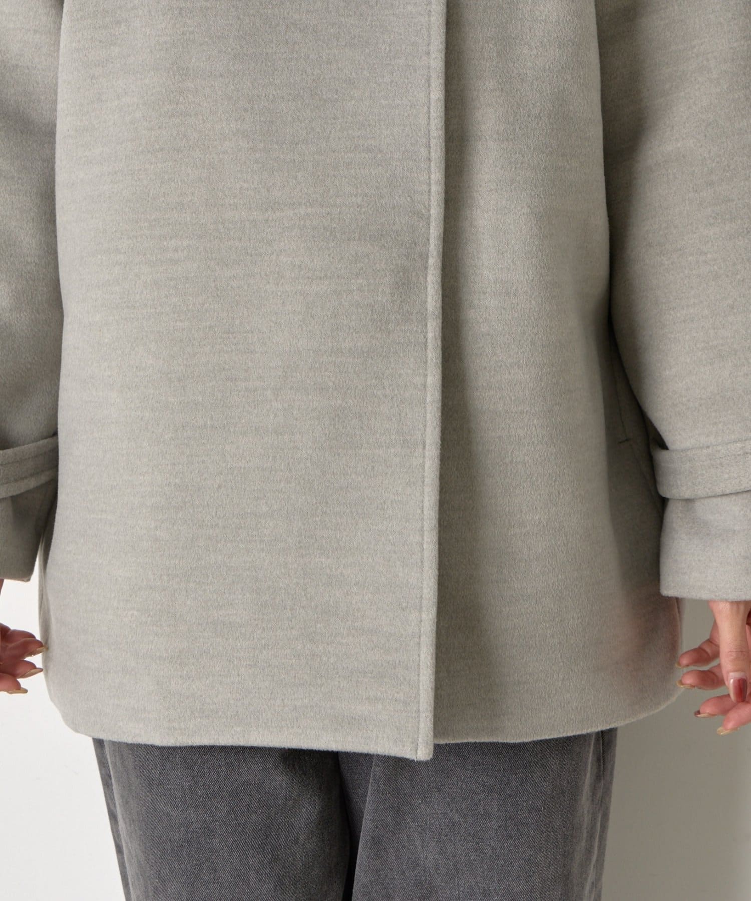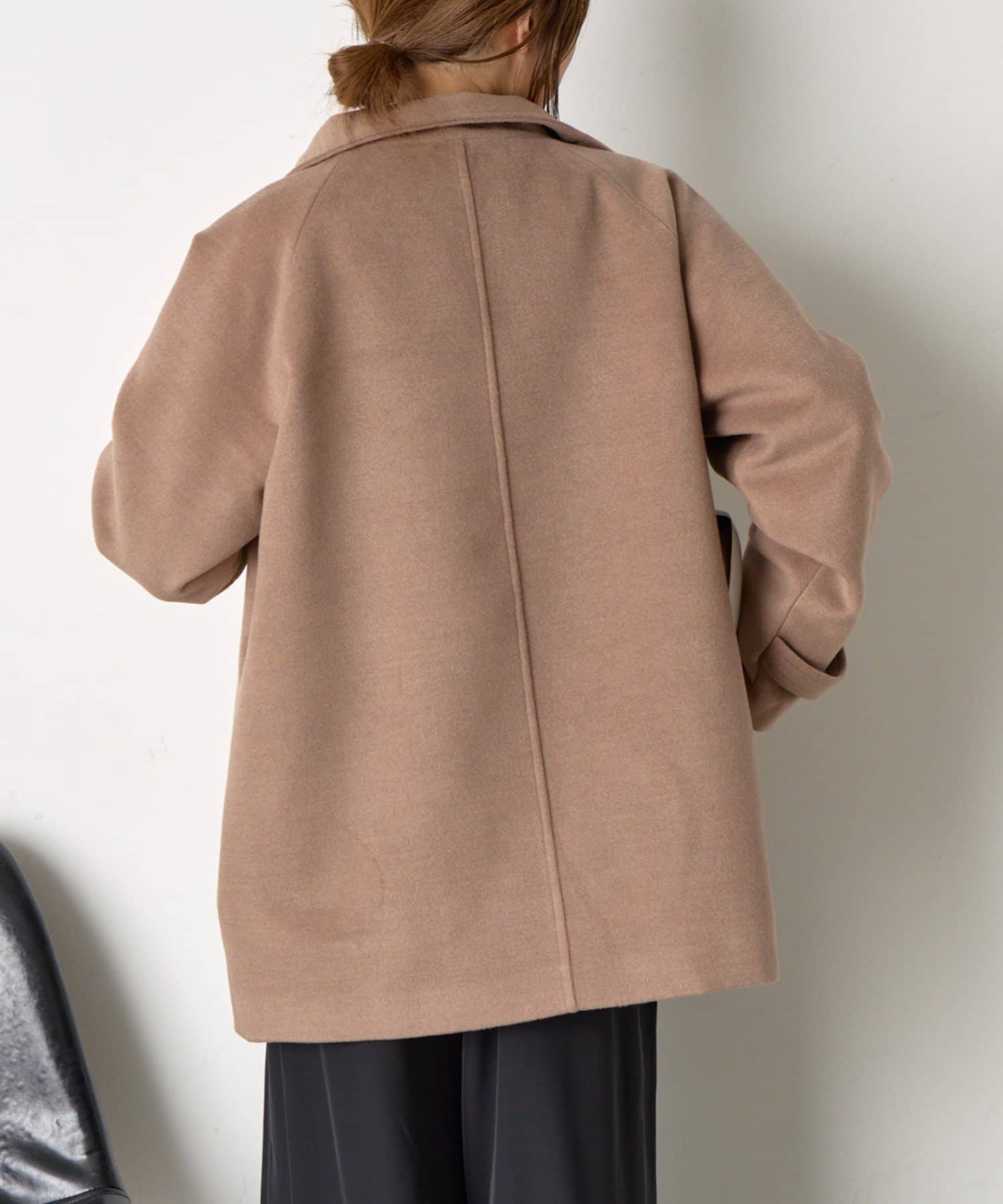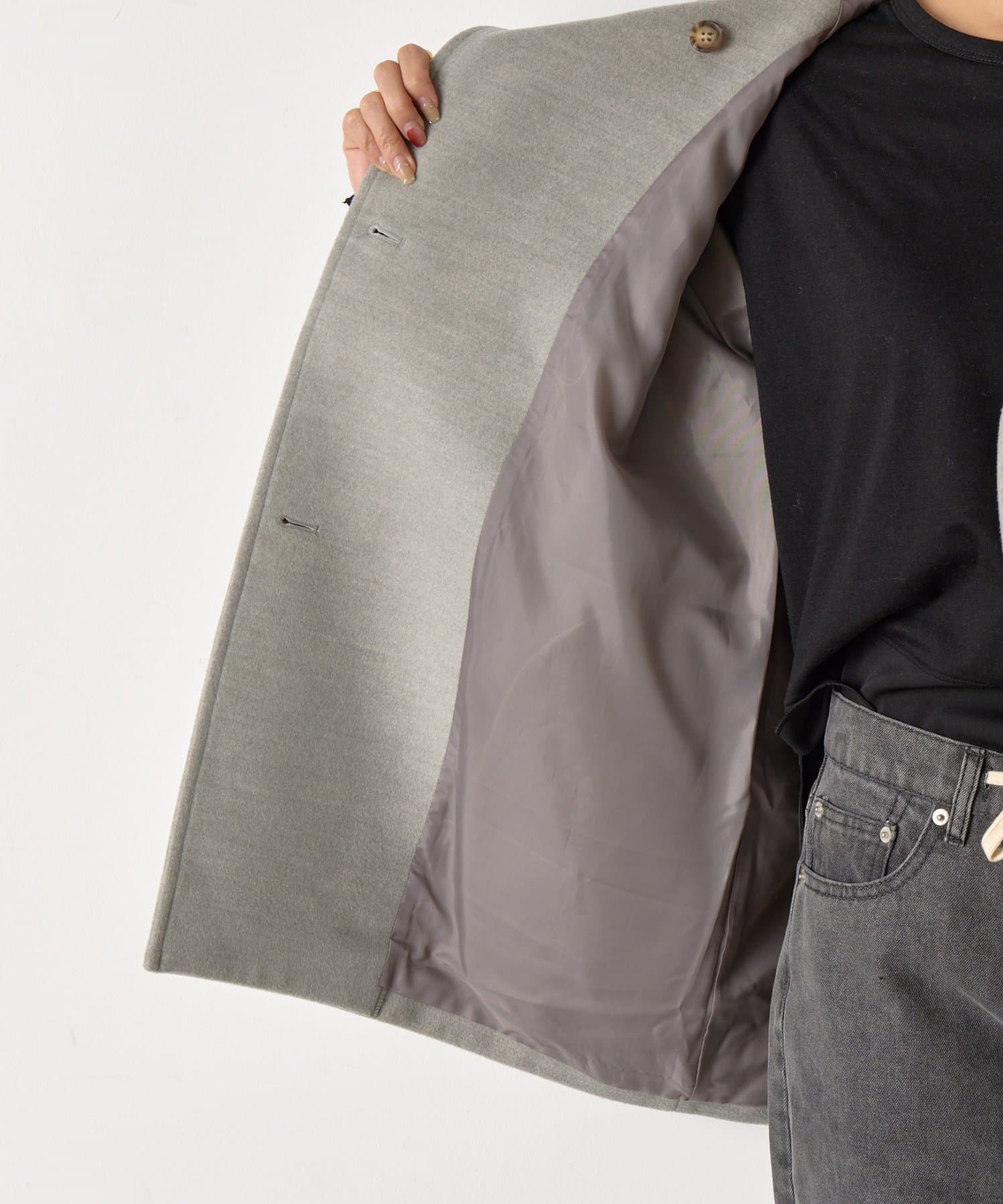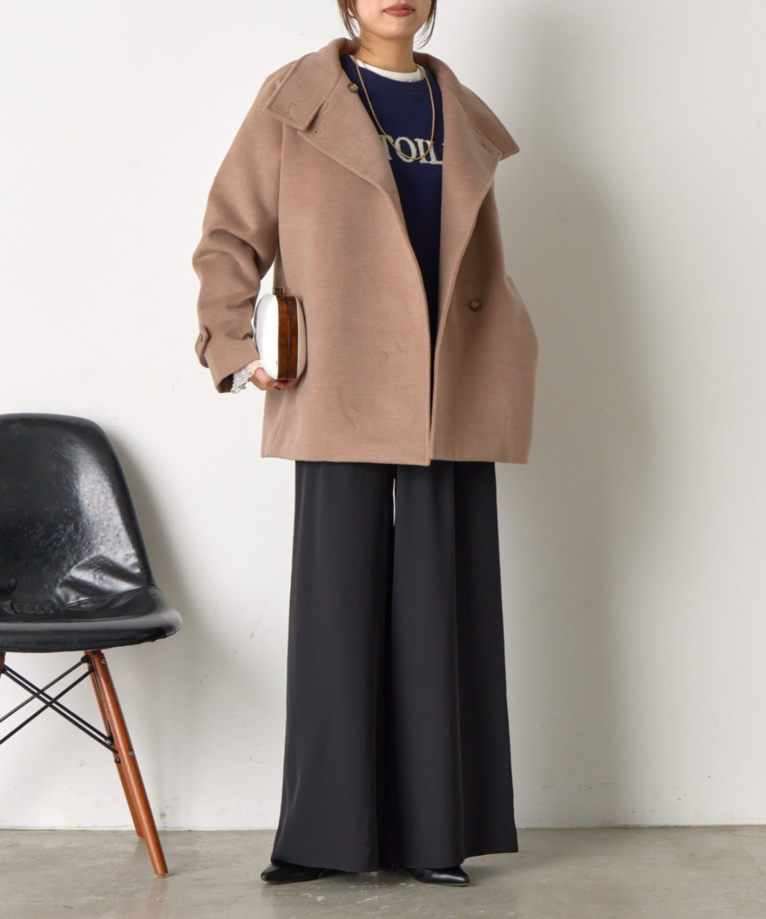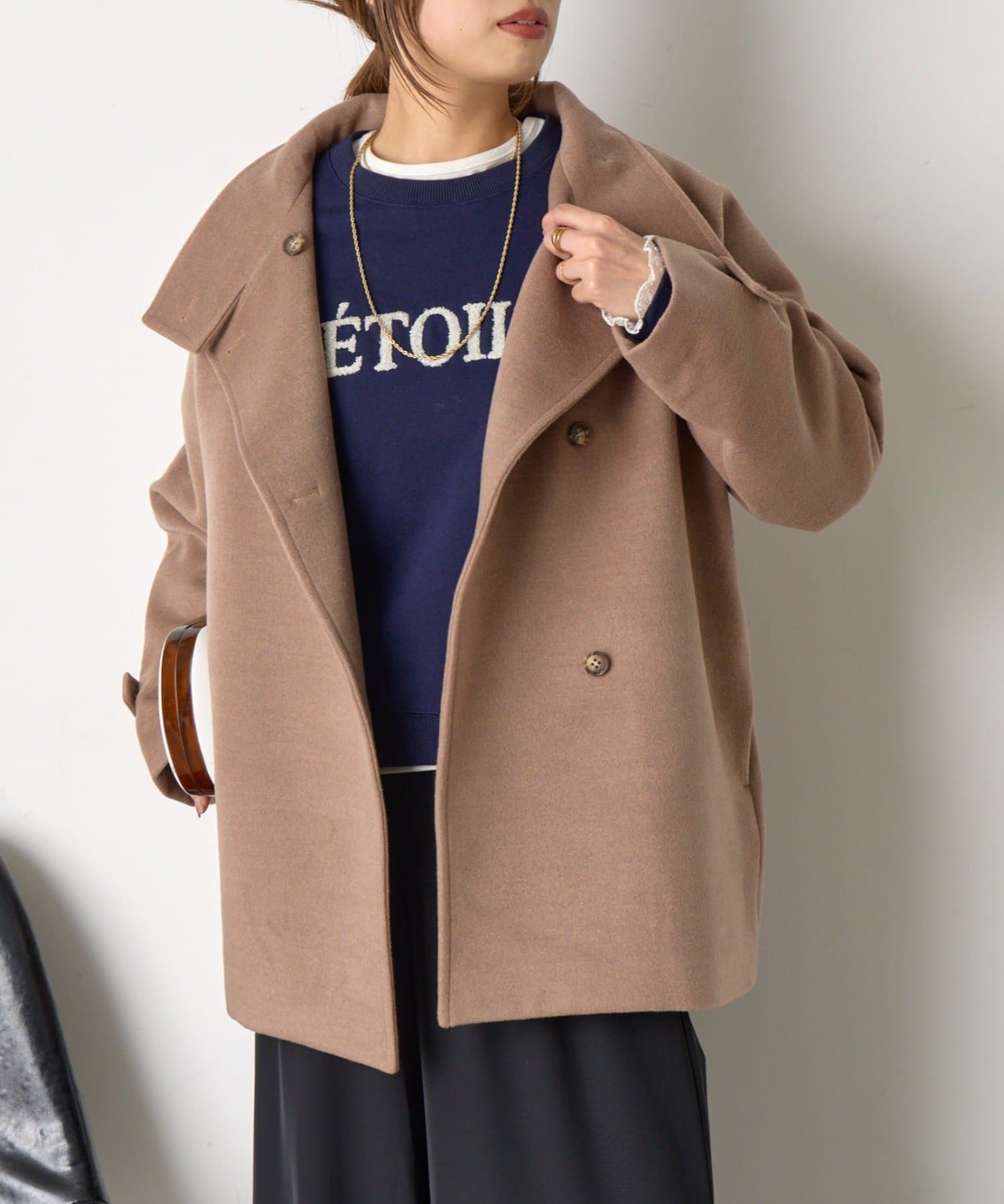 ・高級感あるウールライク素材で仕立てたスタンドカラーコート。