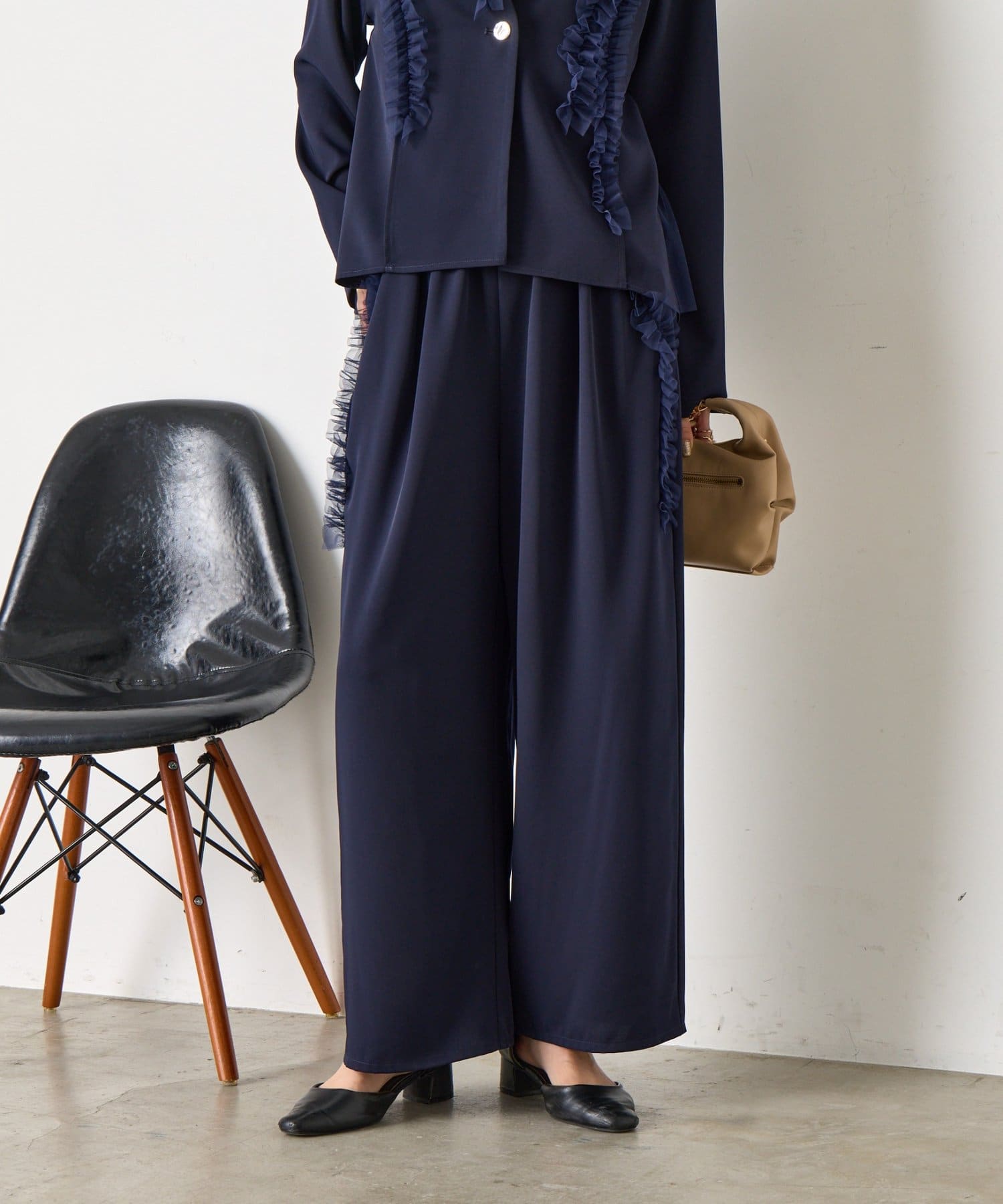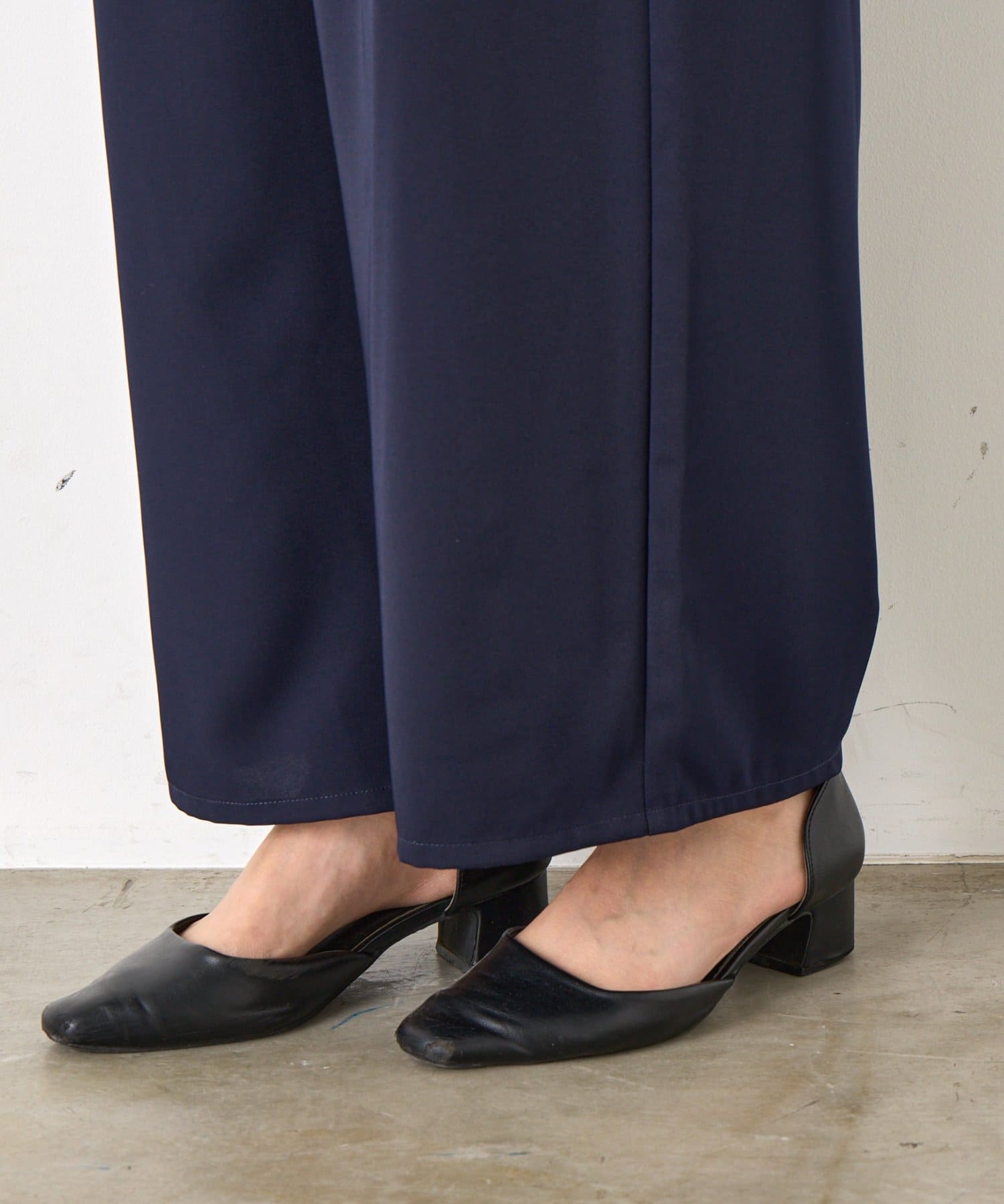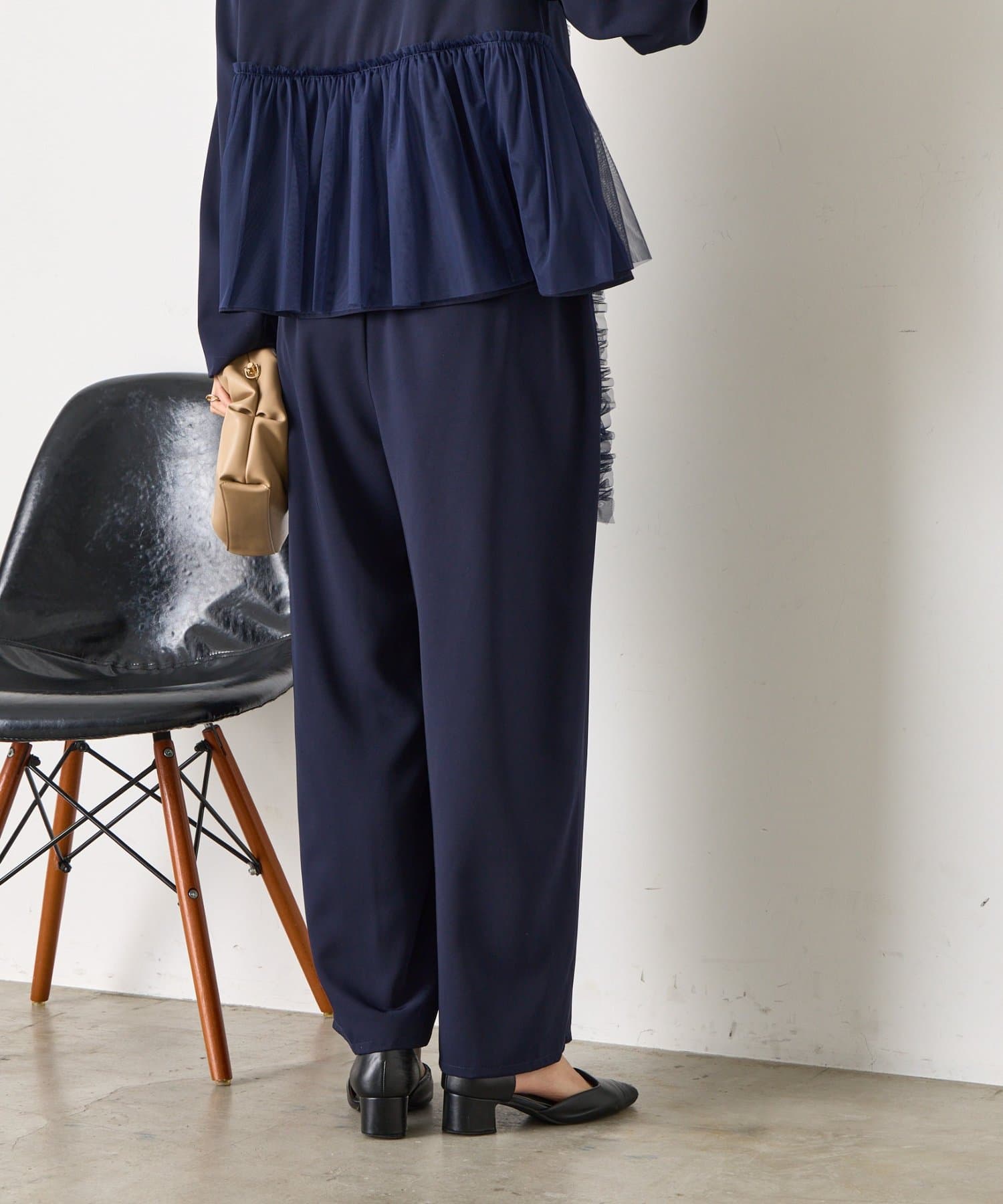 ・ボトムスは足のラインを拾いづらいワイドシルエットです。