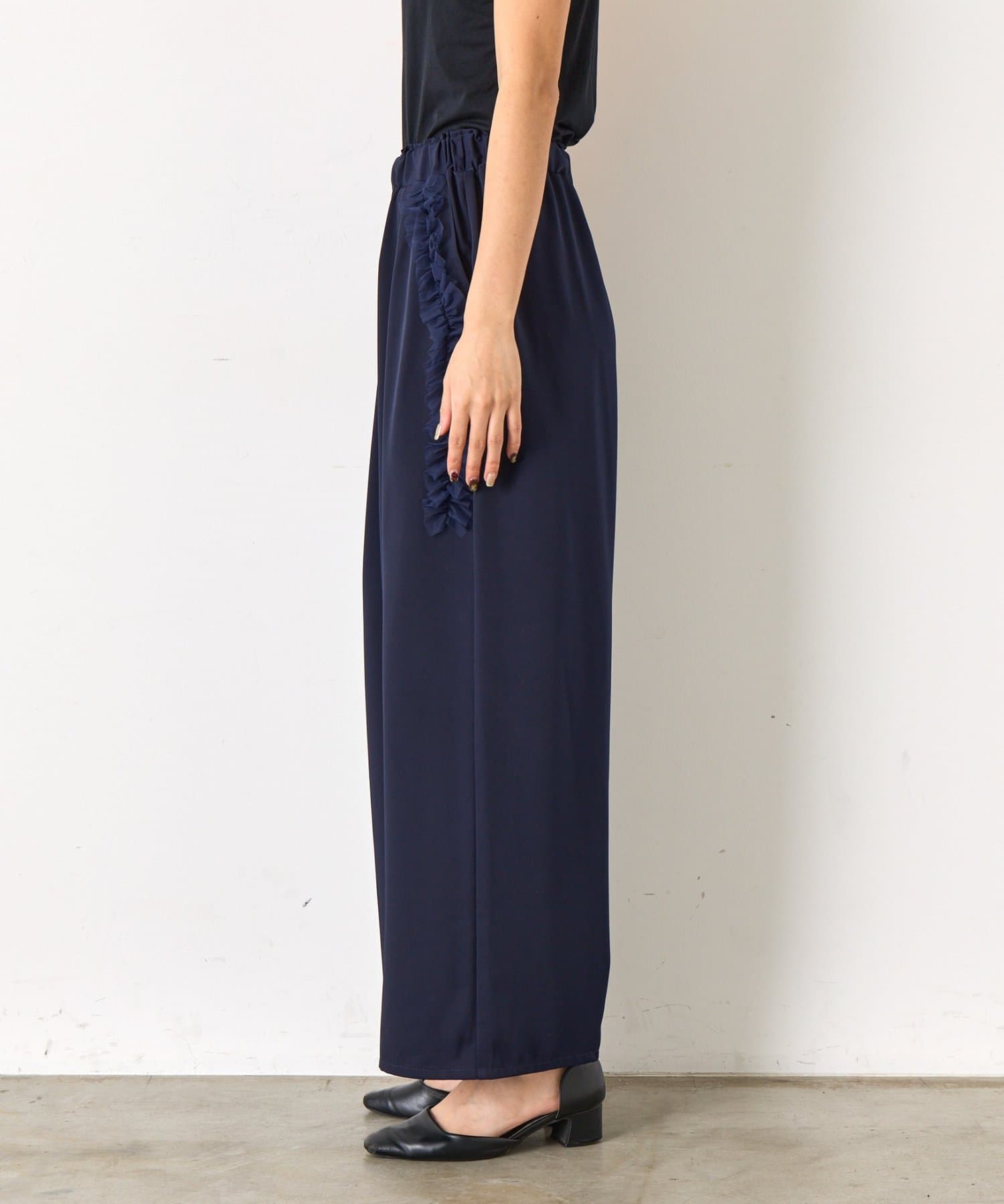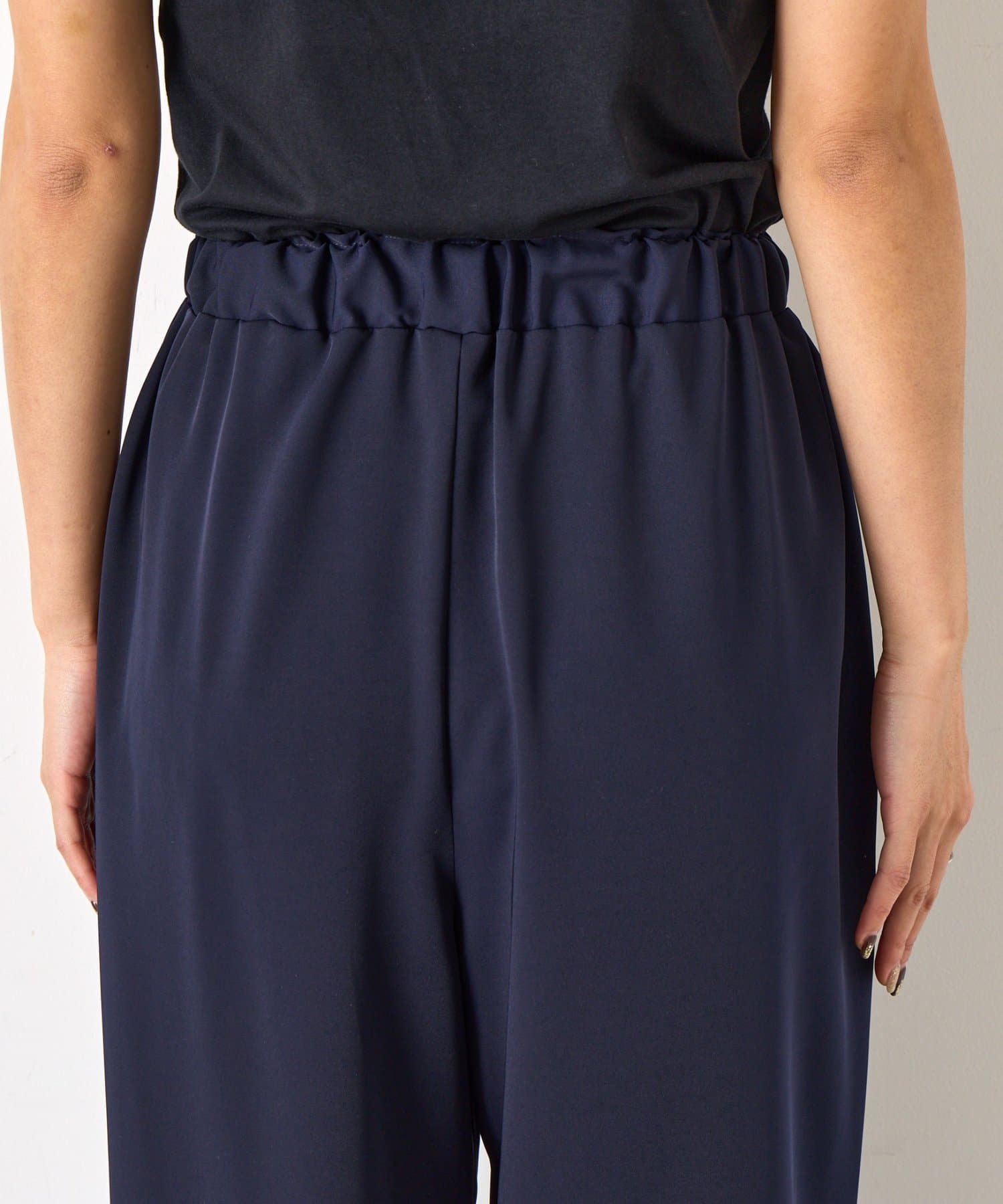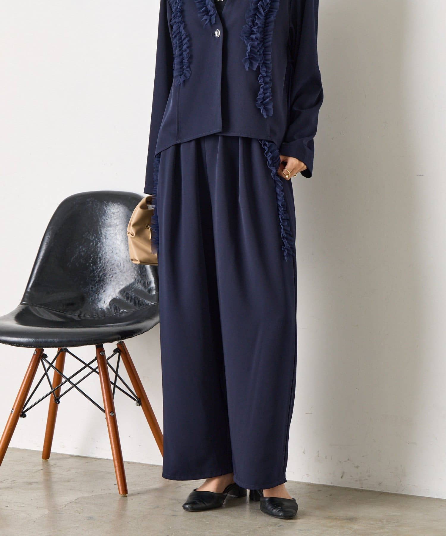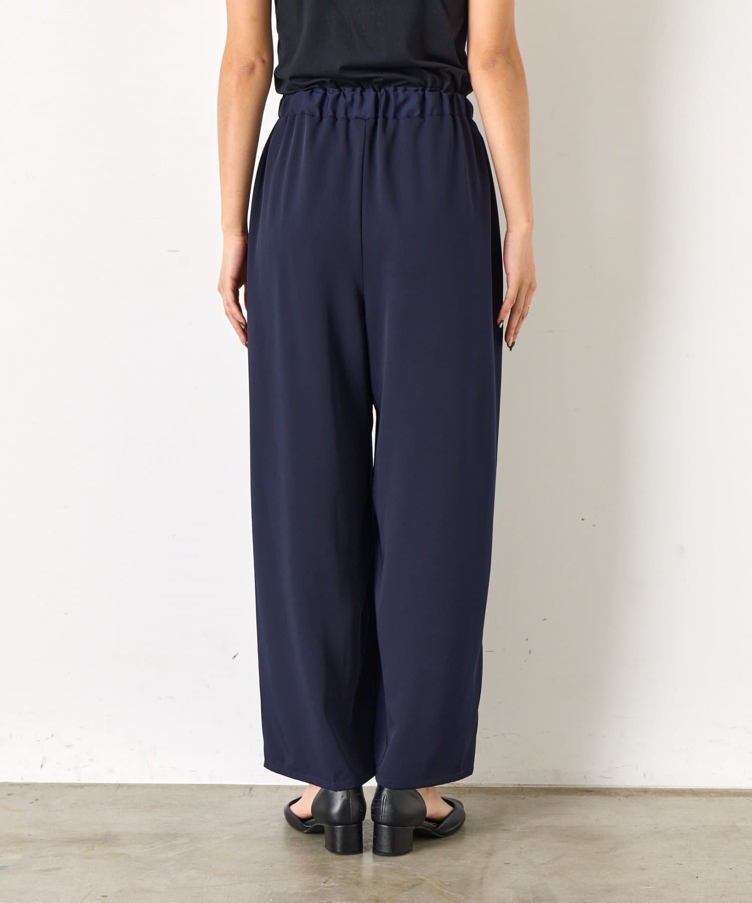 ・ボトムスは足のラインを拾いづらいワイドシルエットです。