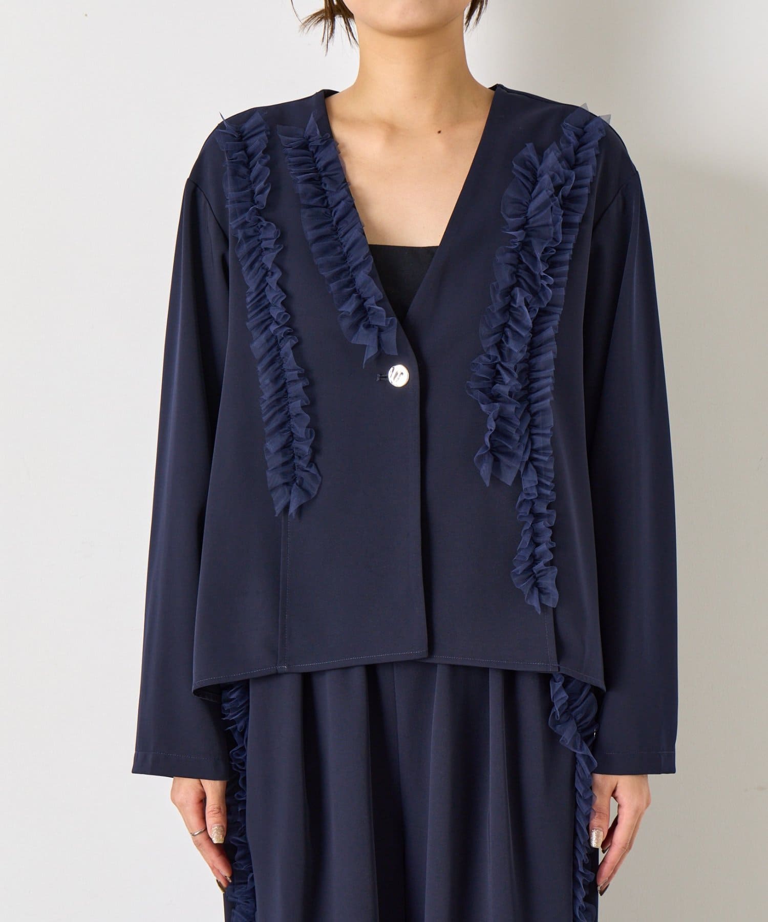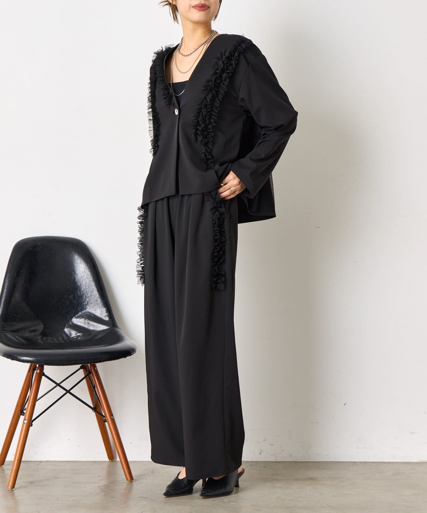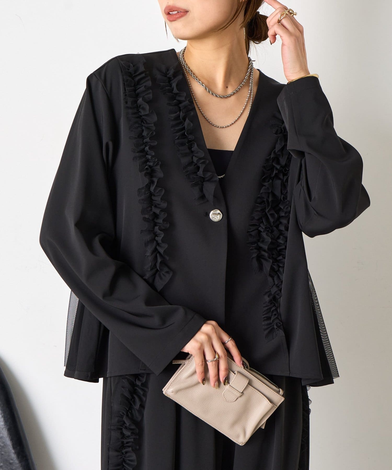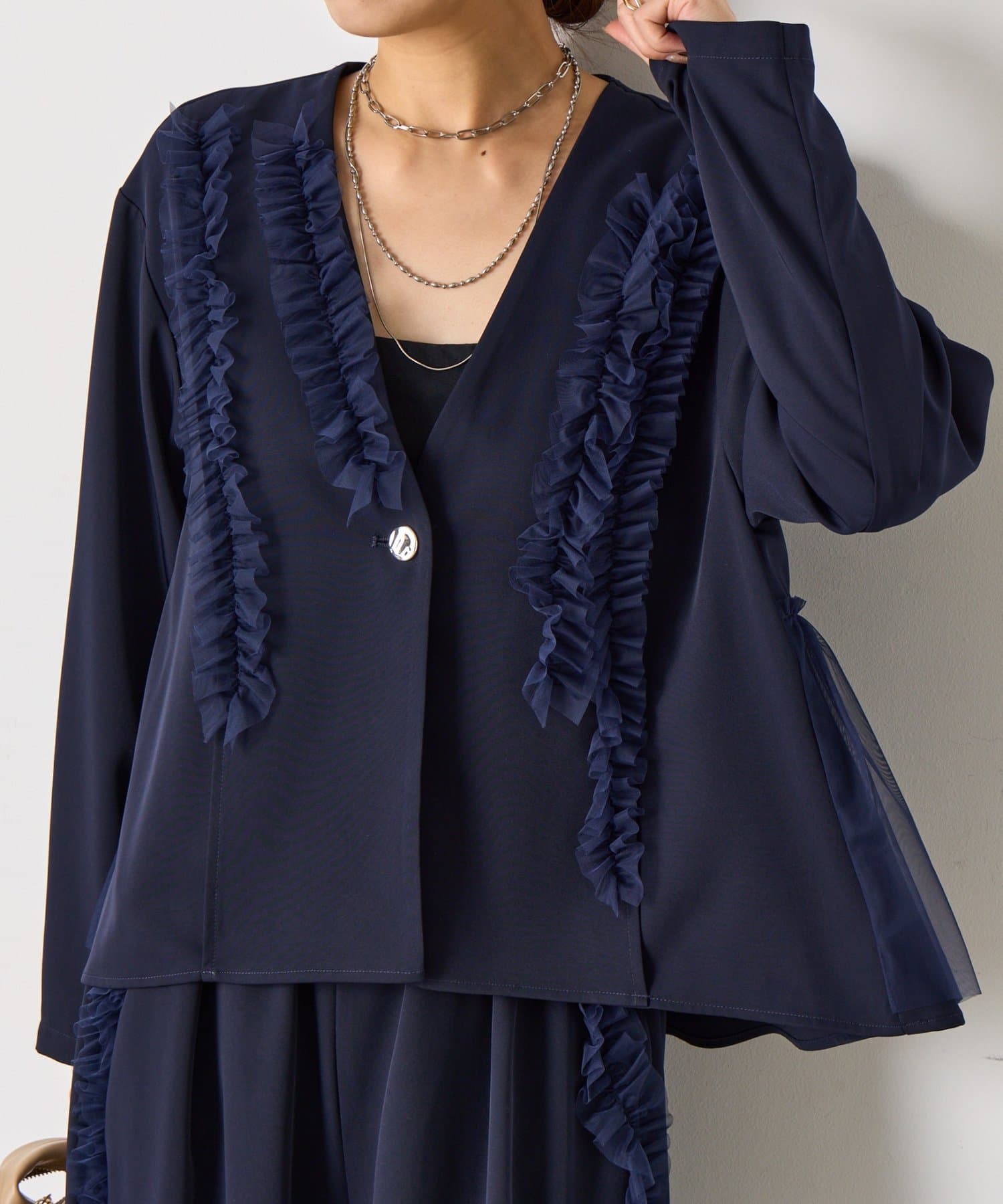 【オケージョン/2点セット】チュールジャケットセットアップ