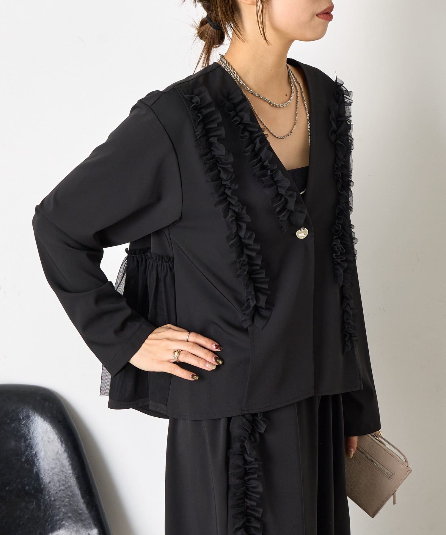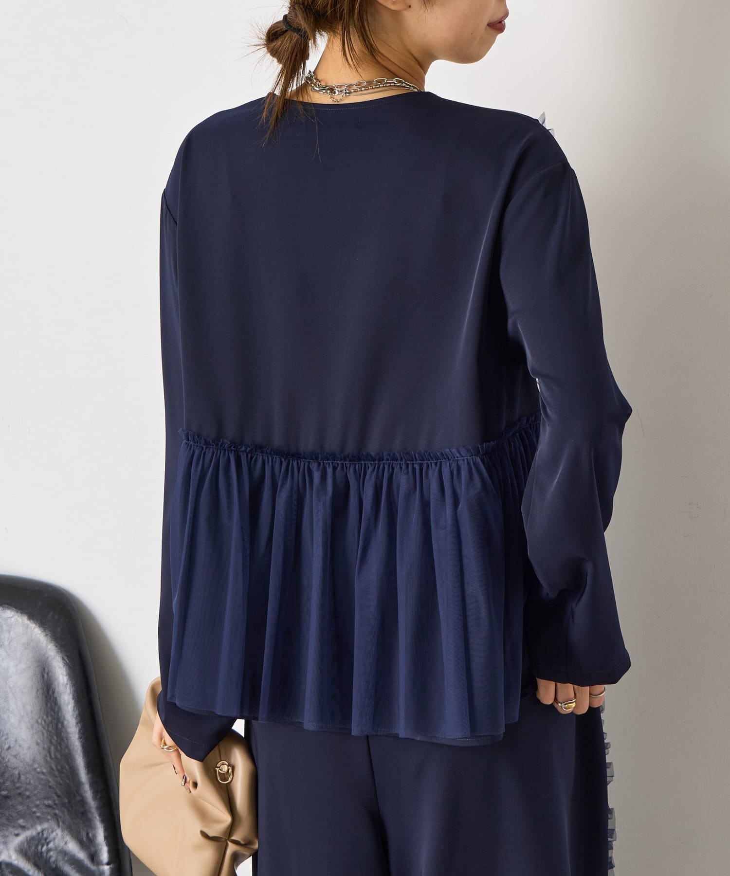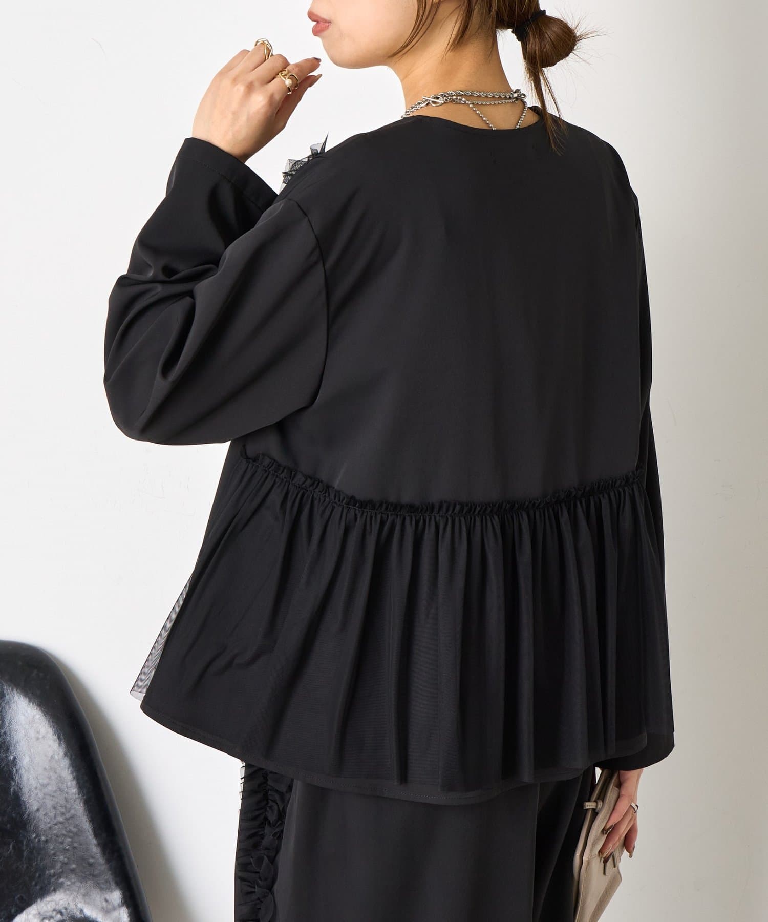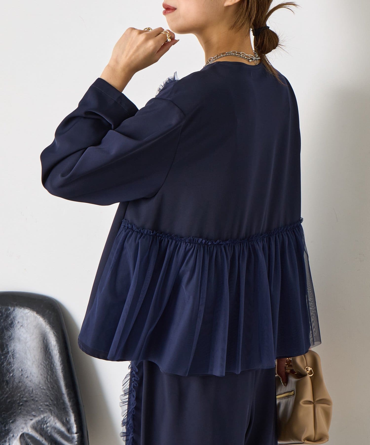 ・華やかなチュールデザインが施されたセットアイテム。