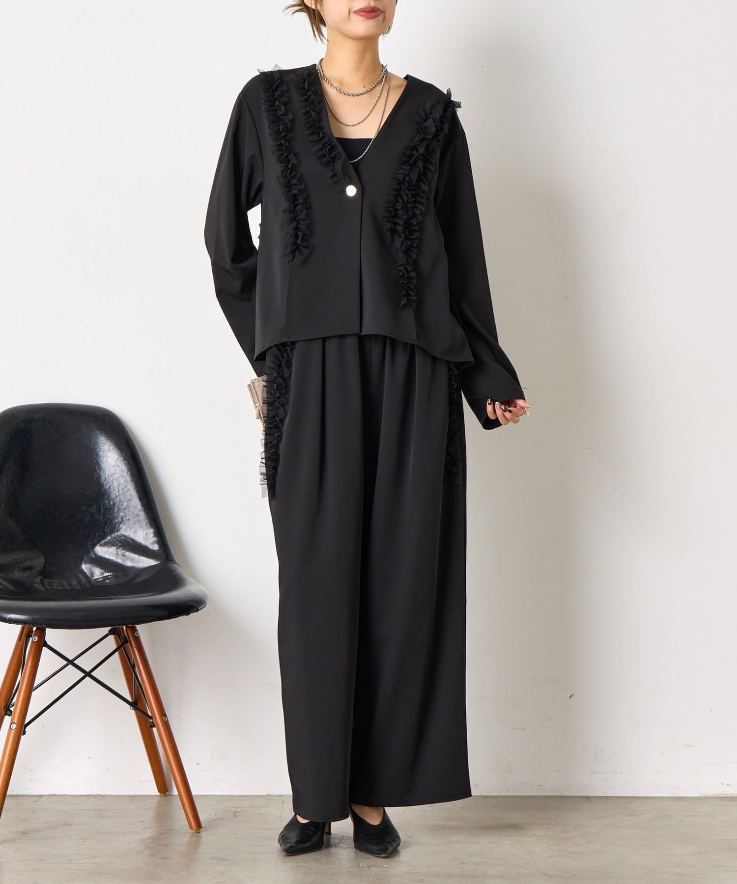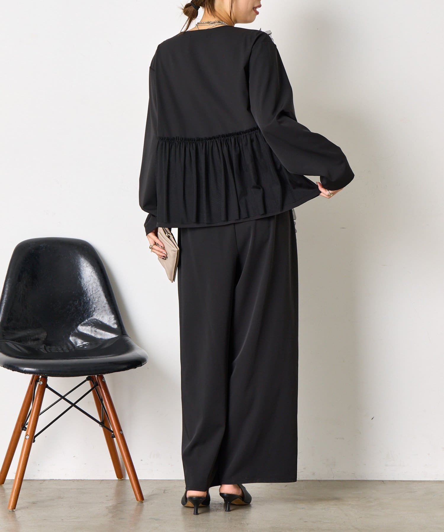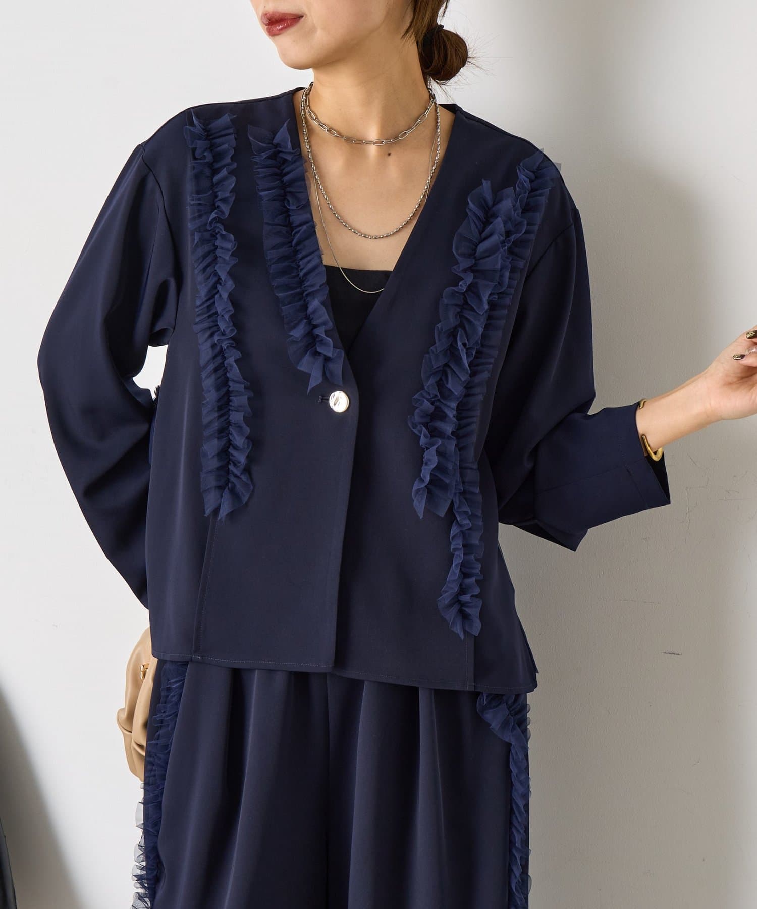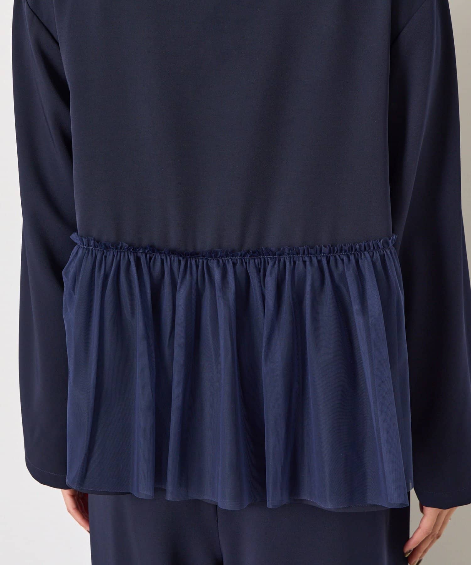 ・華やかなチュールデザインが施されたセットアイテム。