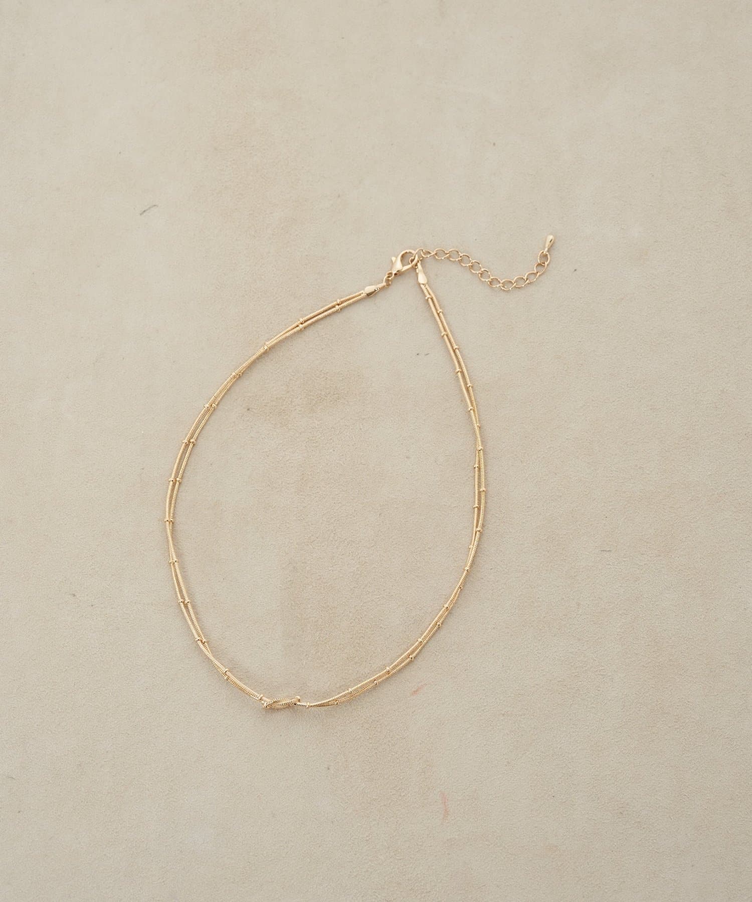 ・結び目モチーフでさりげなく個性を演出するナローネックレス