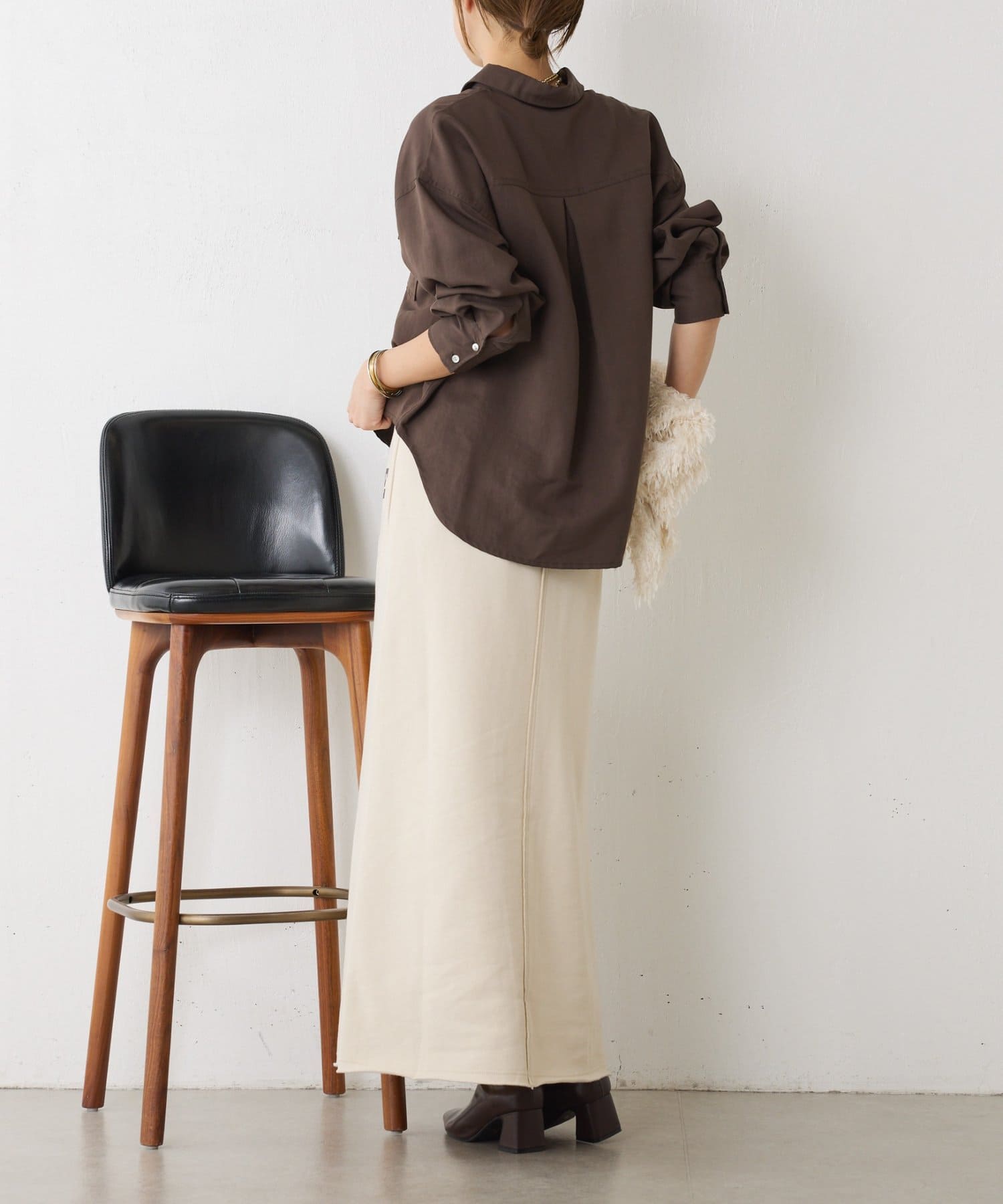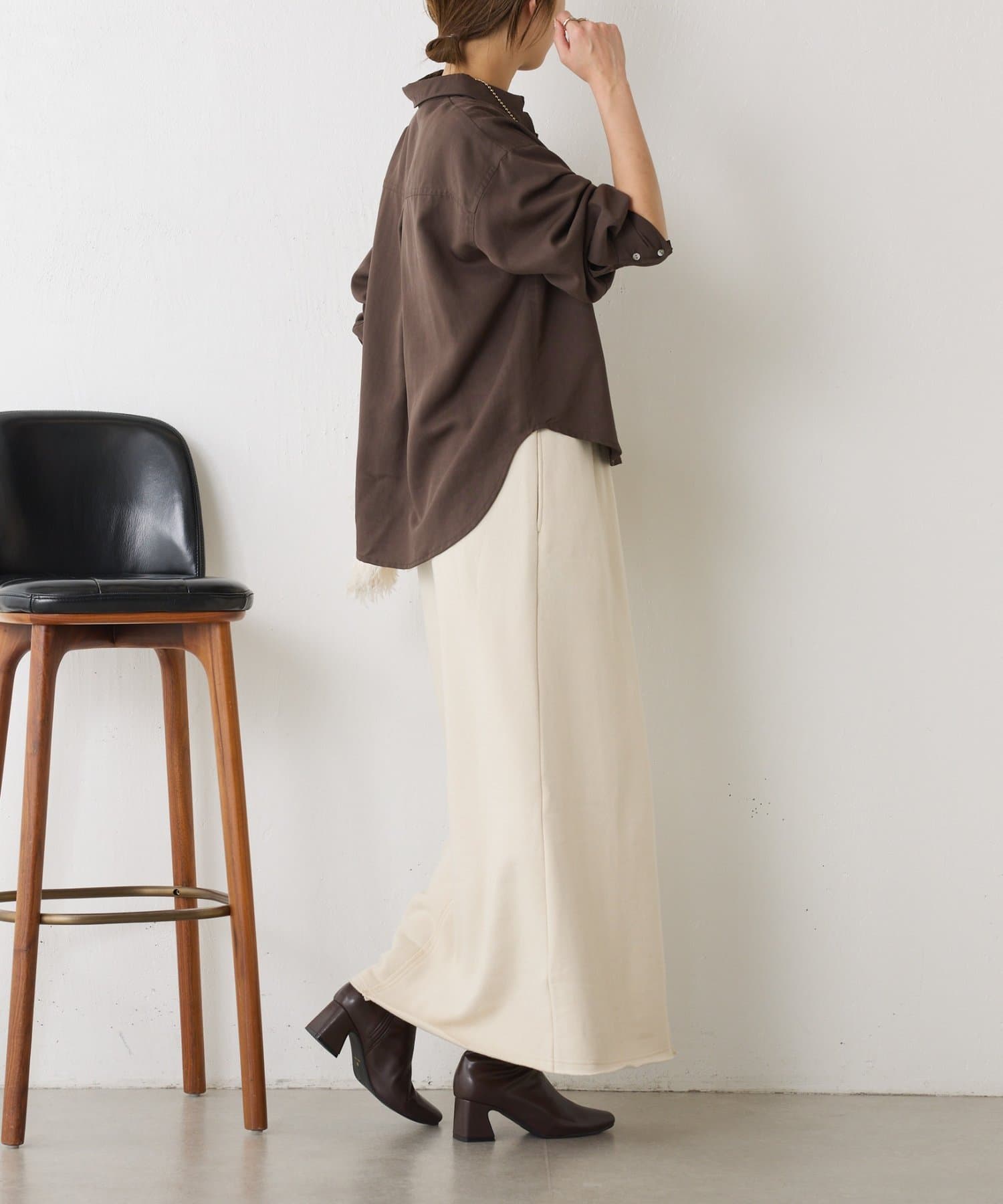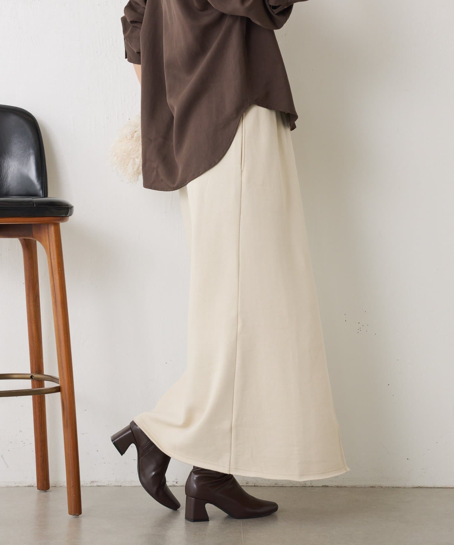 ・裾に向かってやや広がるシルエットはカジュアルすぎず女性らしい印象に。