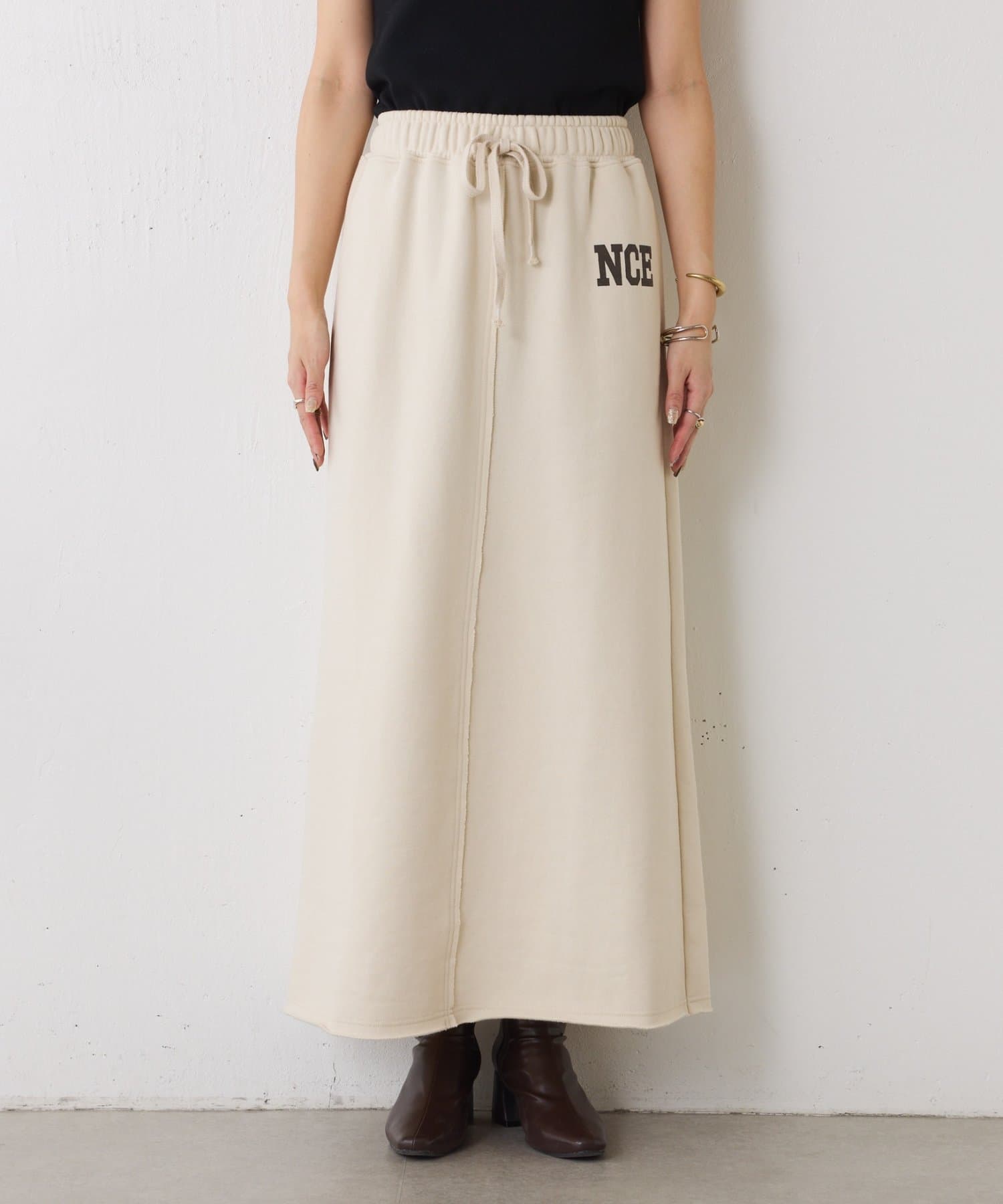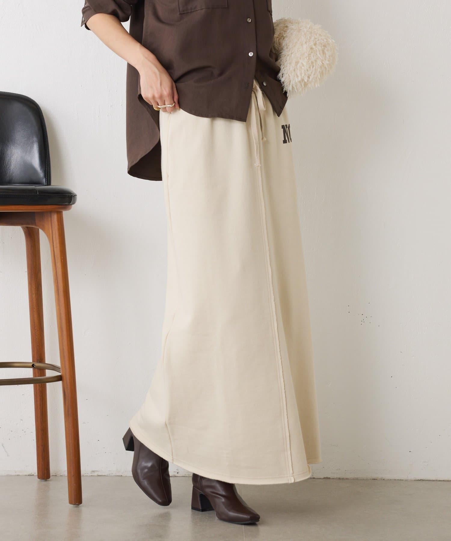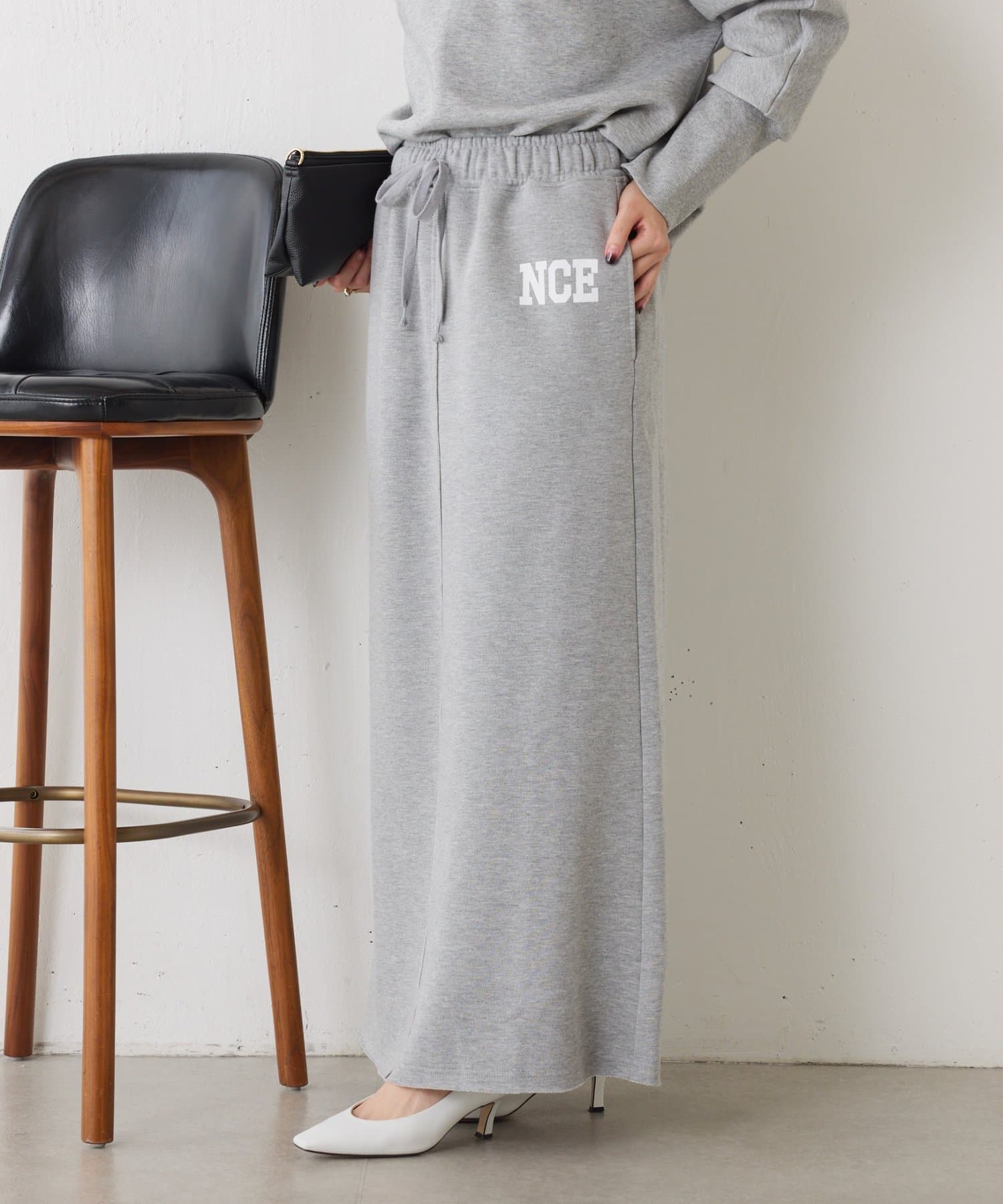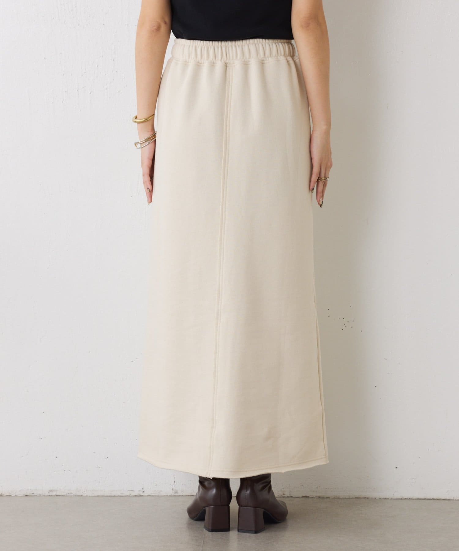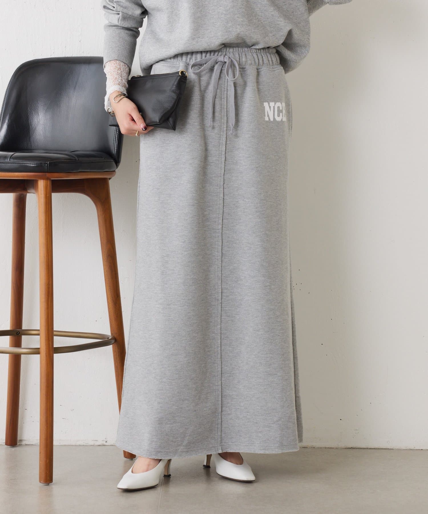・ワンポイントロゴがアクセントのスウェット素材のロングスカート。