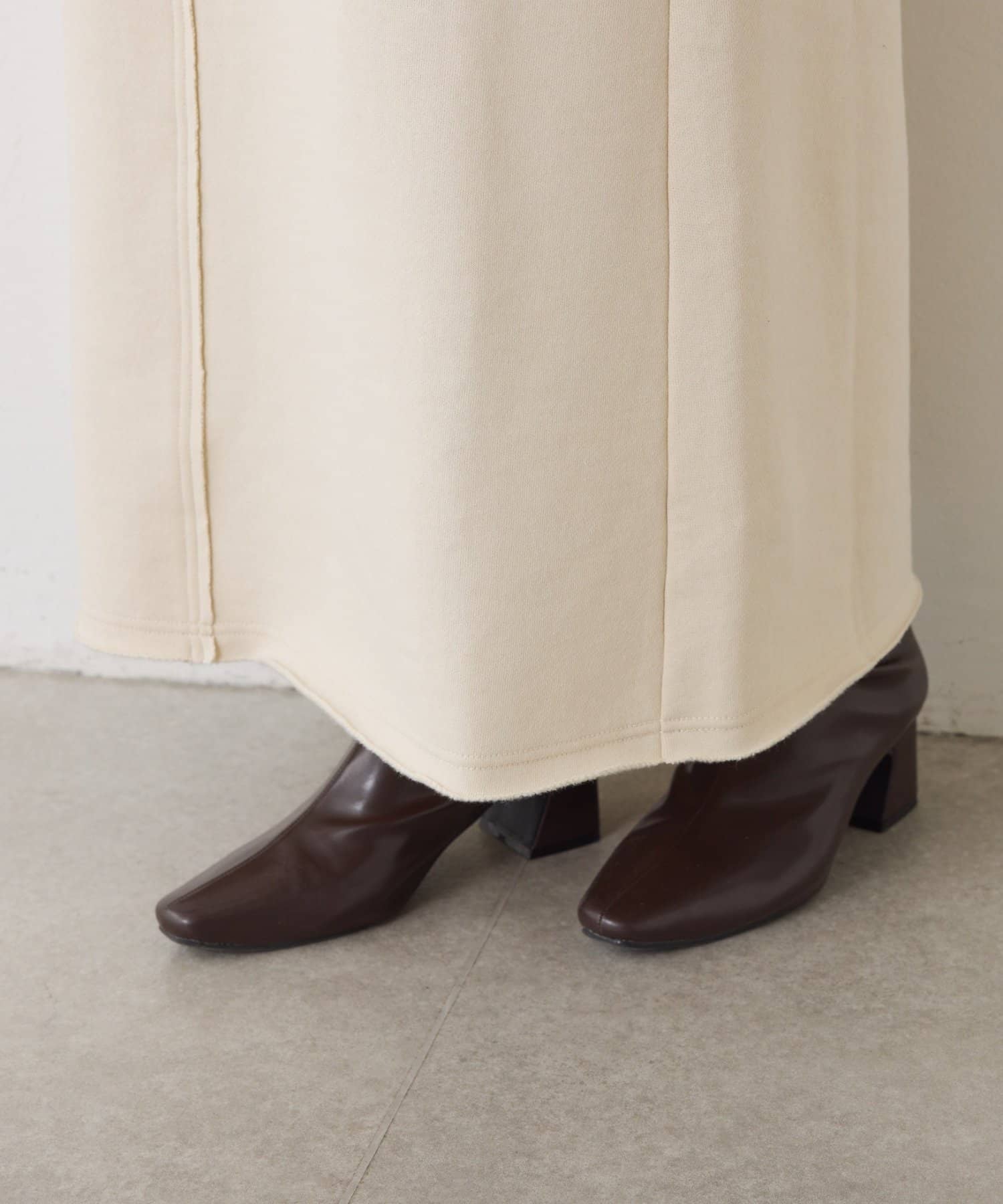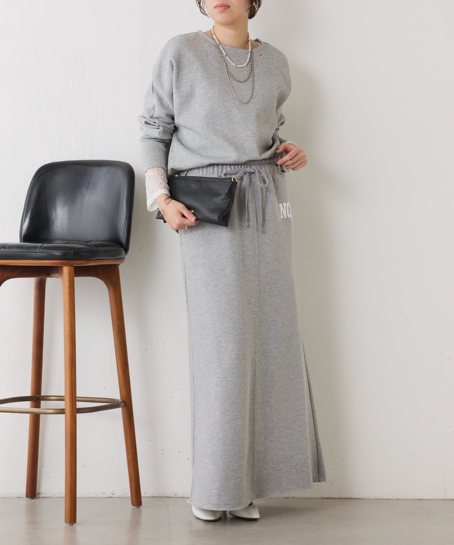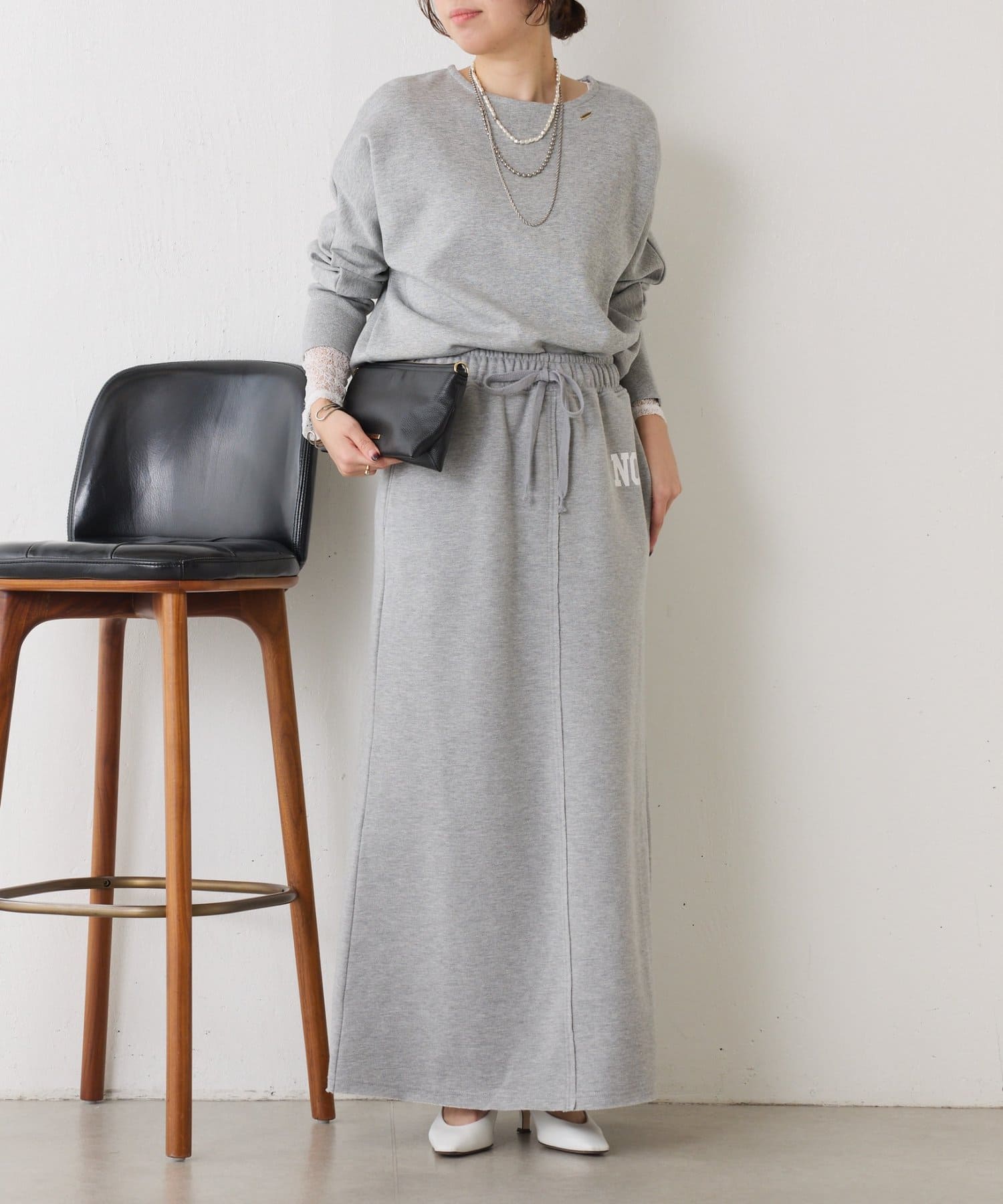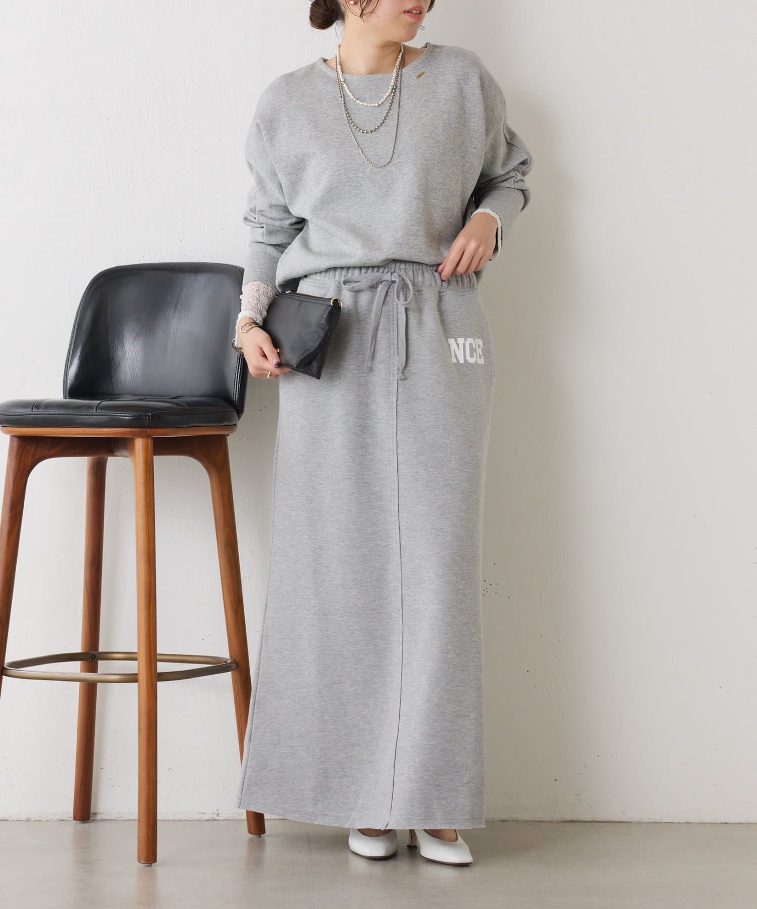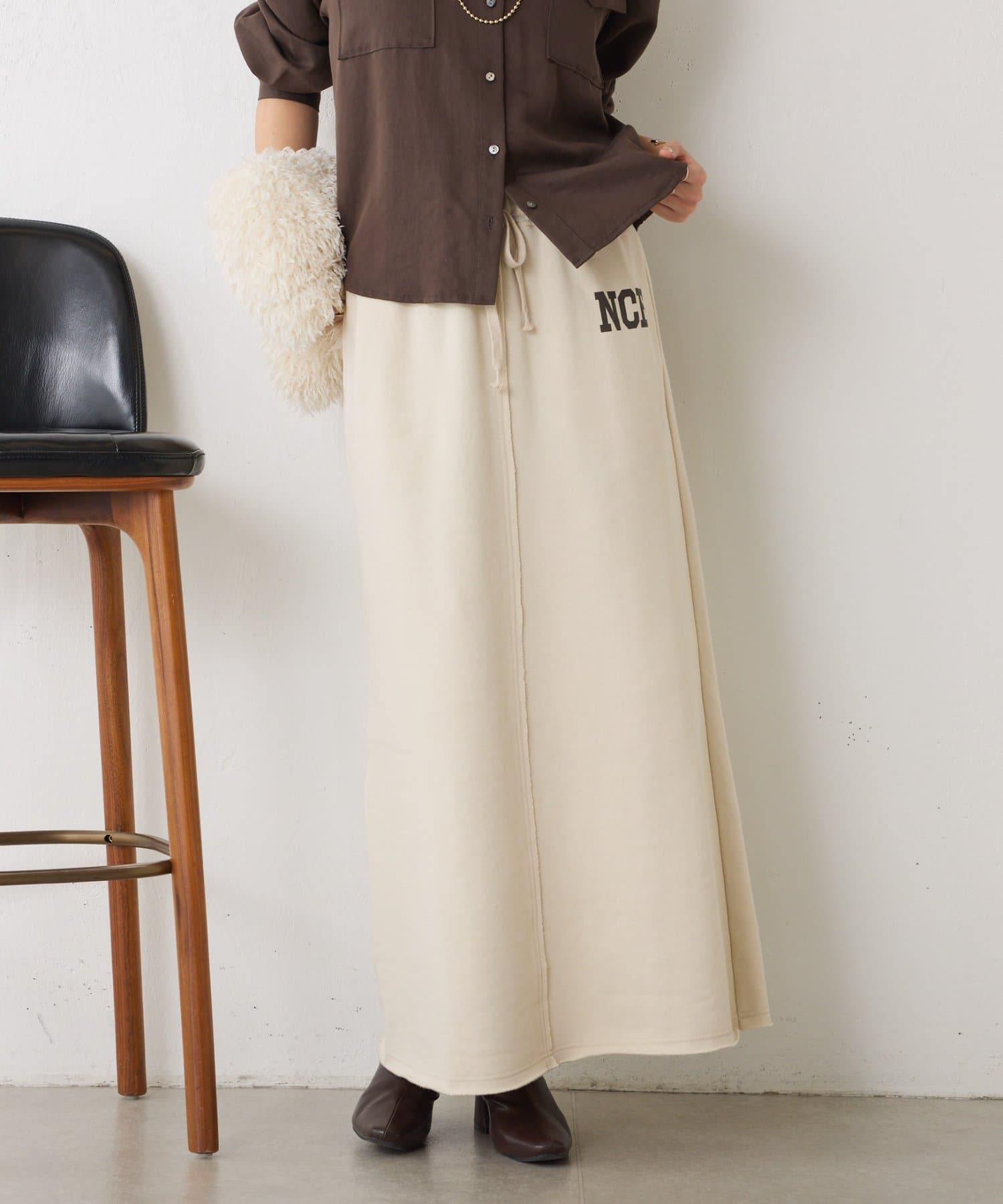 ・ワンポイントロゴがアクセントのスウェット素材のロングスカート。