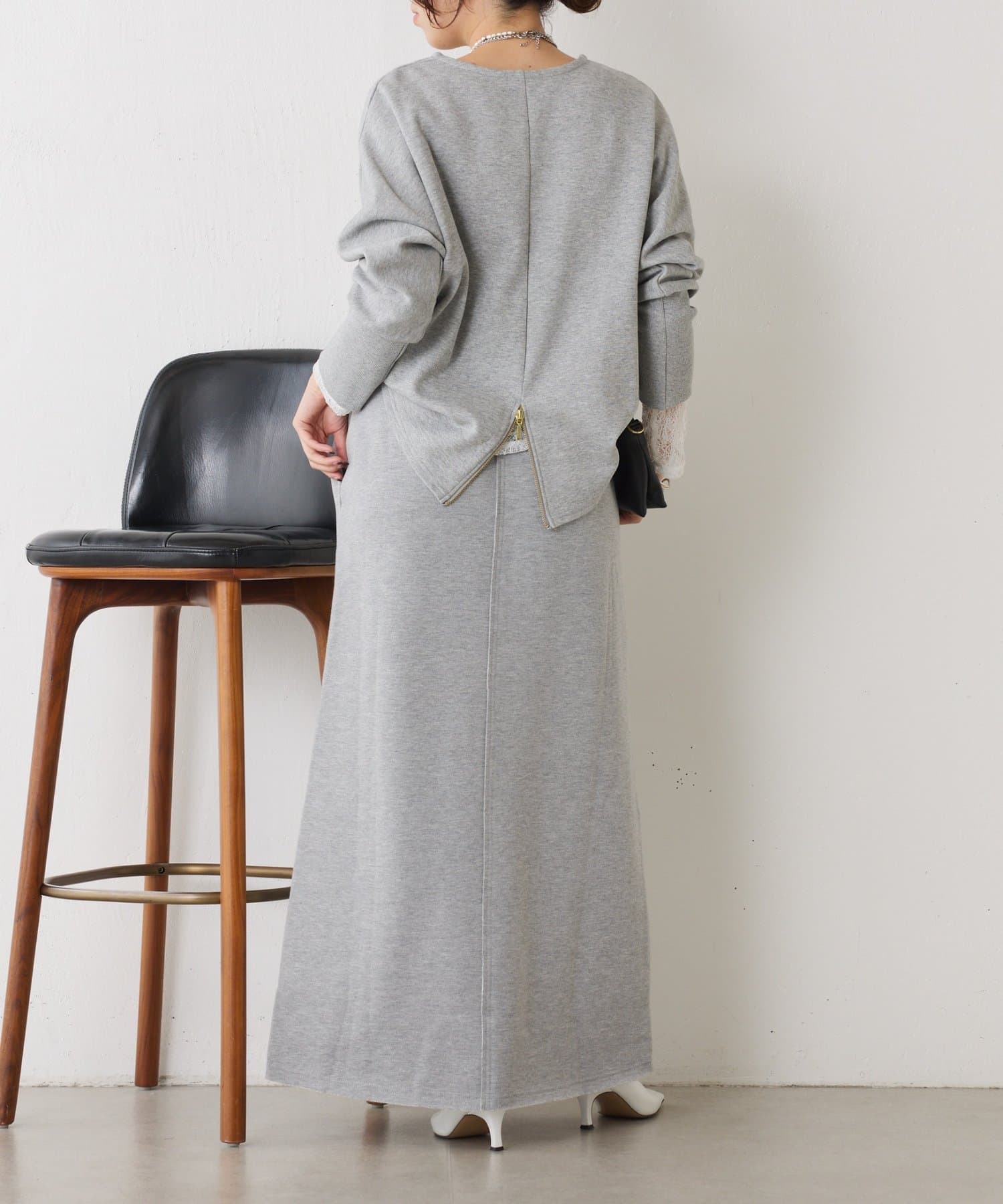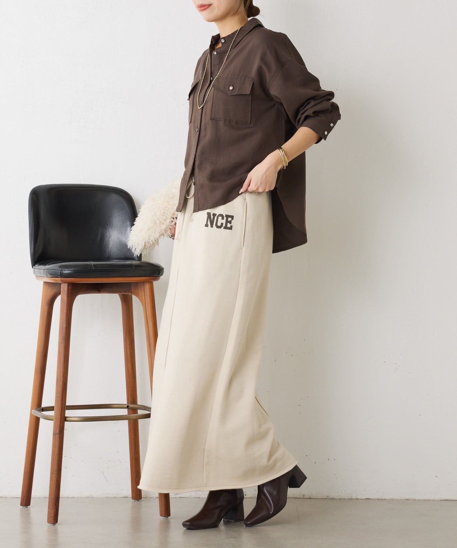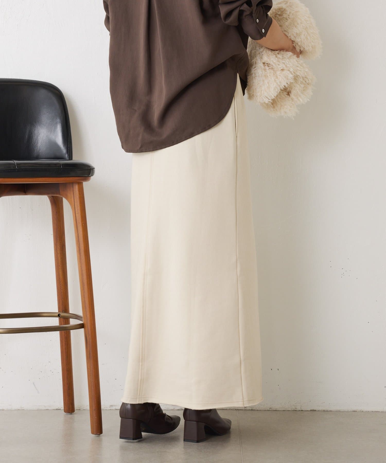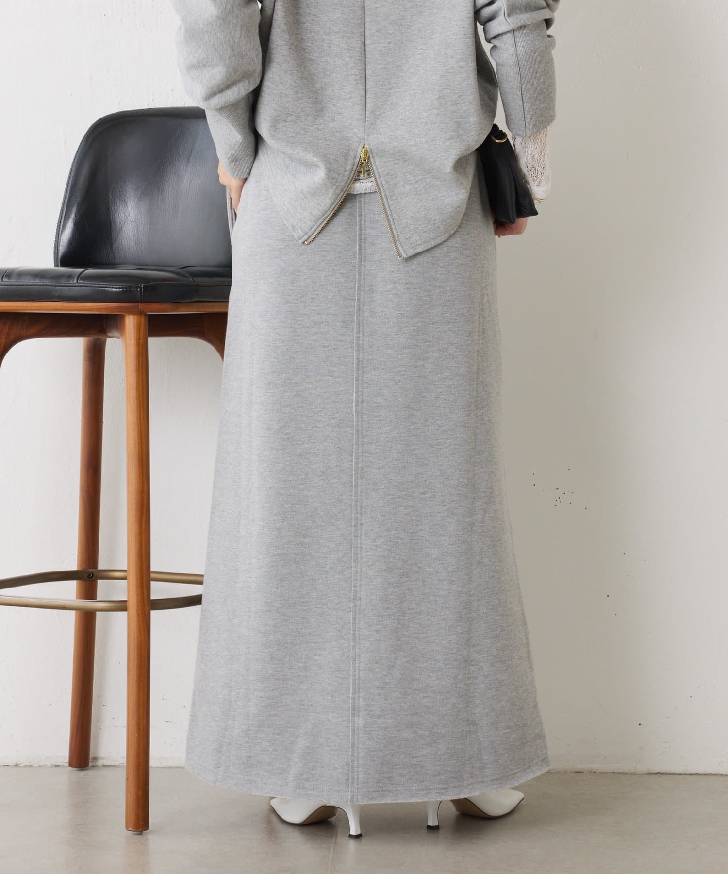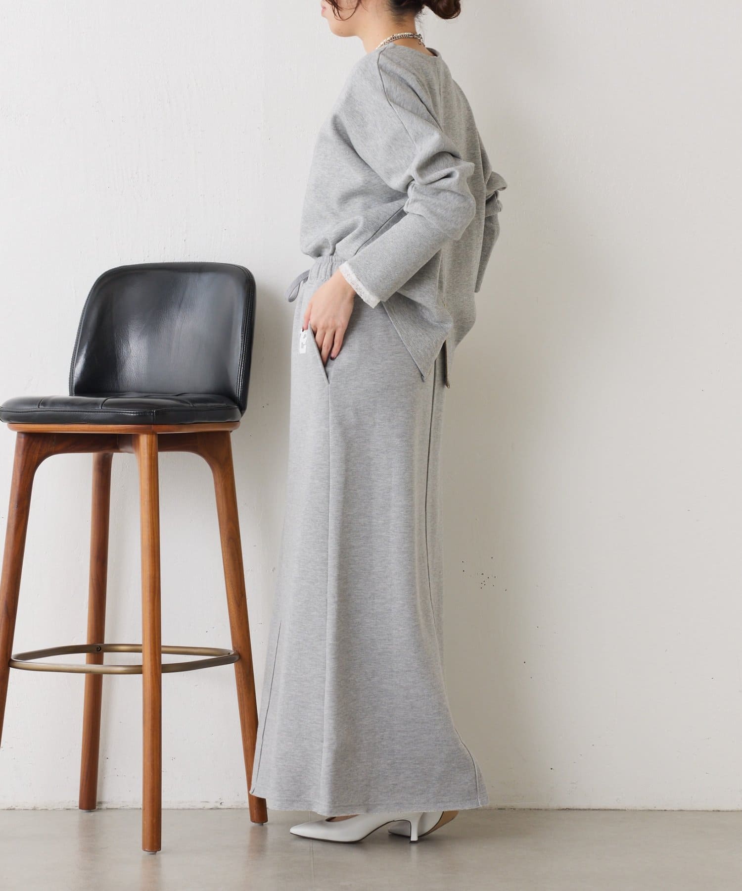 ・ワンポイントロゴがアクセントのスウェット素材のロングスカート。