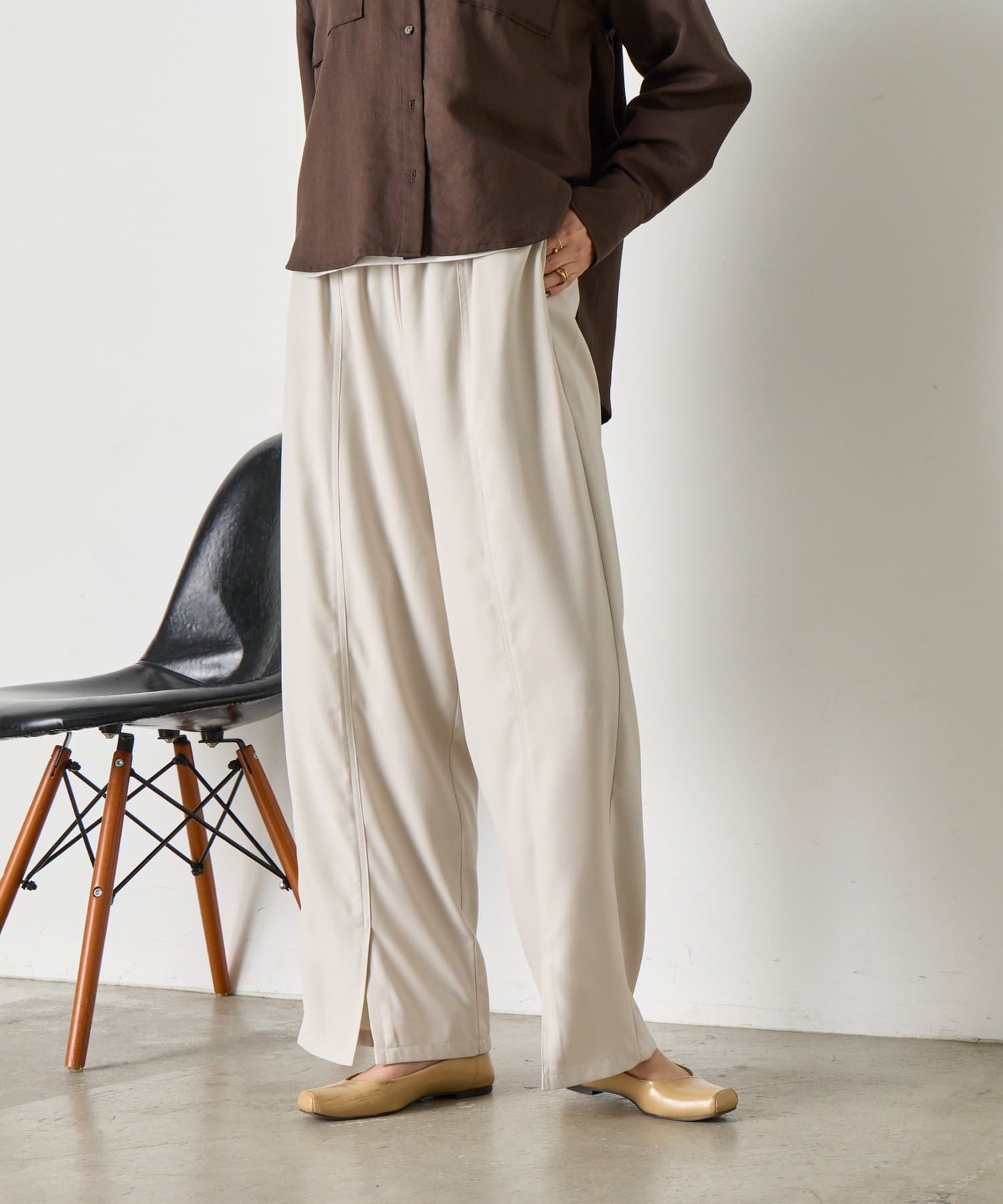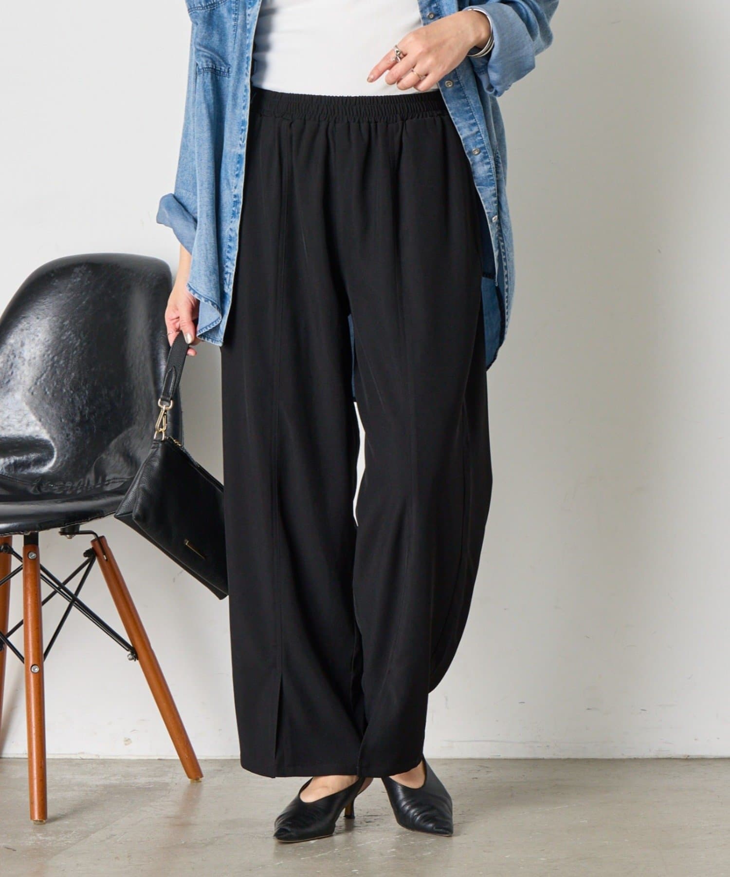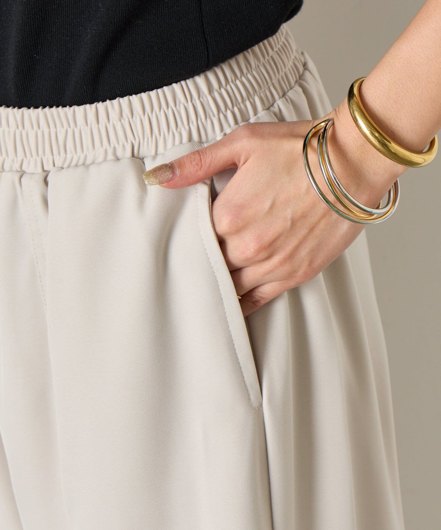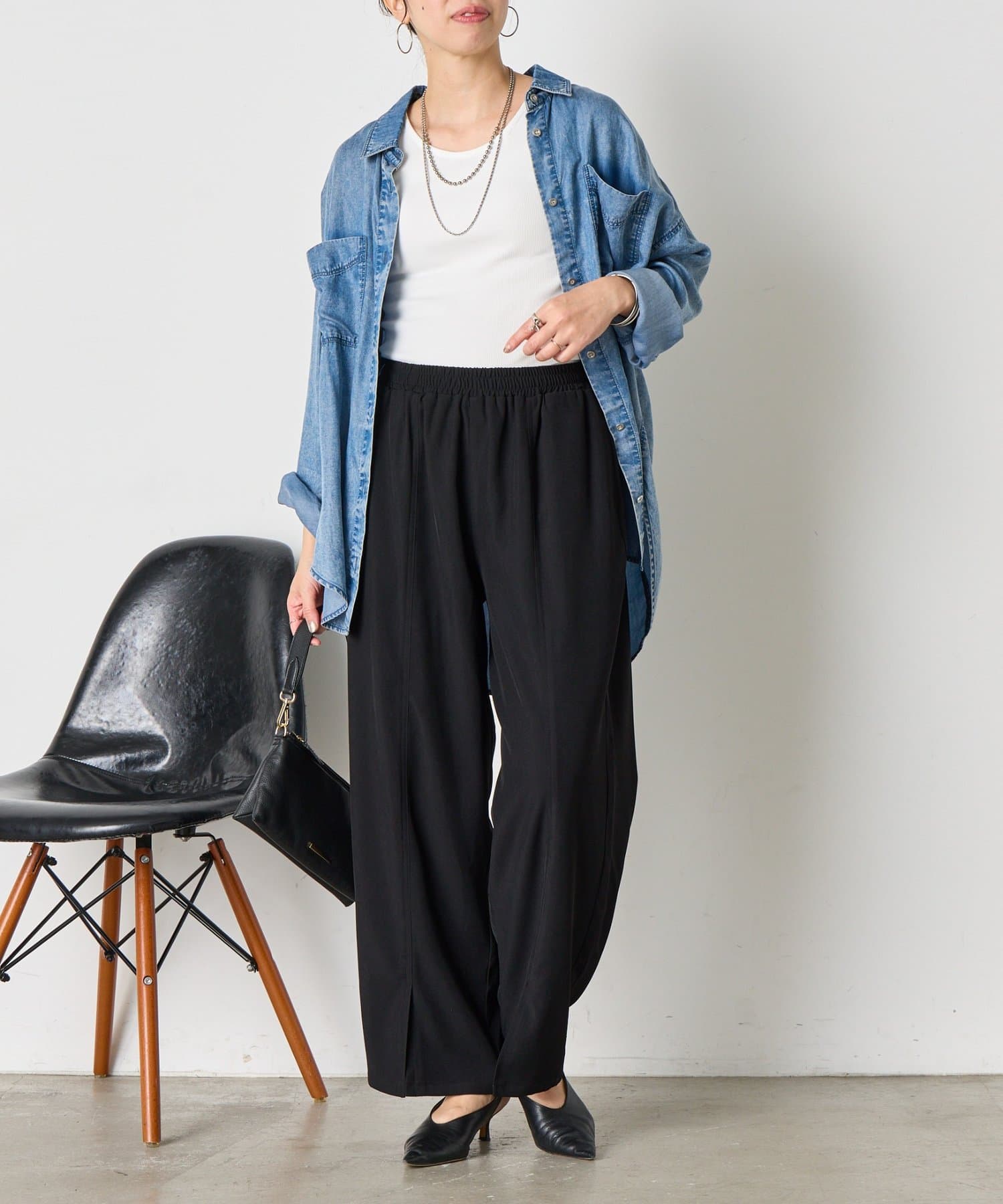 ・ゆったりとしたシルエットで、脚のラインを拾いにくくしてくれます。