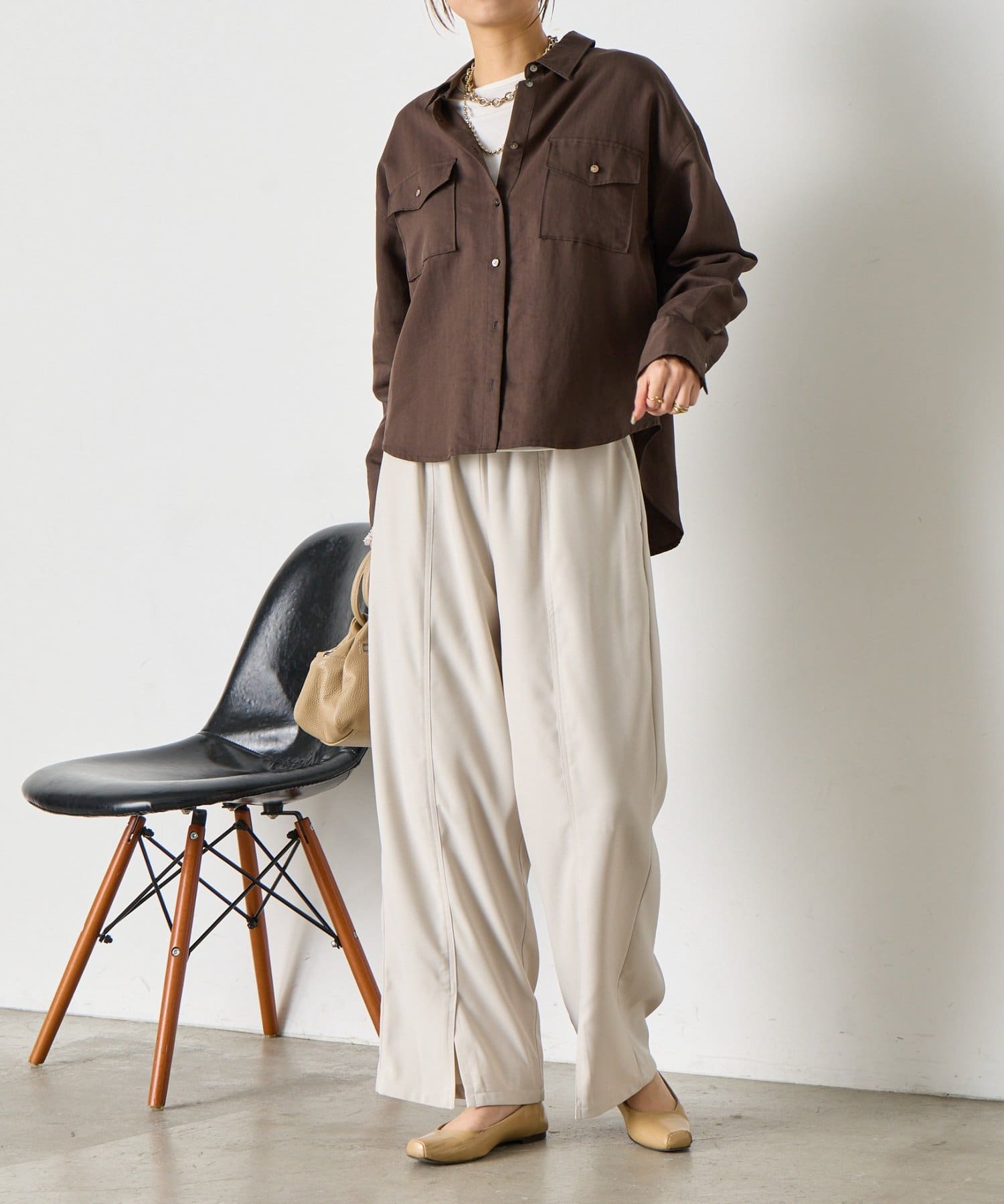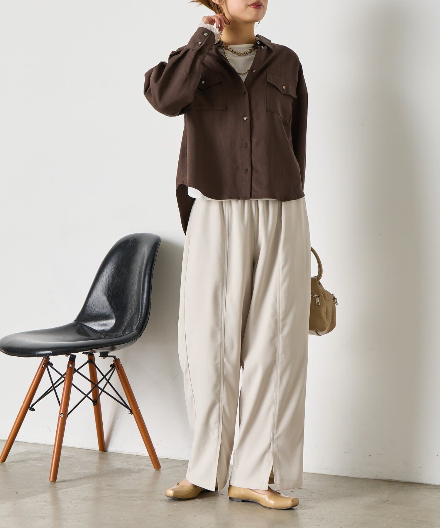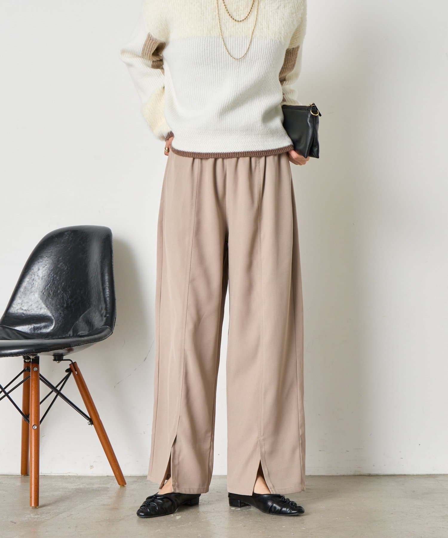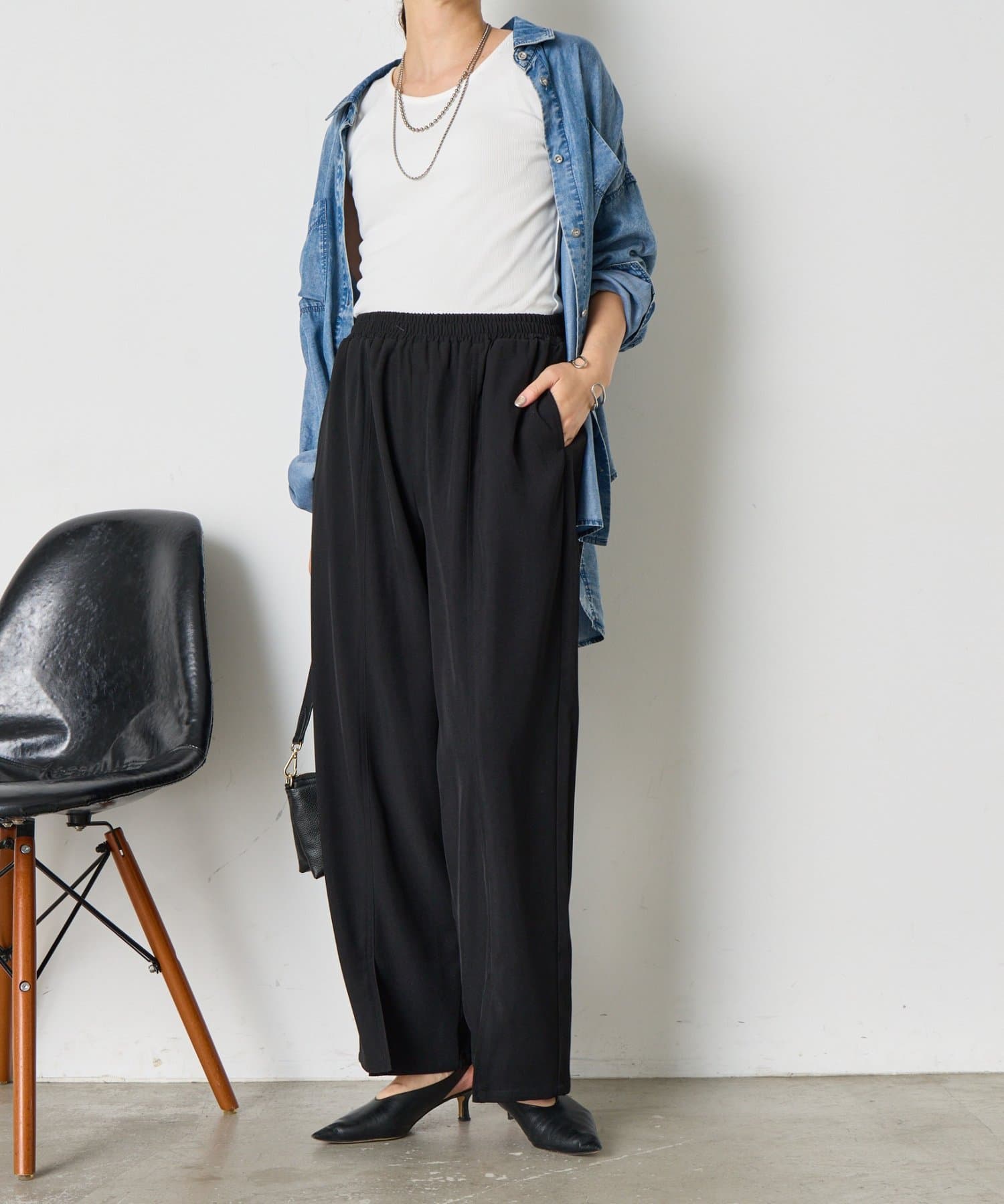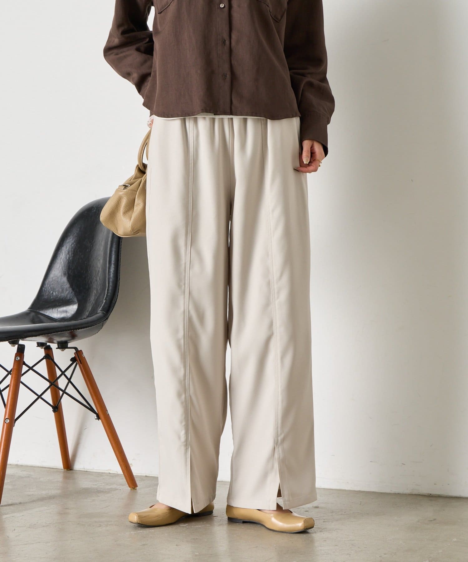 ・ゆったりとしたシルエットで、脚のラインを拾いにくくしてくれます。