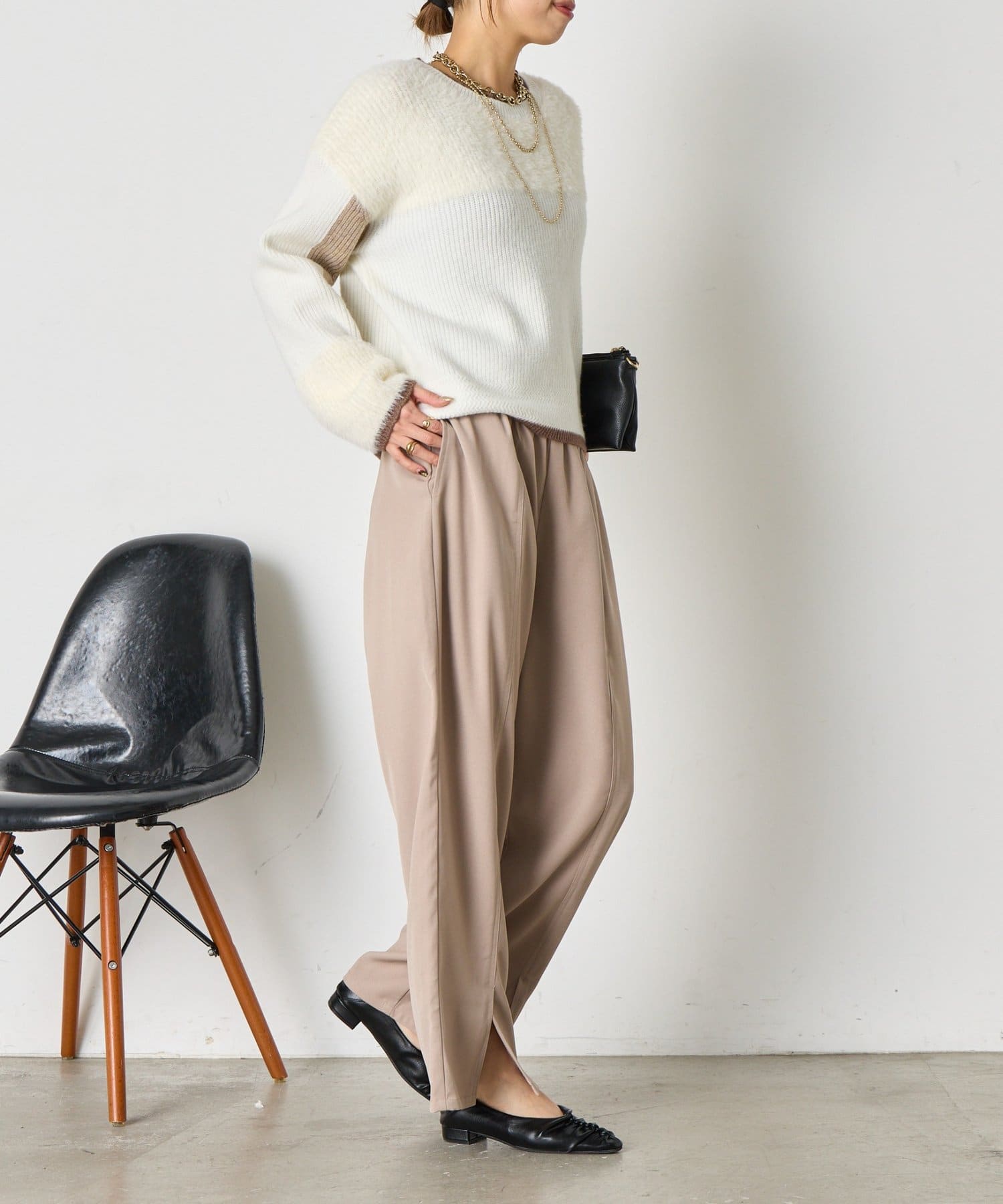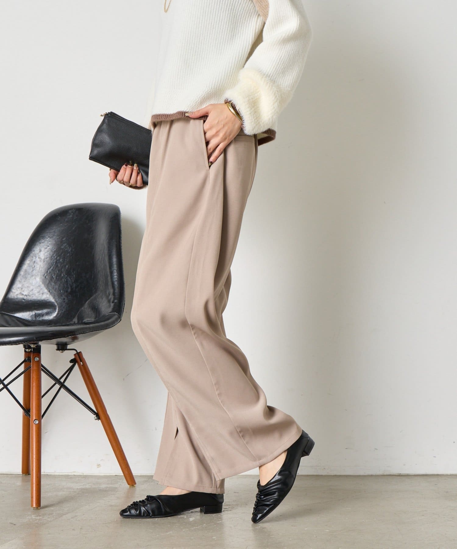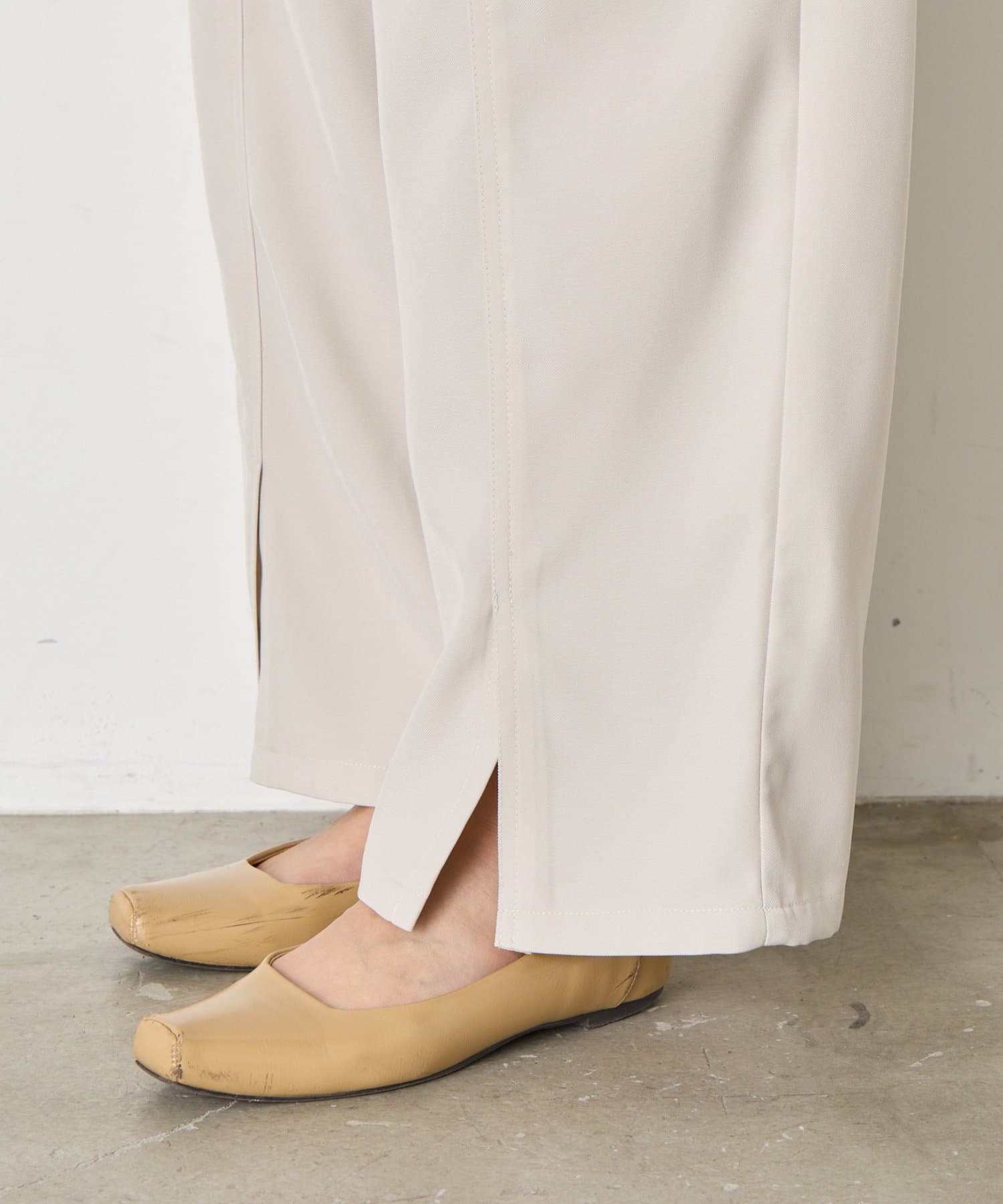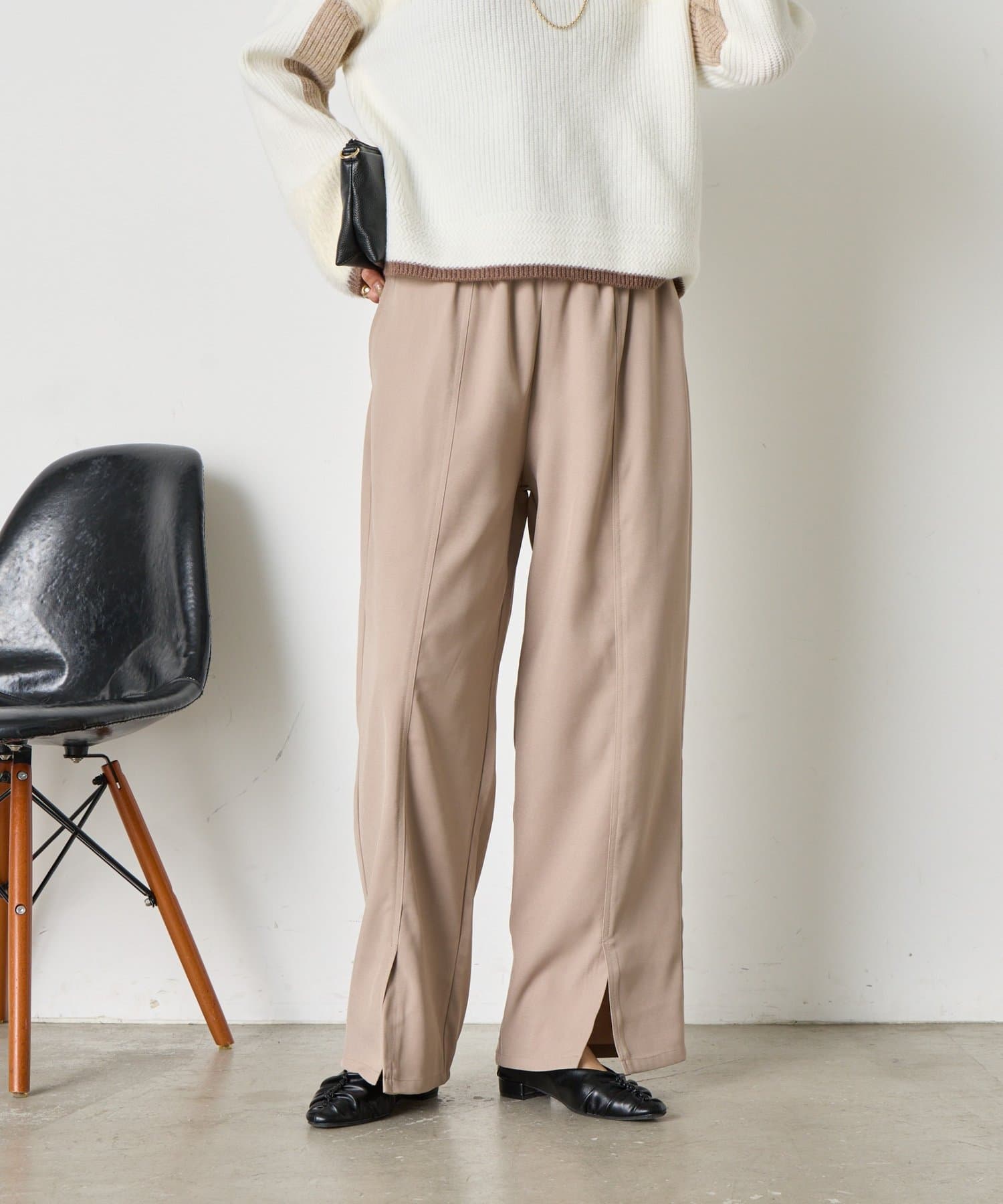・ゆったりとしたシルエットで、脚のラインを拾いにくくしてくれます。
