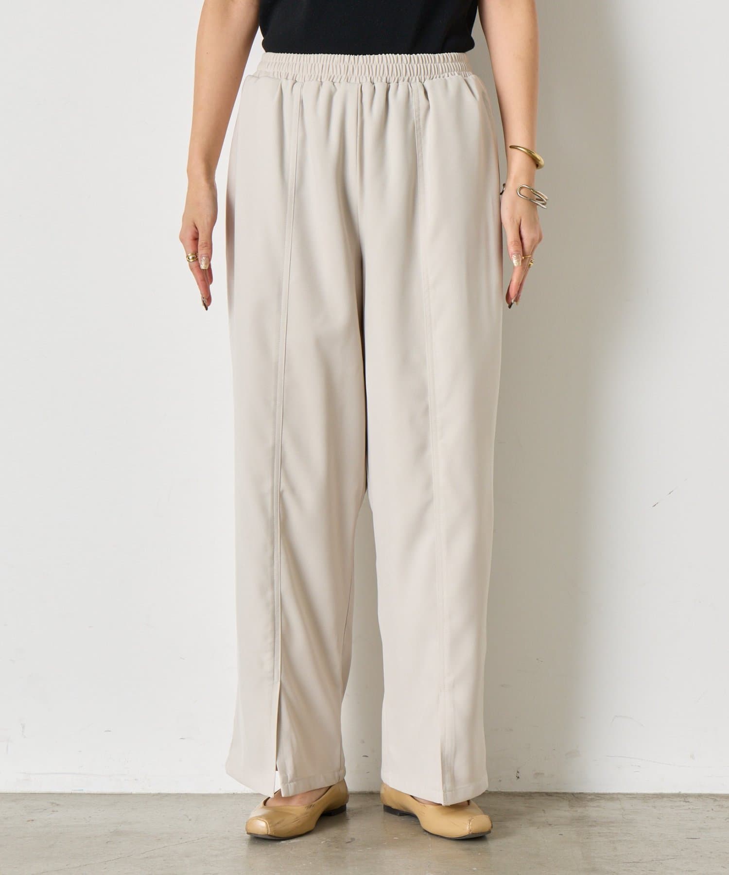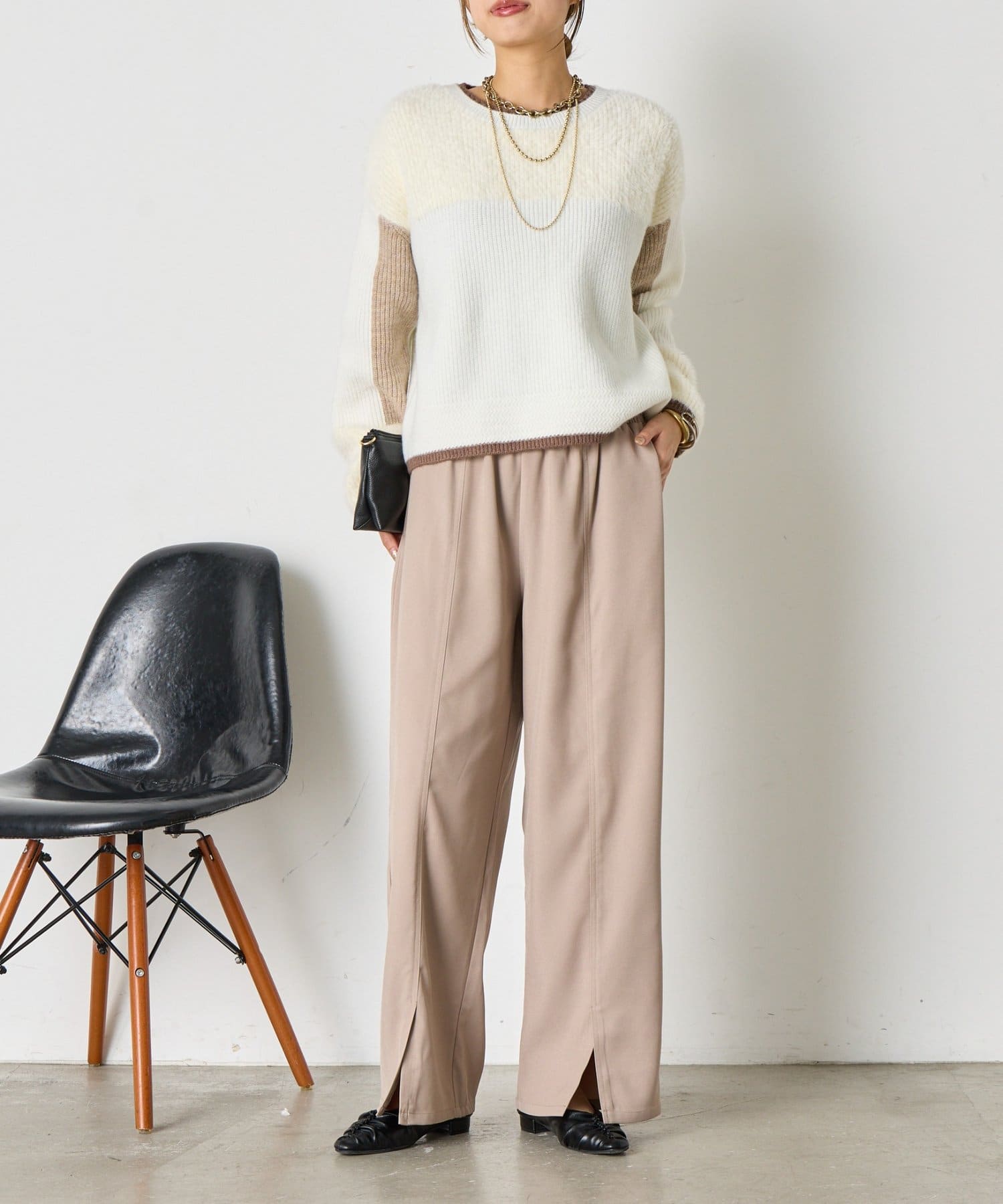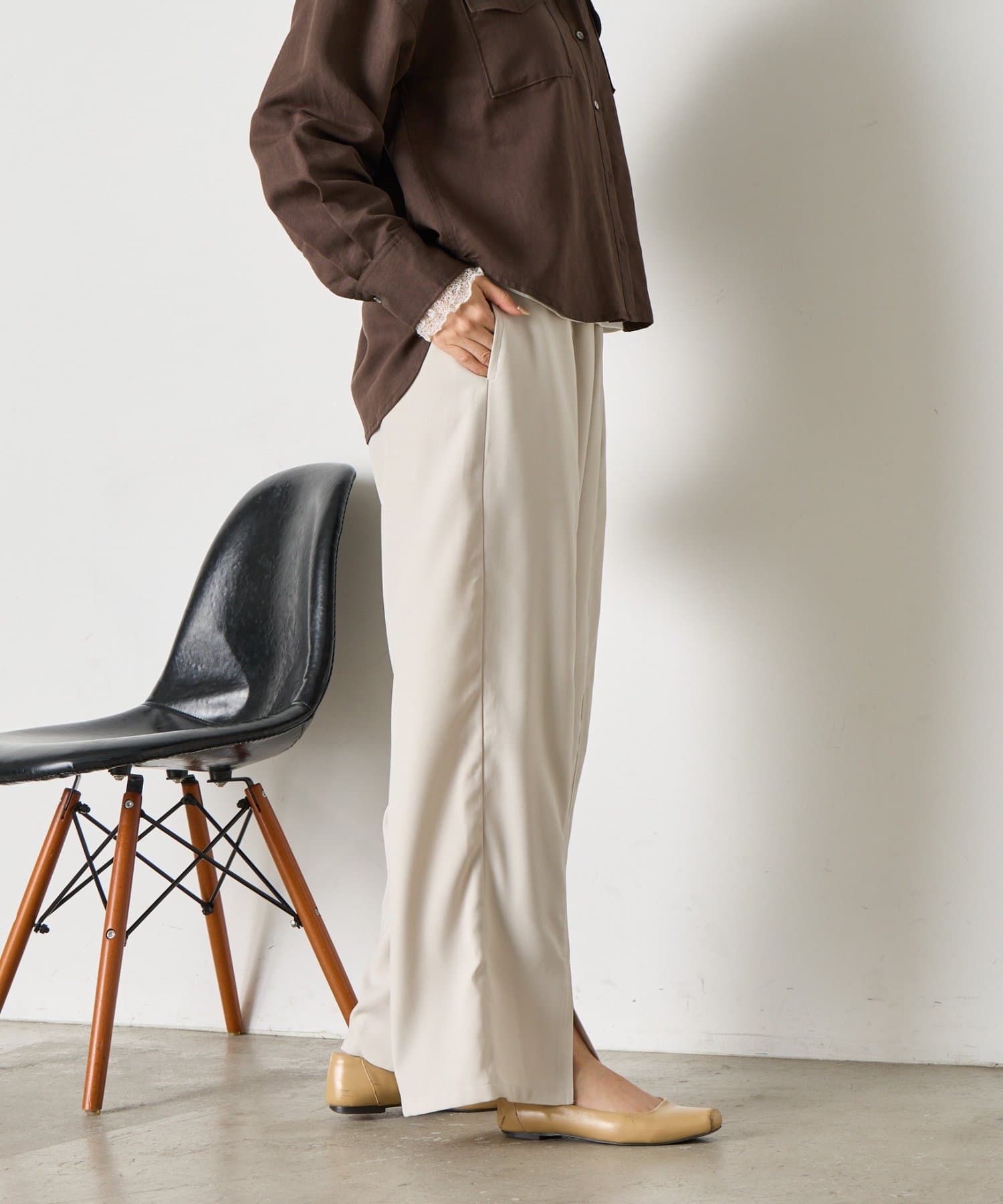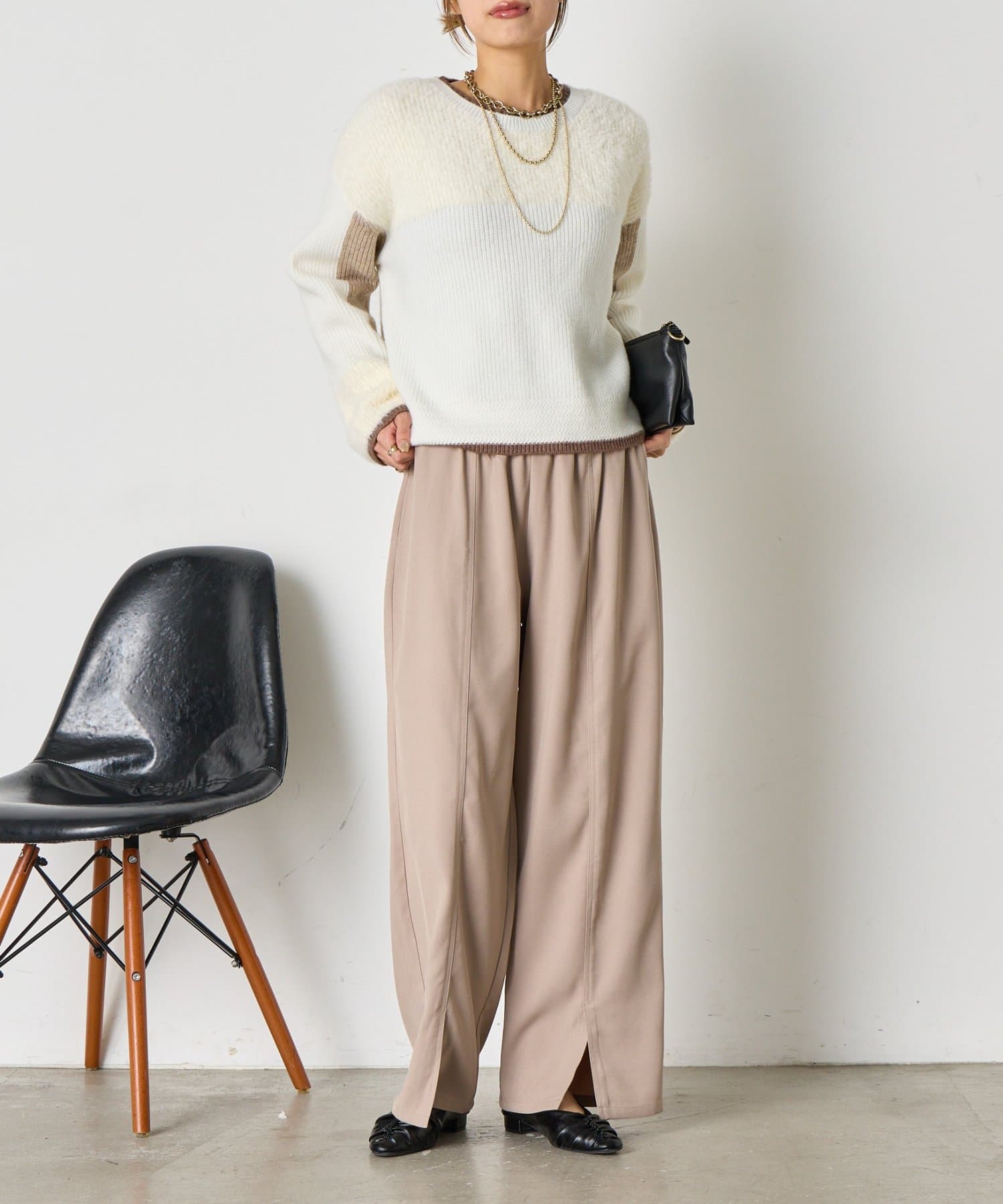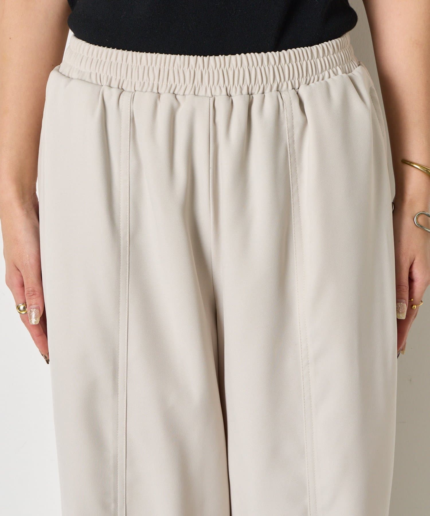 ・ゆったりとしたシルエットで、脚のラインを拾いにくくしてくれます。