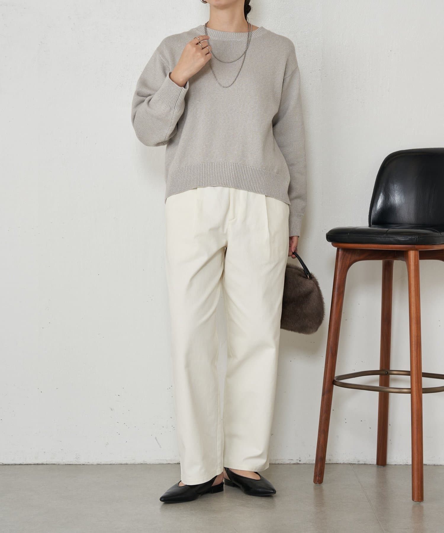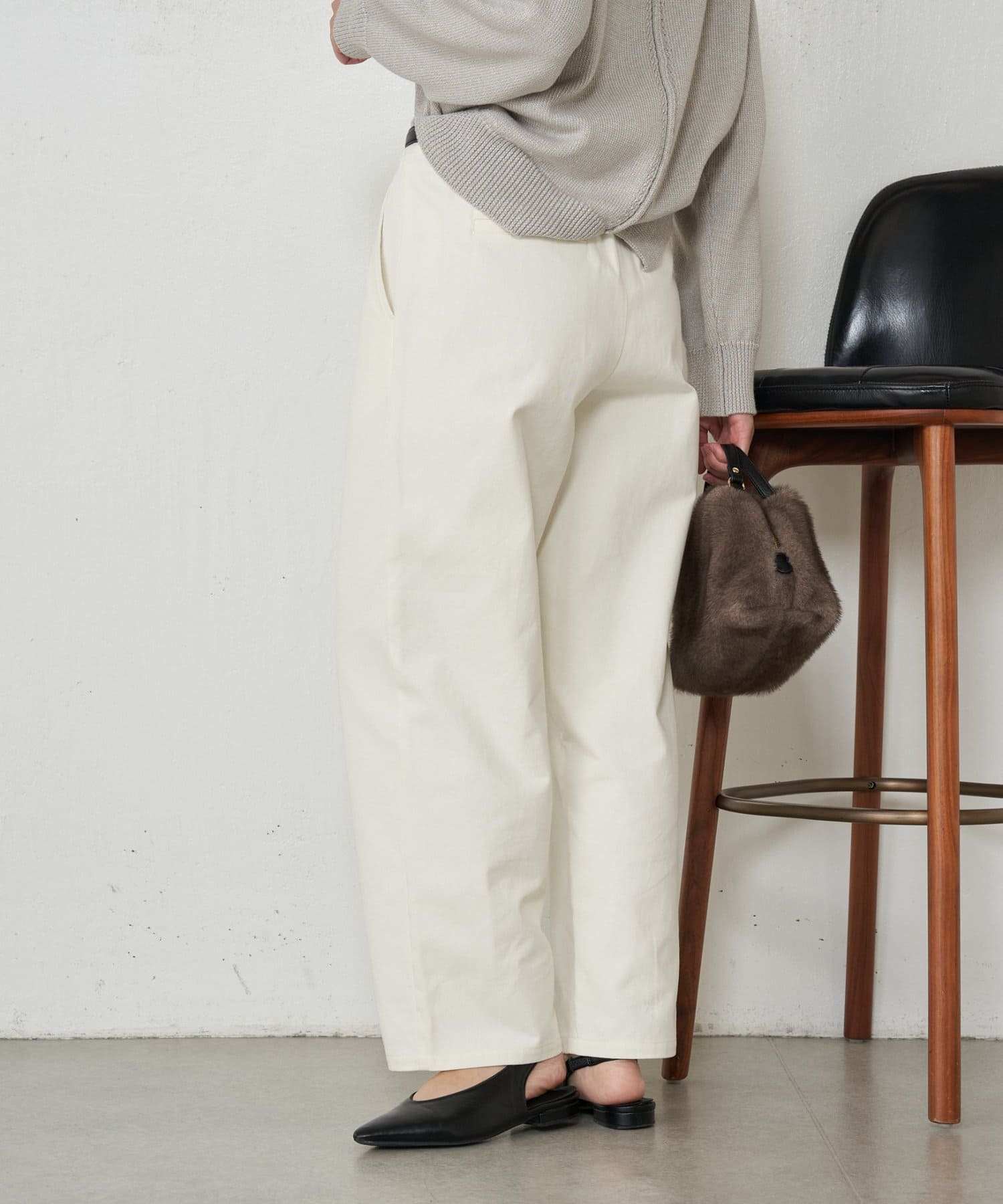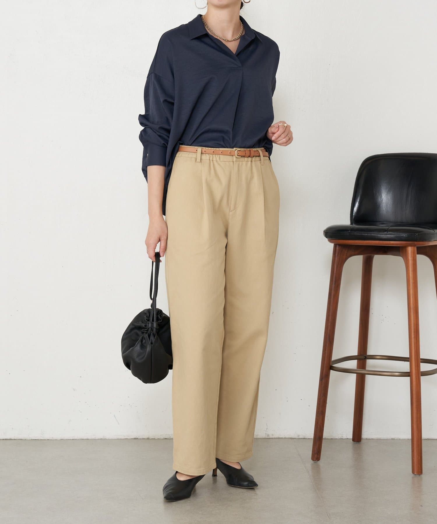 ・程よい張り感のあるストレートシルエットのチノパンツ。