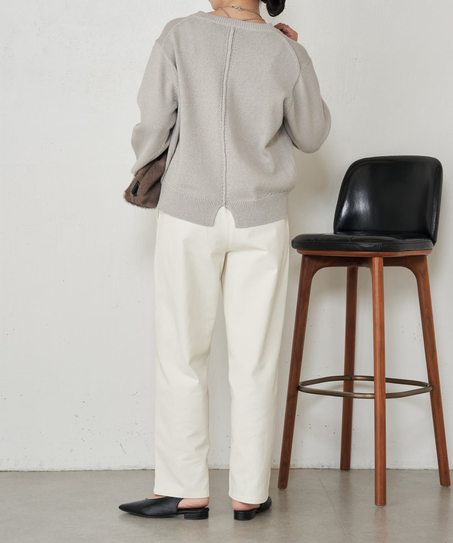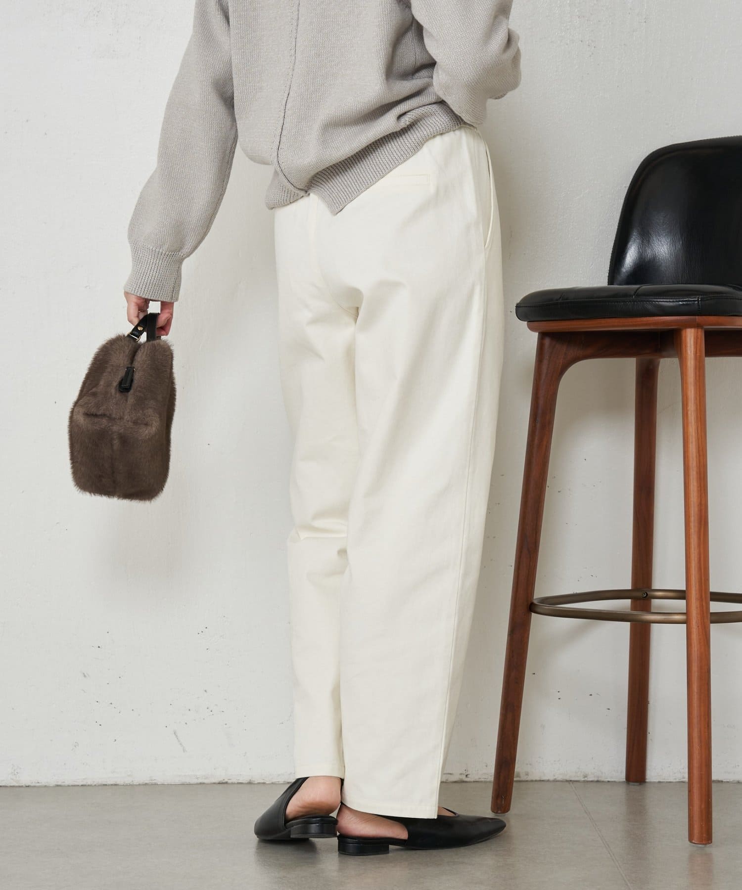 ・裾まわりをすっきり仕上げ、カジュアルになりすぎず女性らしく穿きこなせる一本です。