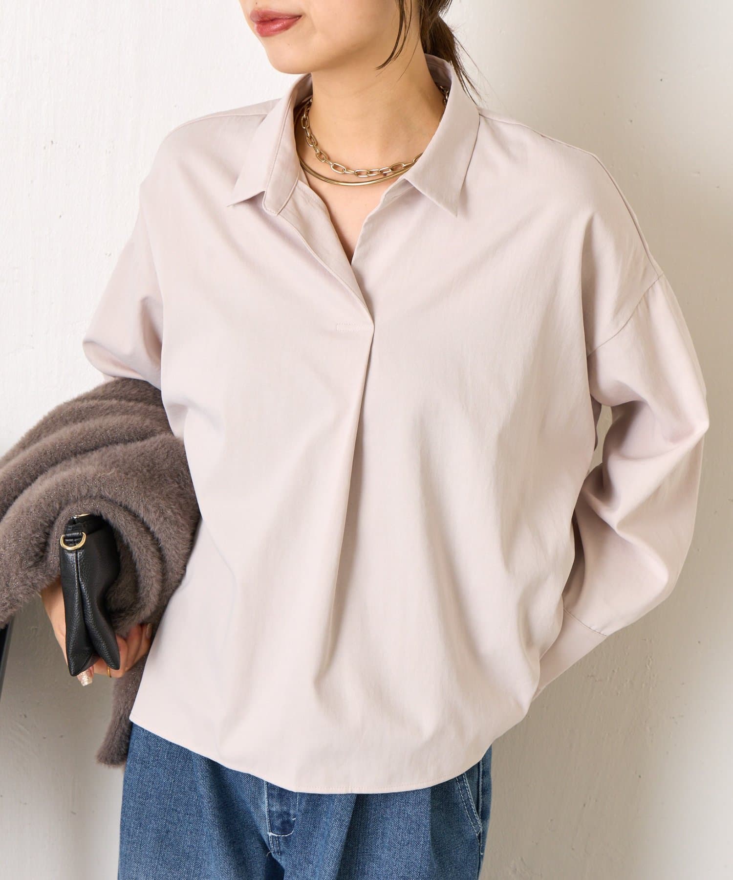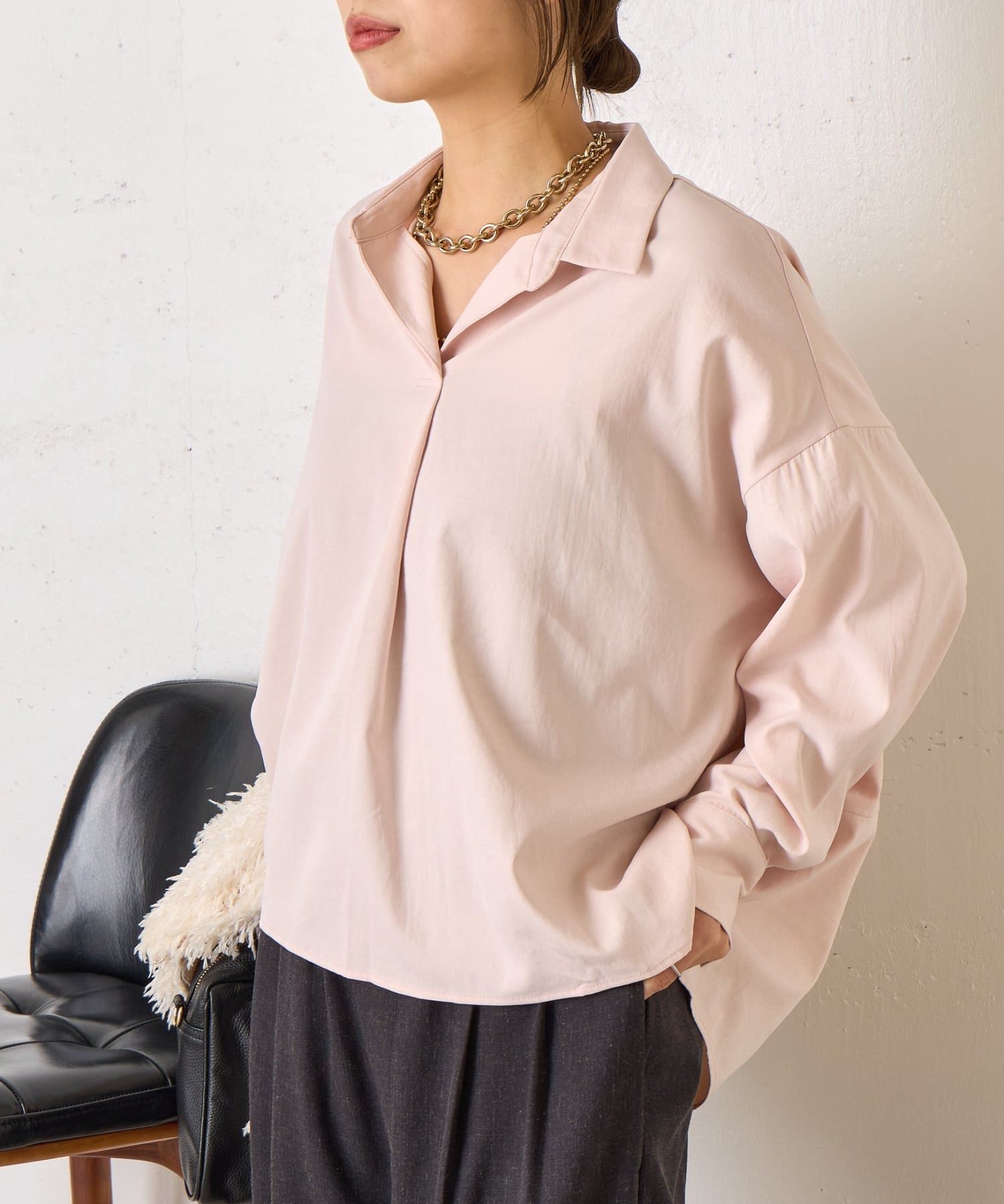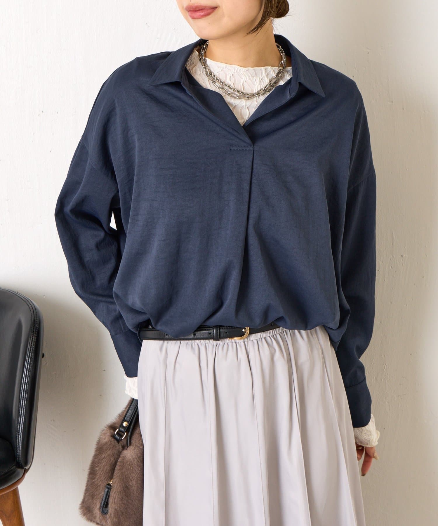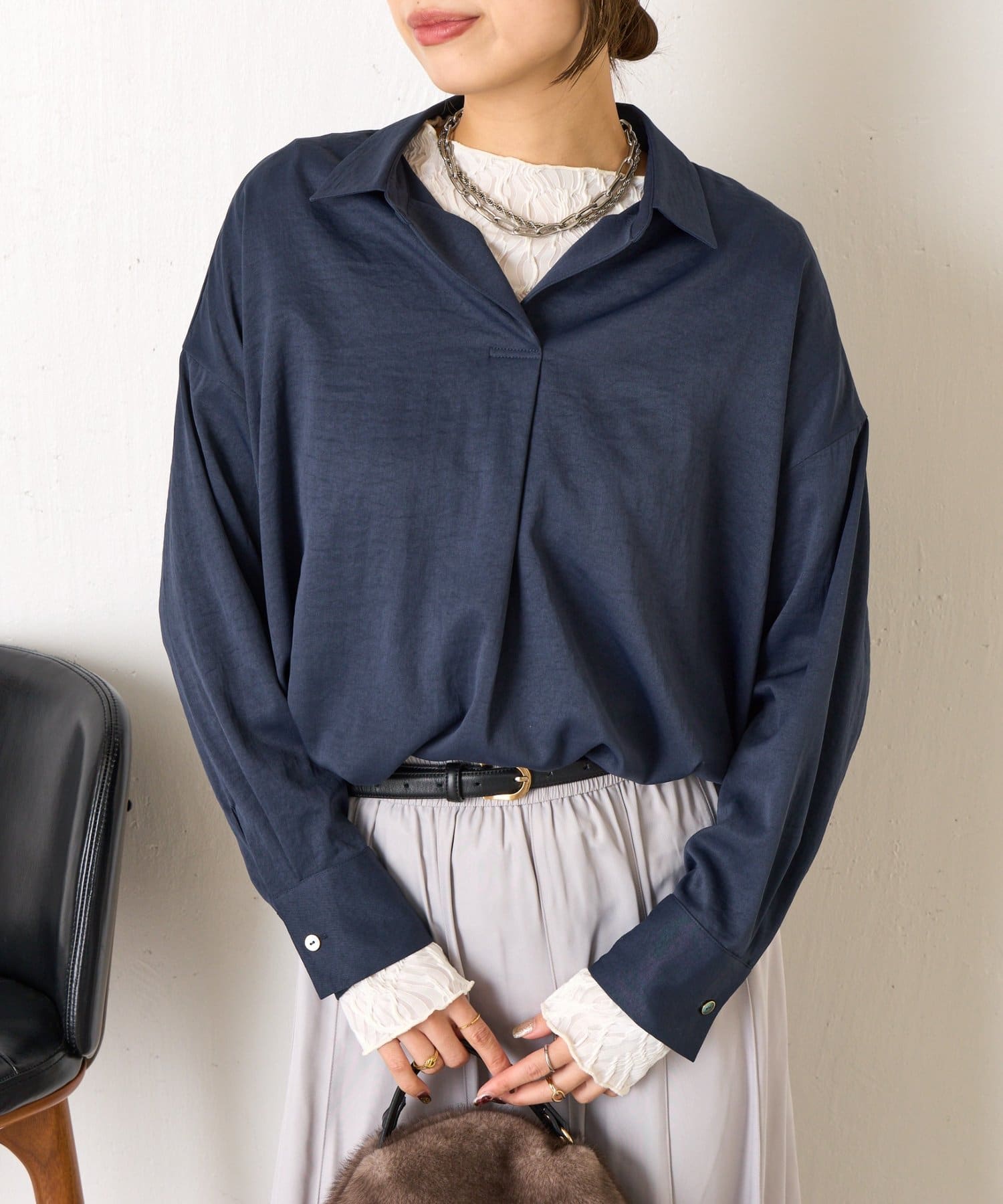 ・スキッパーデザインで女性らしい抜け感のある1着。