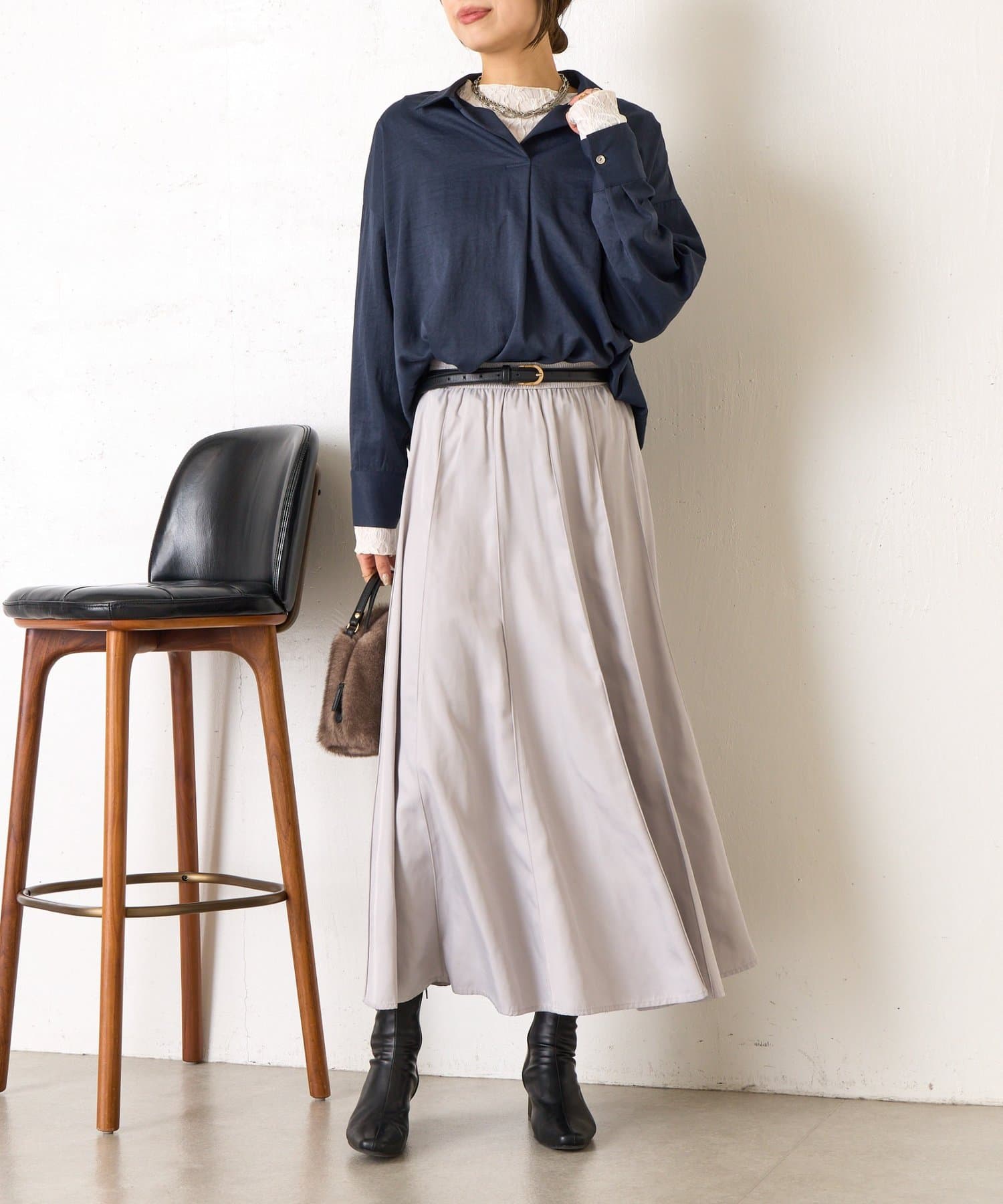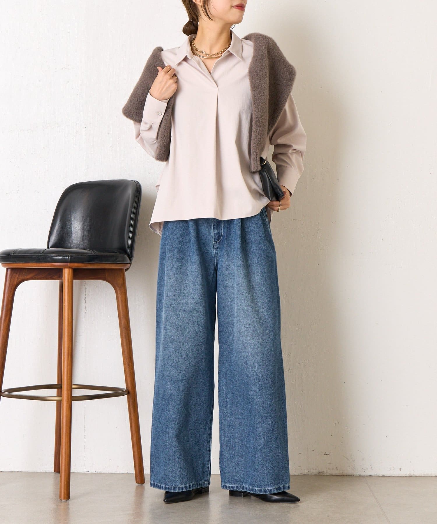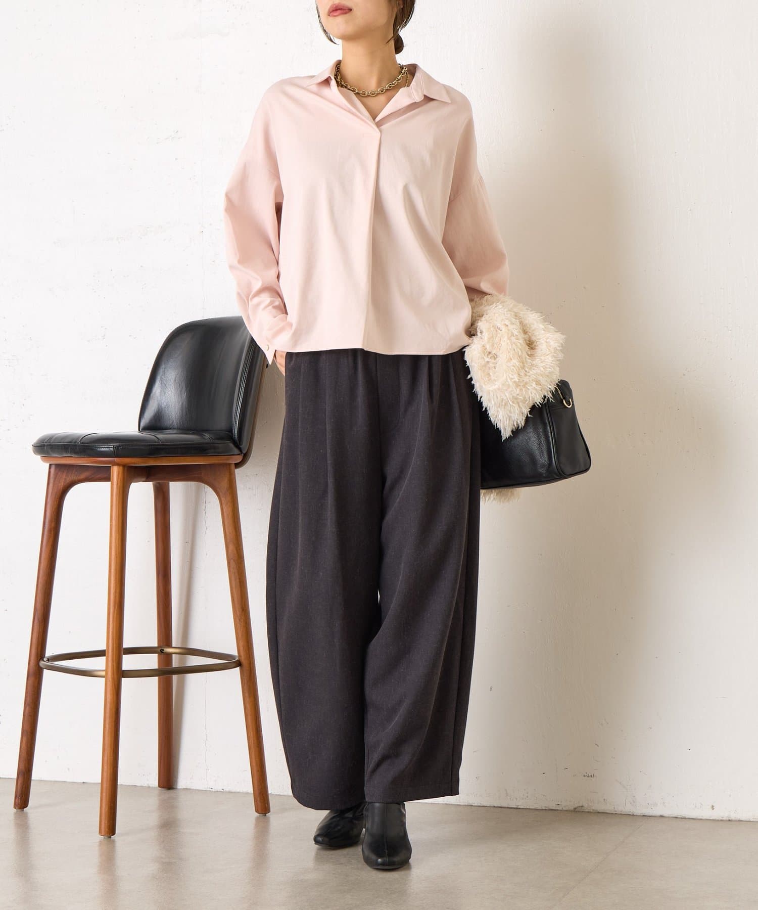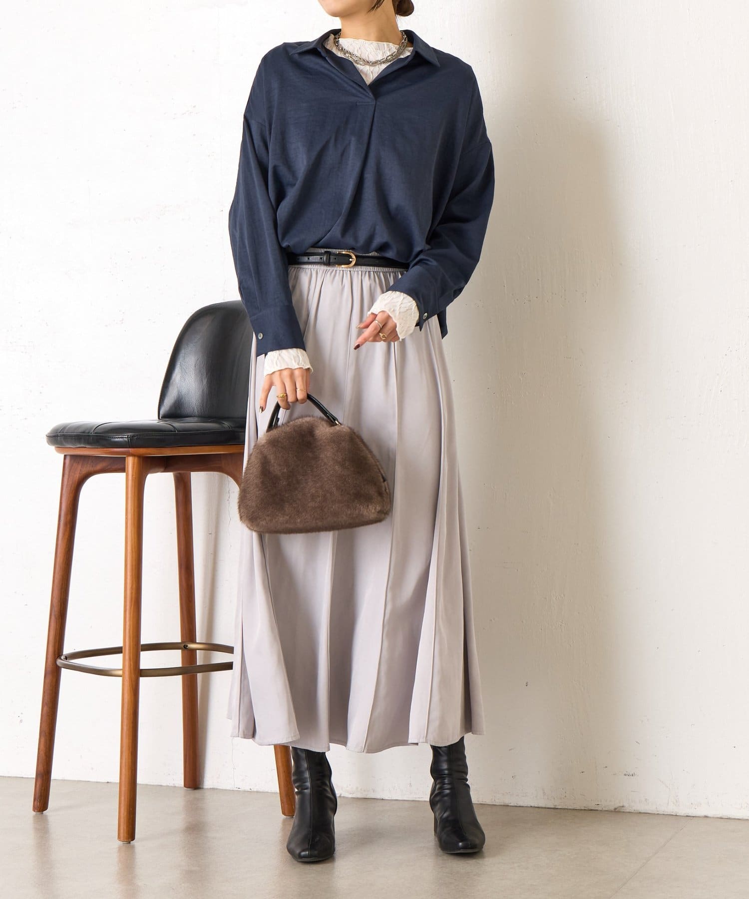 ・スキッパーデザインで女性らしい抜け感のある1着。