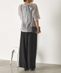 ウエスト位置を+1~2cm高く設定し、ウエストのギャザーで脚長シルエットに。