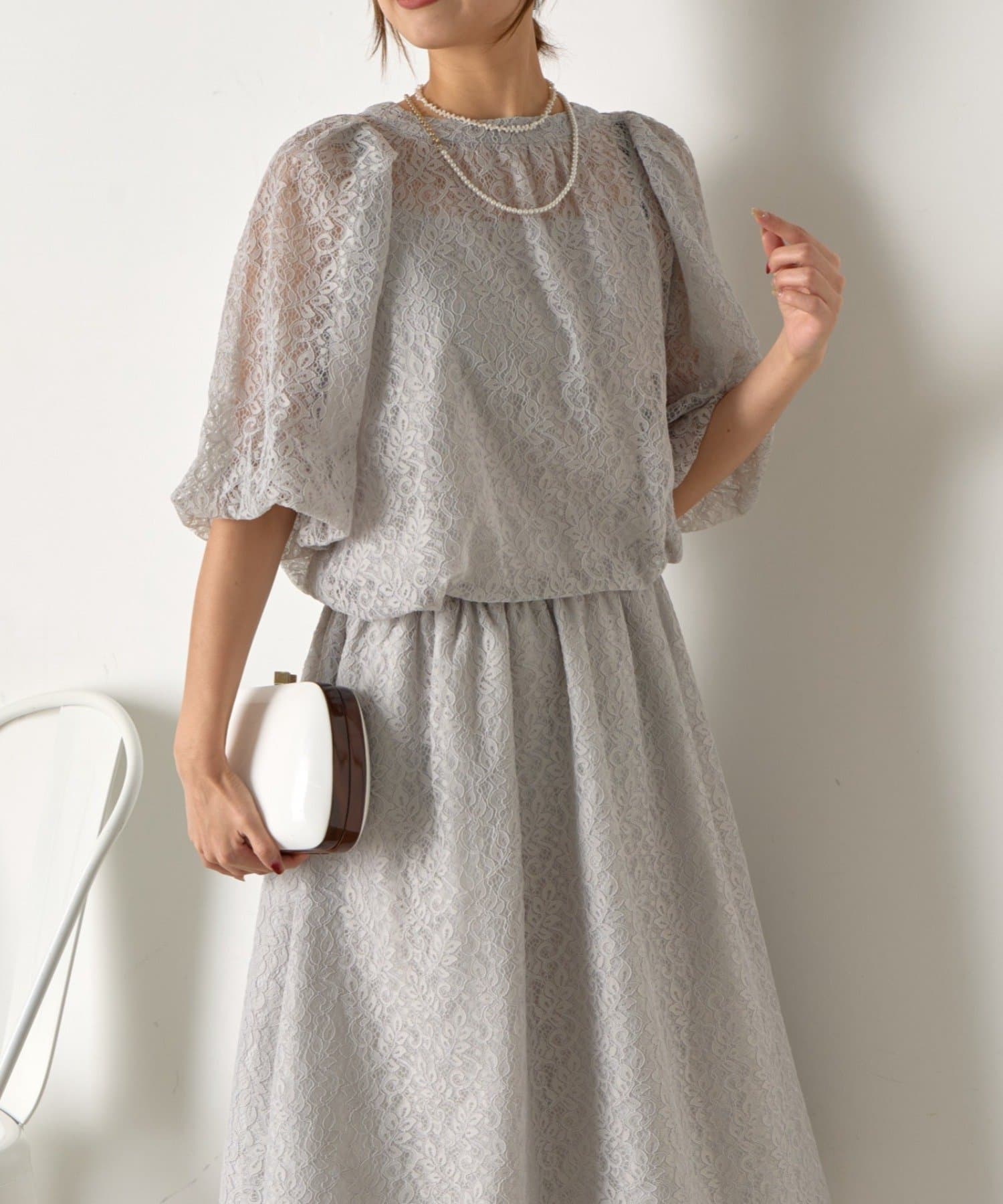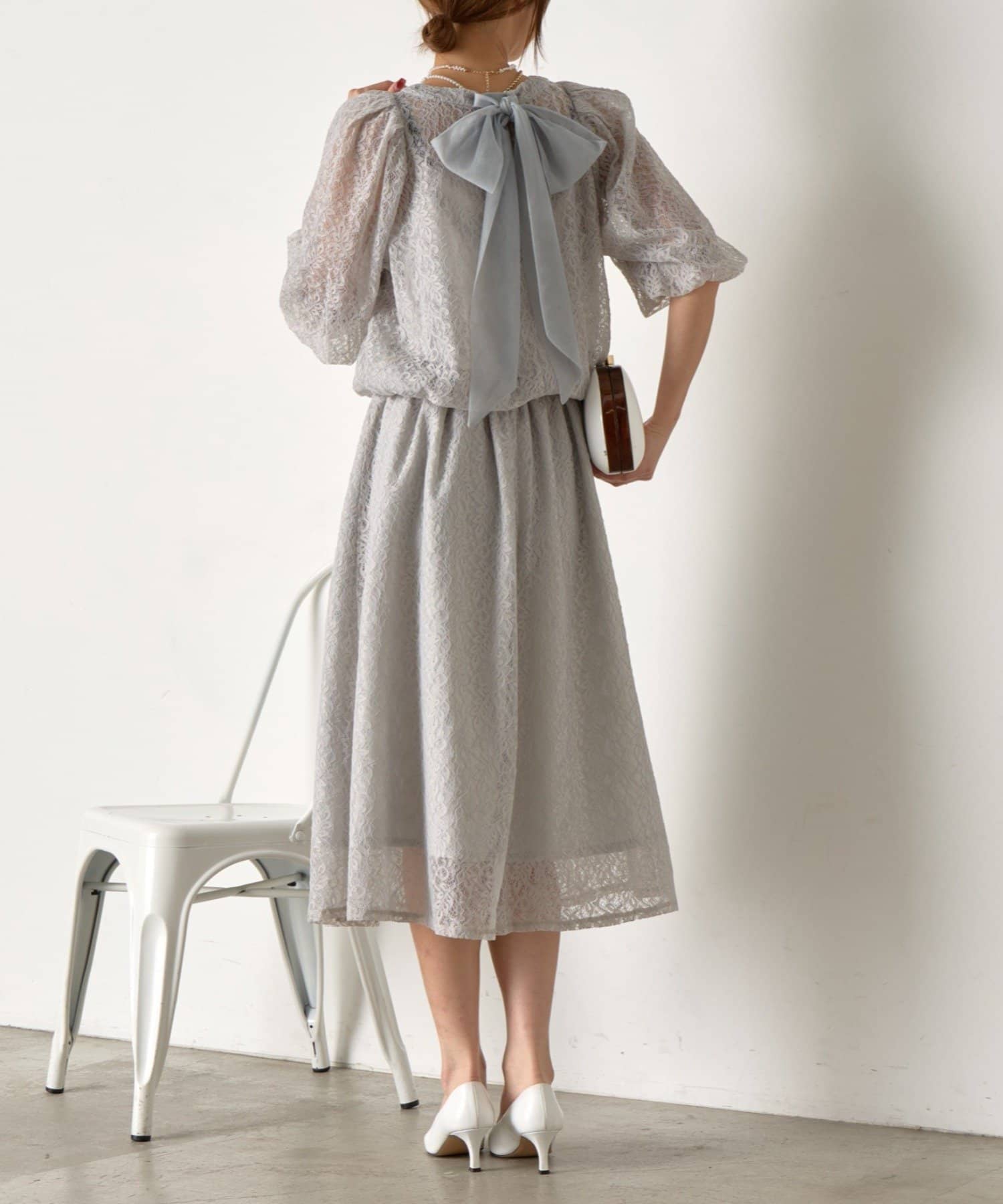 【さわ企画】【WEB限定】レースリボンタイセットアップ