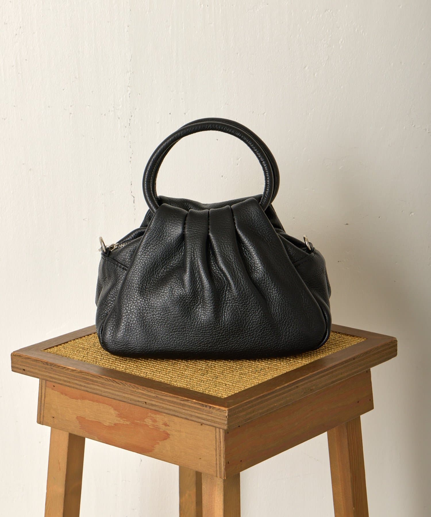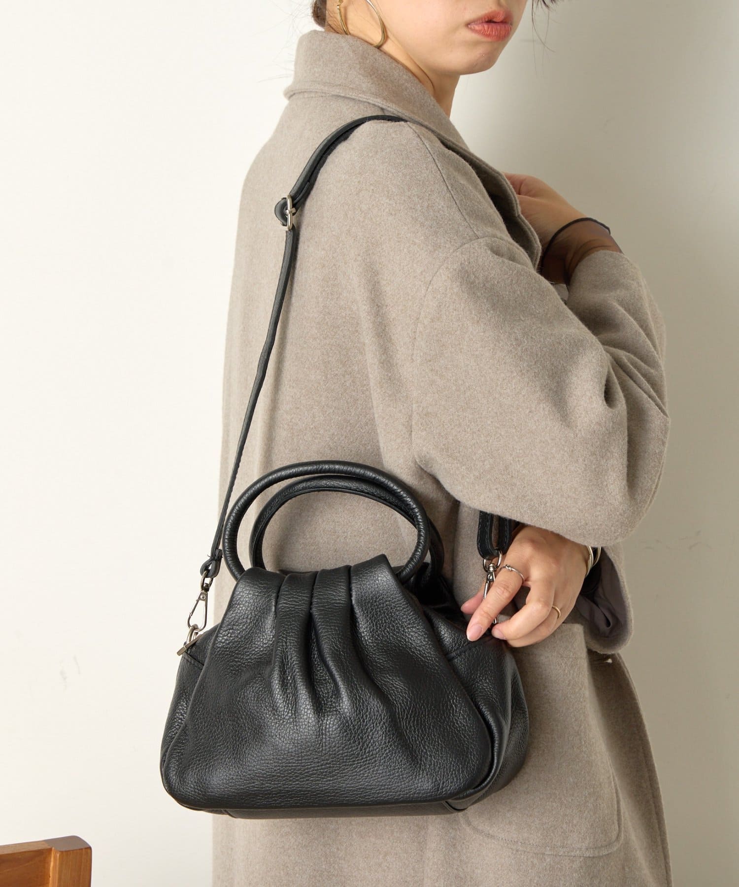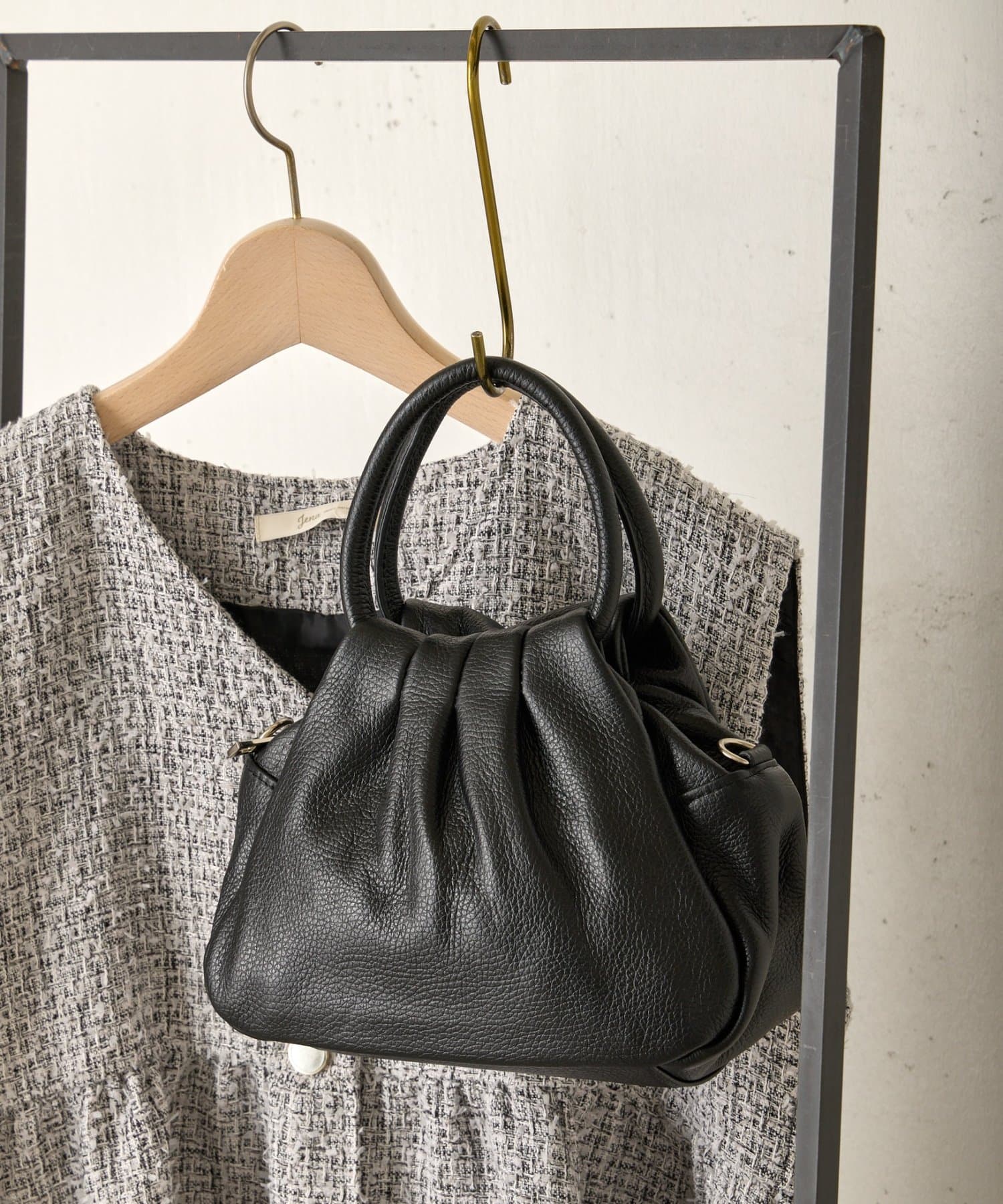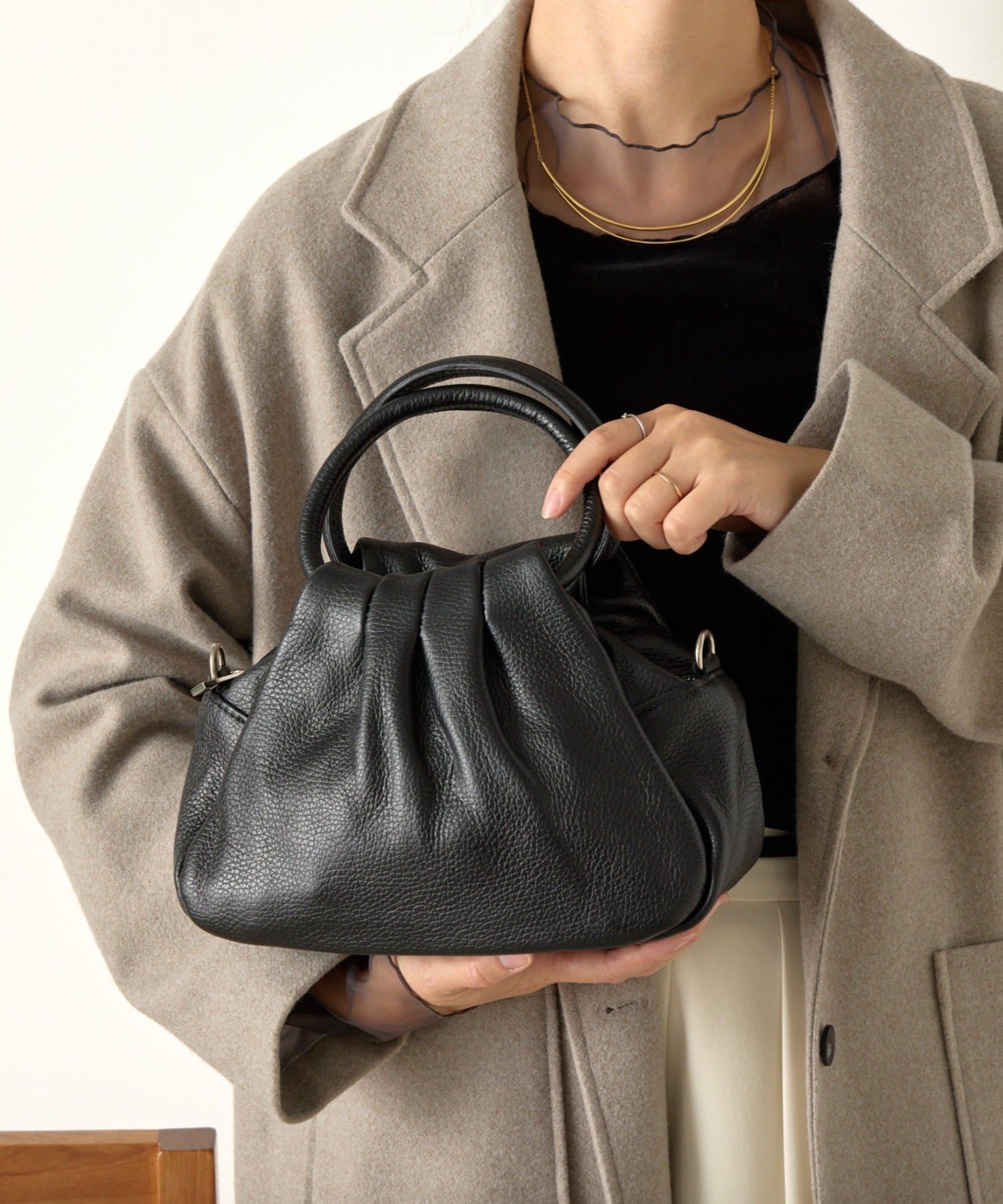 ・コロンと丸いフォルムが程よく甘い、本革素材の大人の品格漂うハンドバッグ。