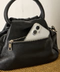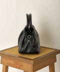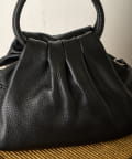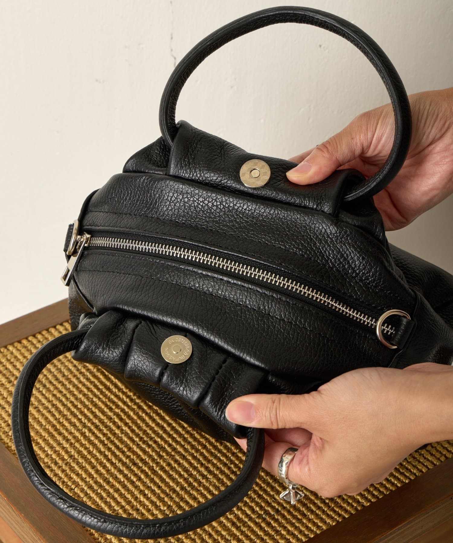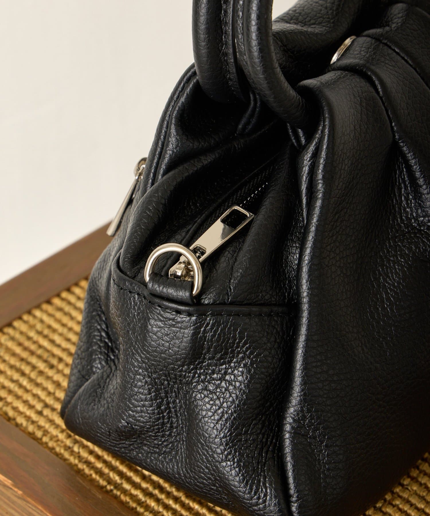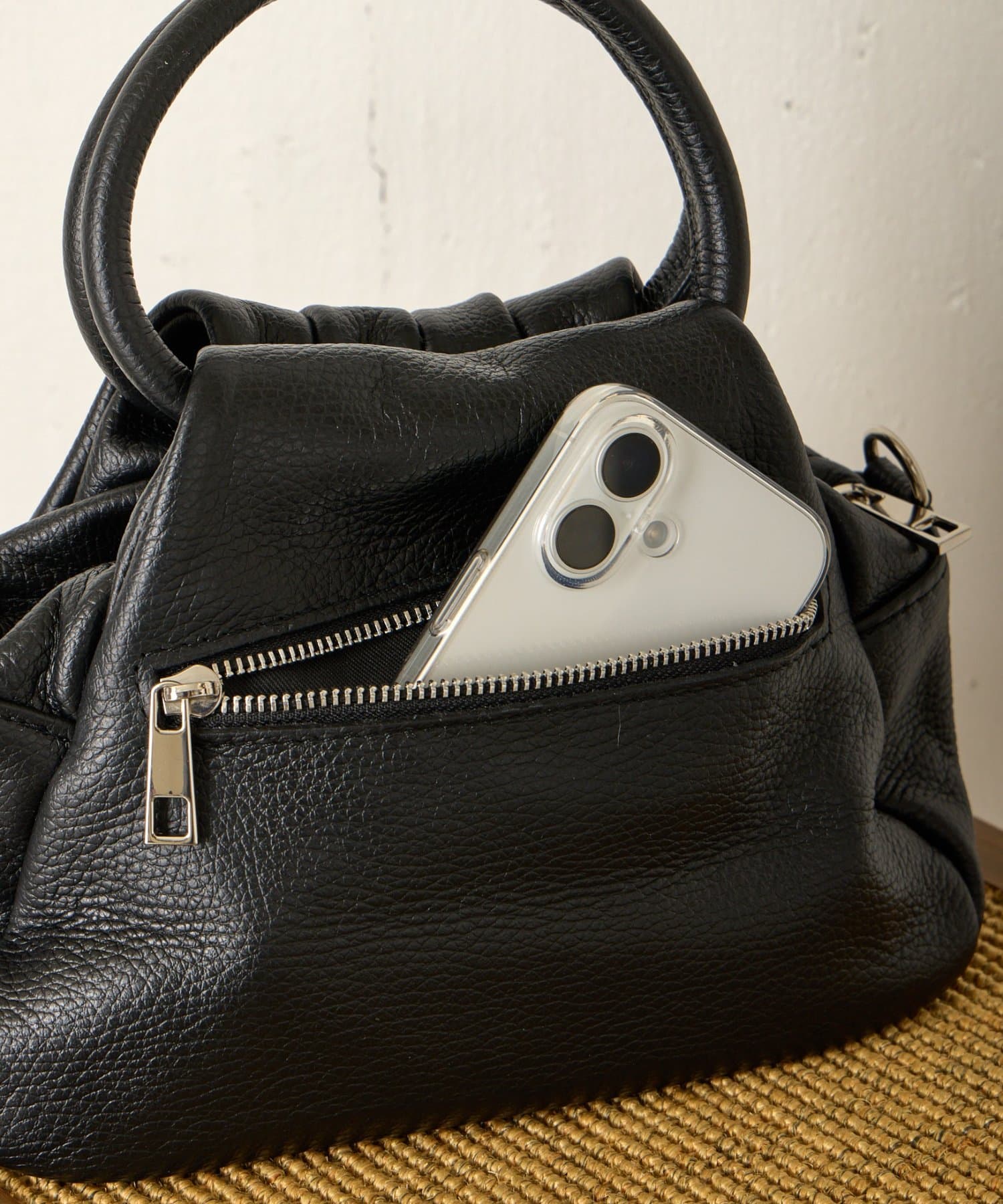 ・コロンと丸いフォルムが程よく甘い、本革素材の大人の品格漂うハンドバッグ。