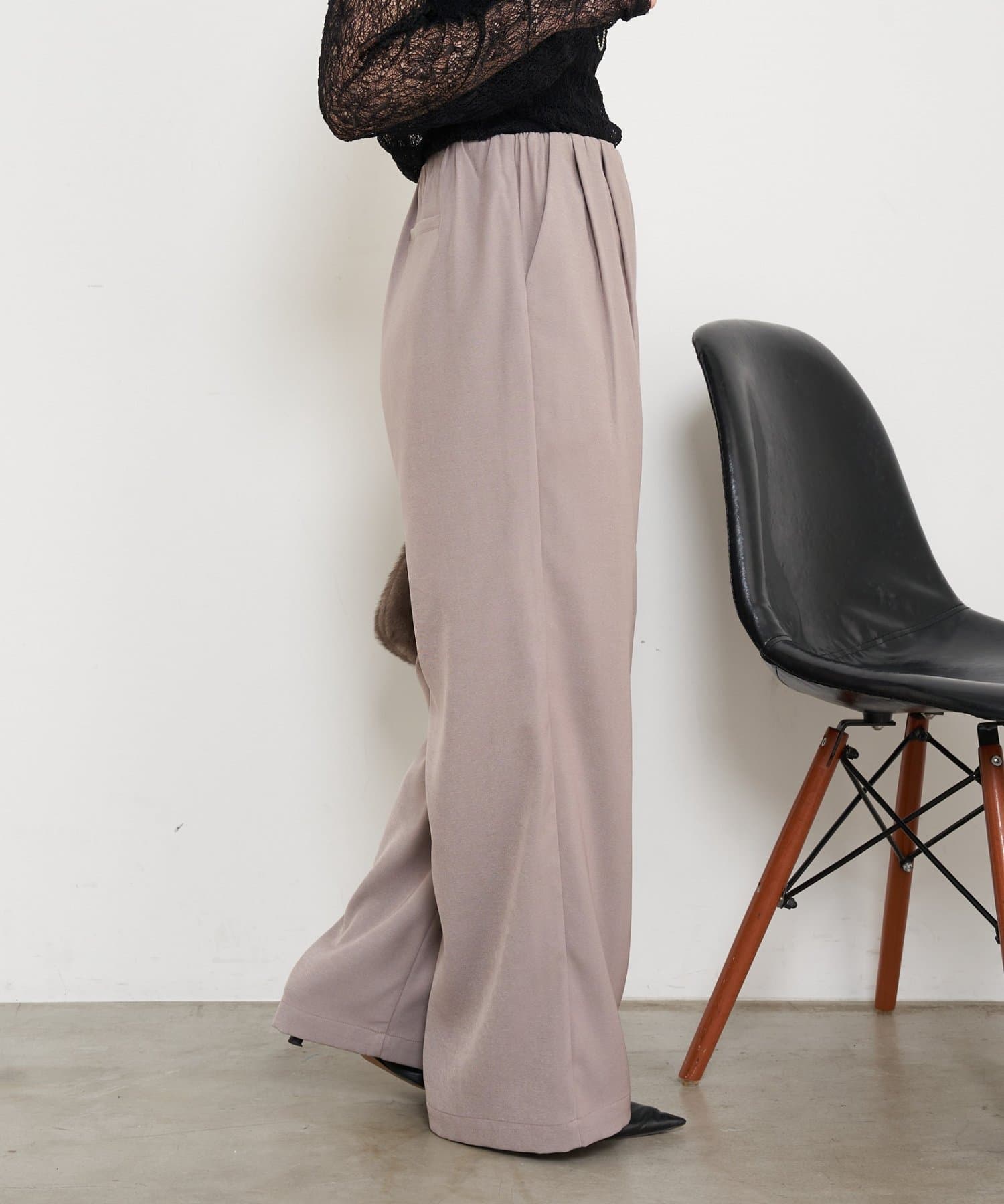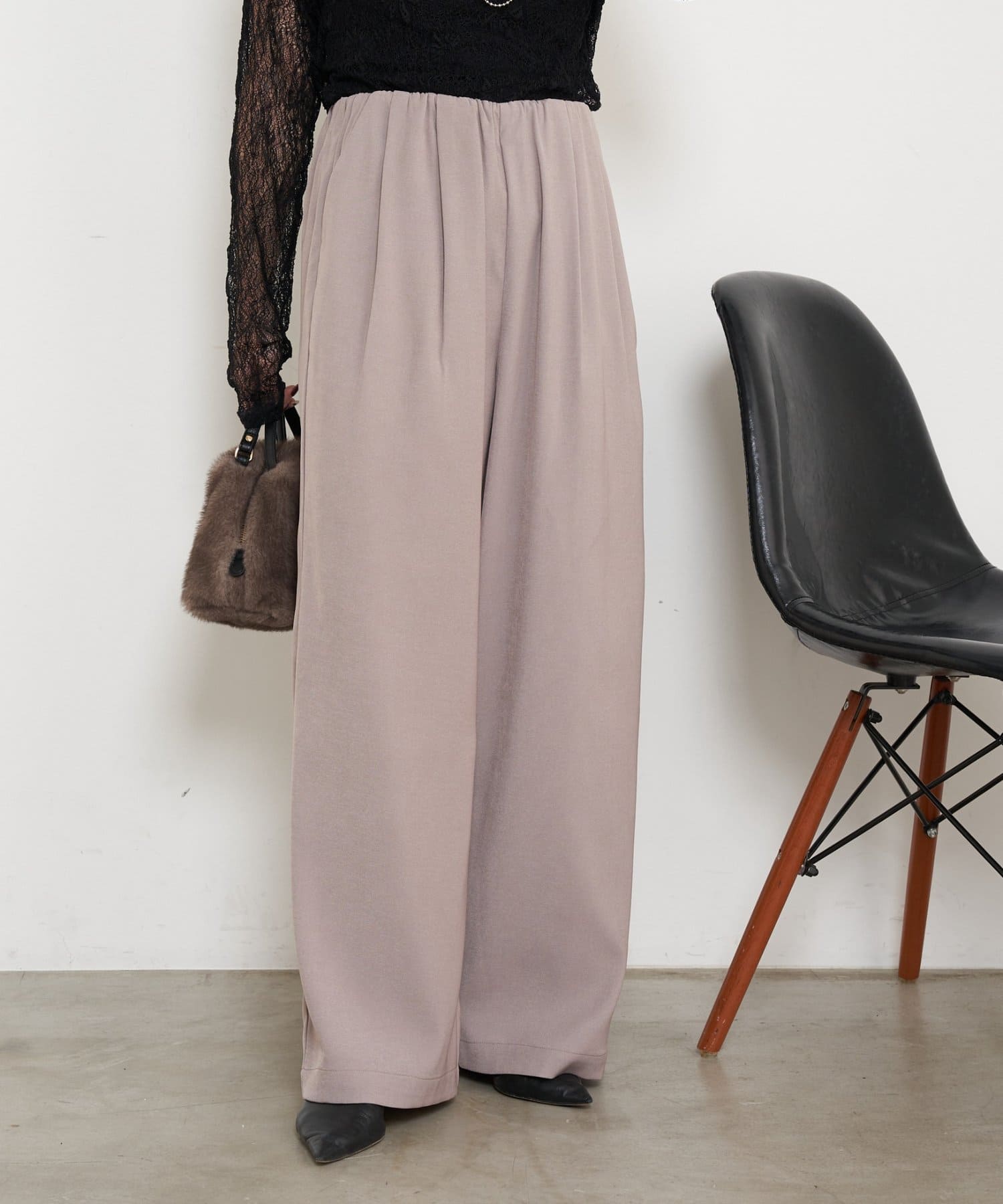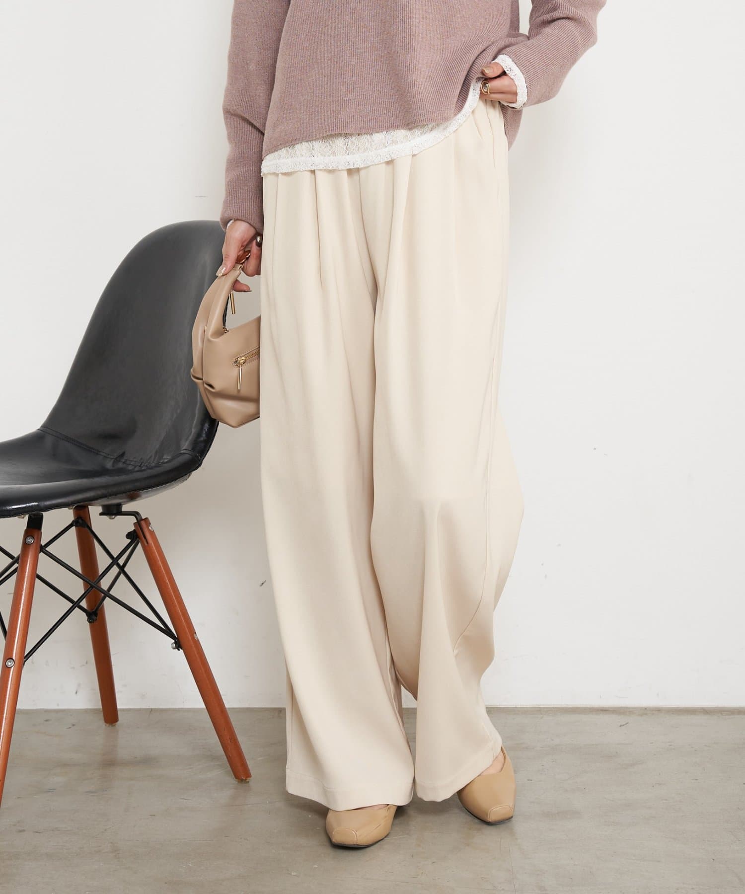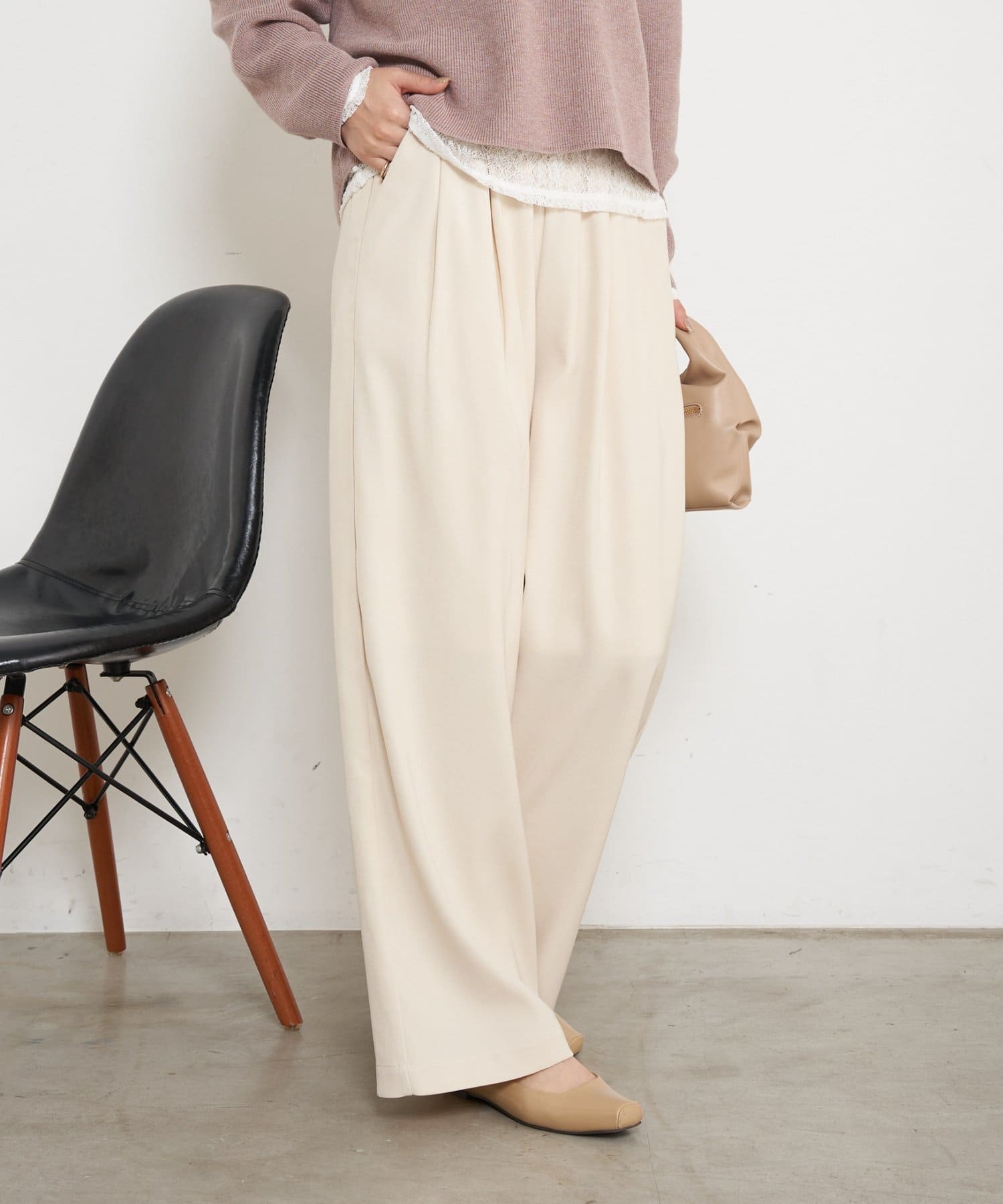 【ゆるっと美シルエット】ウエストギャザーワイドパンツ