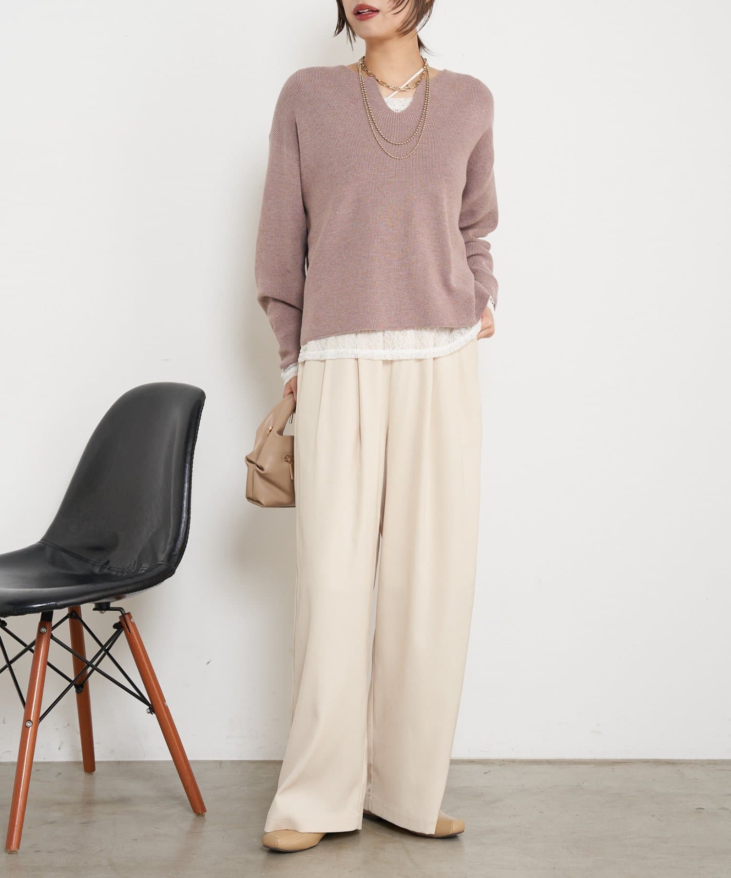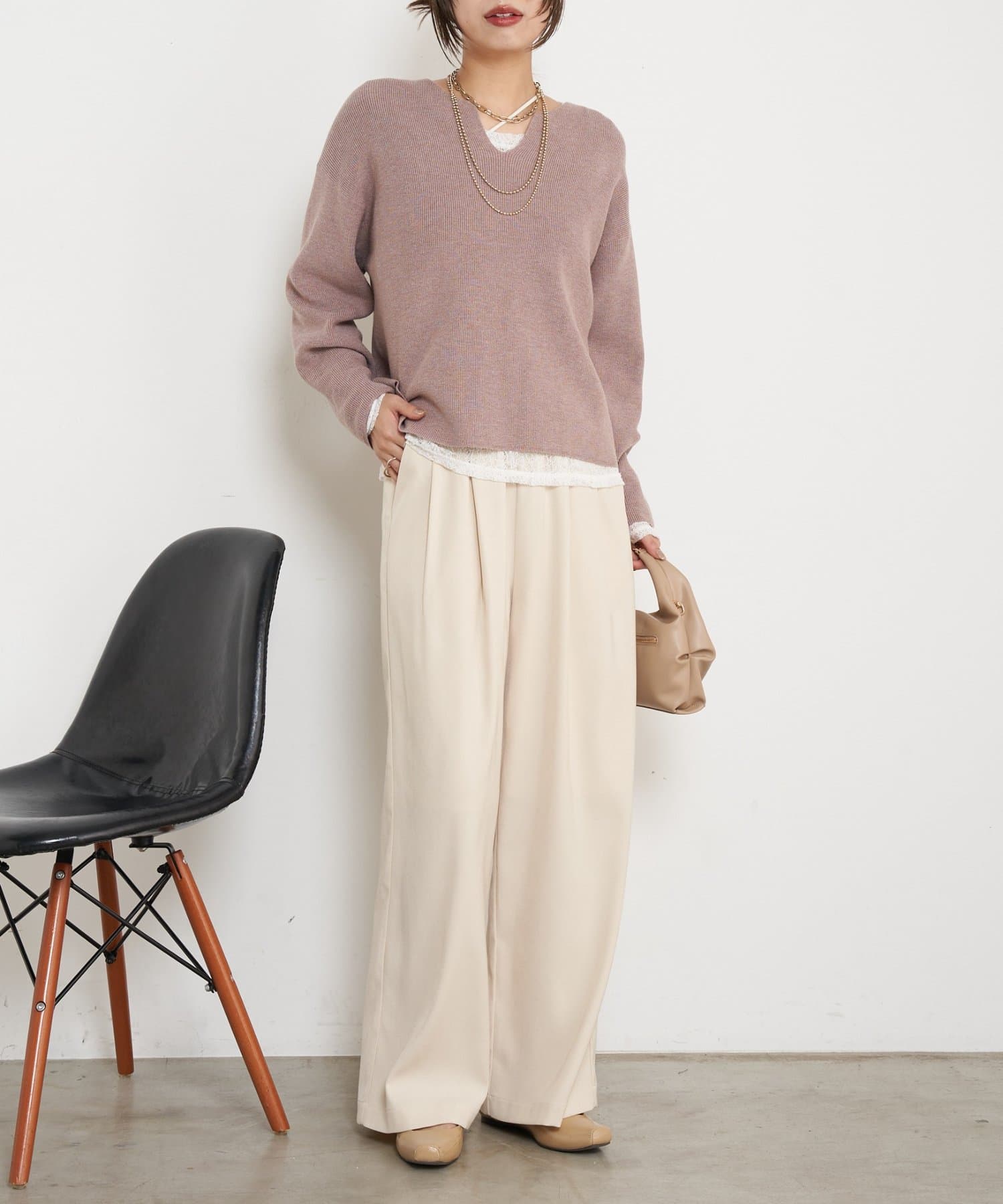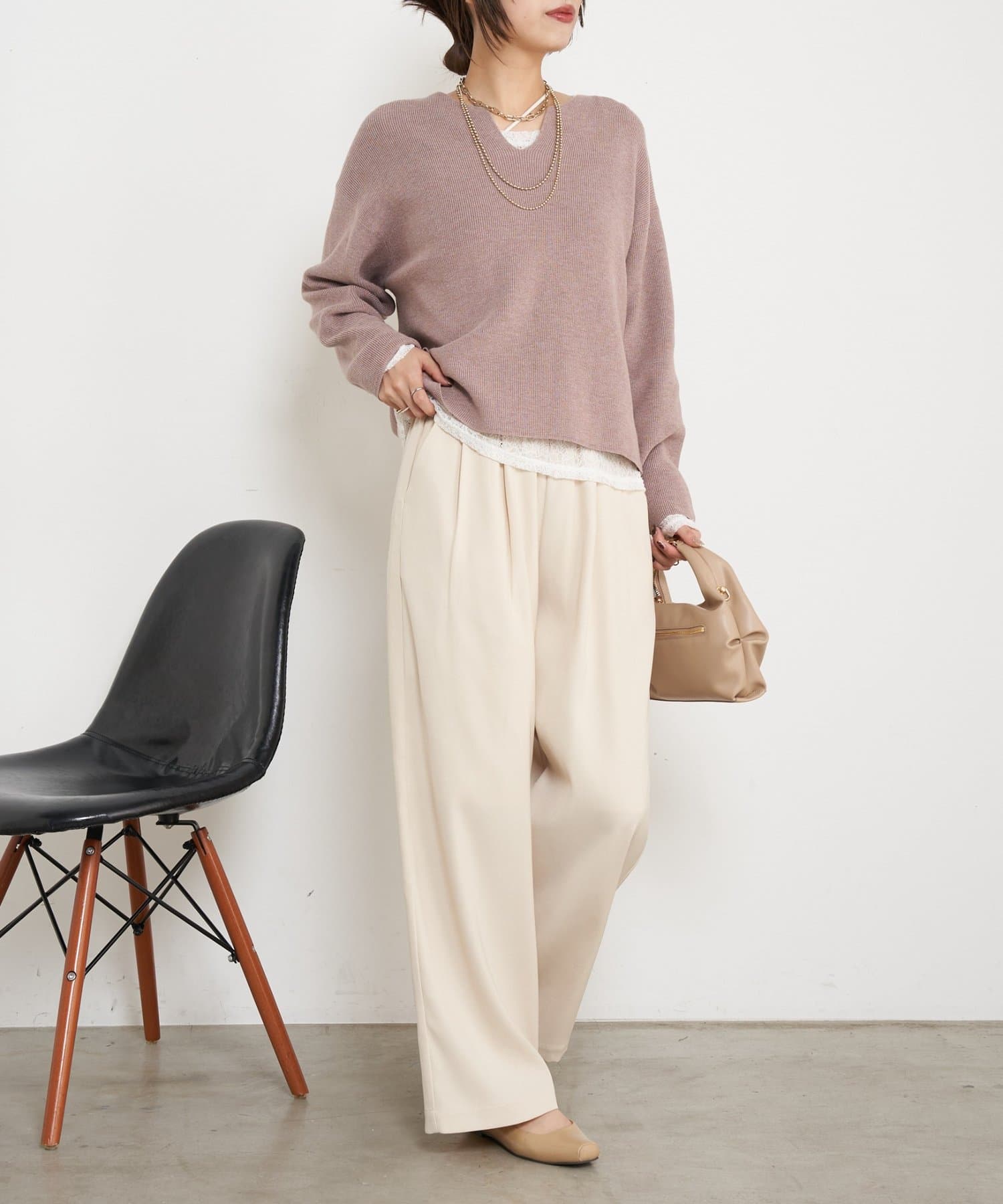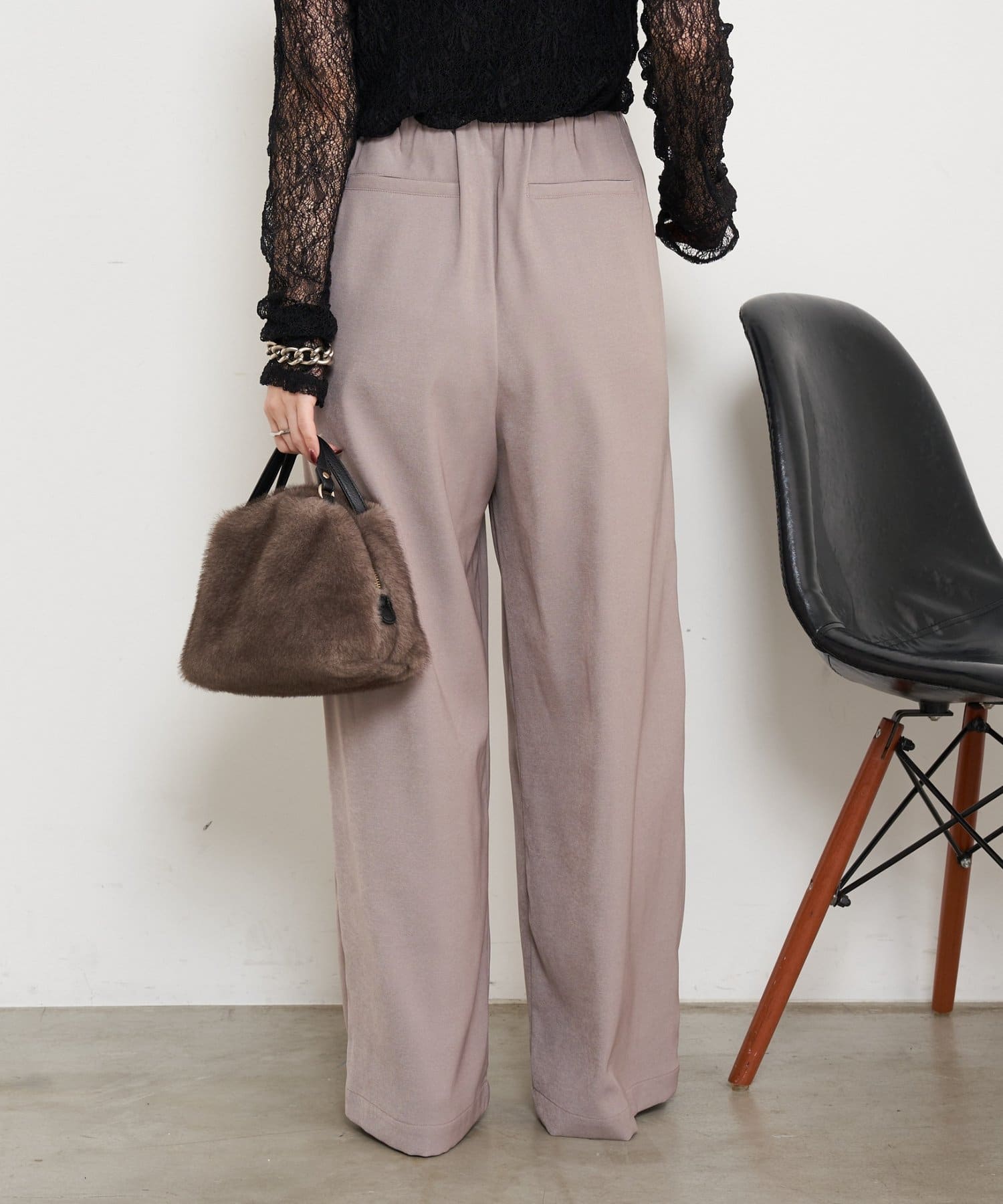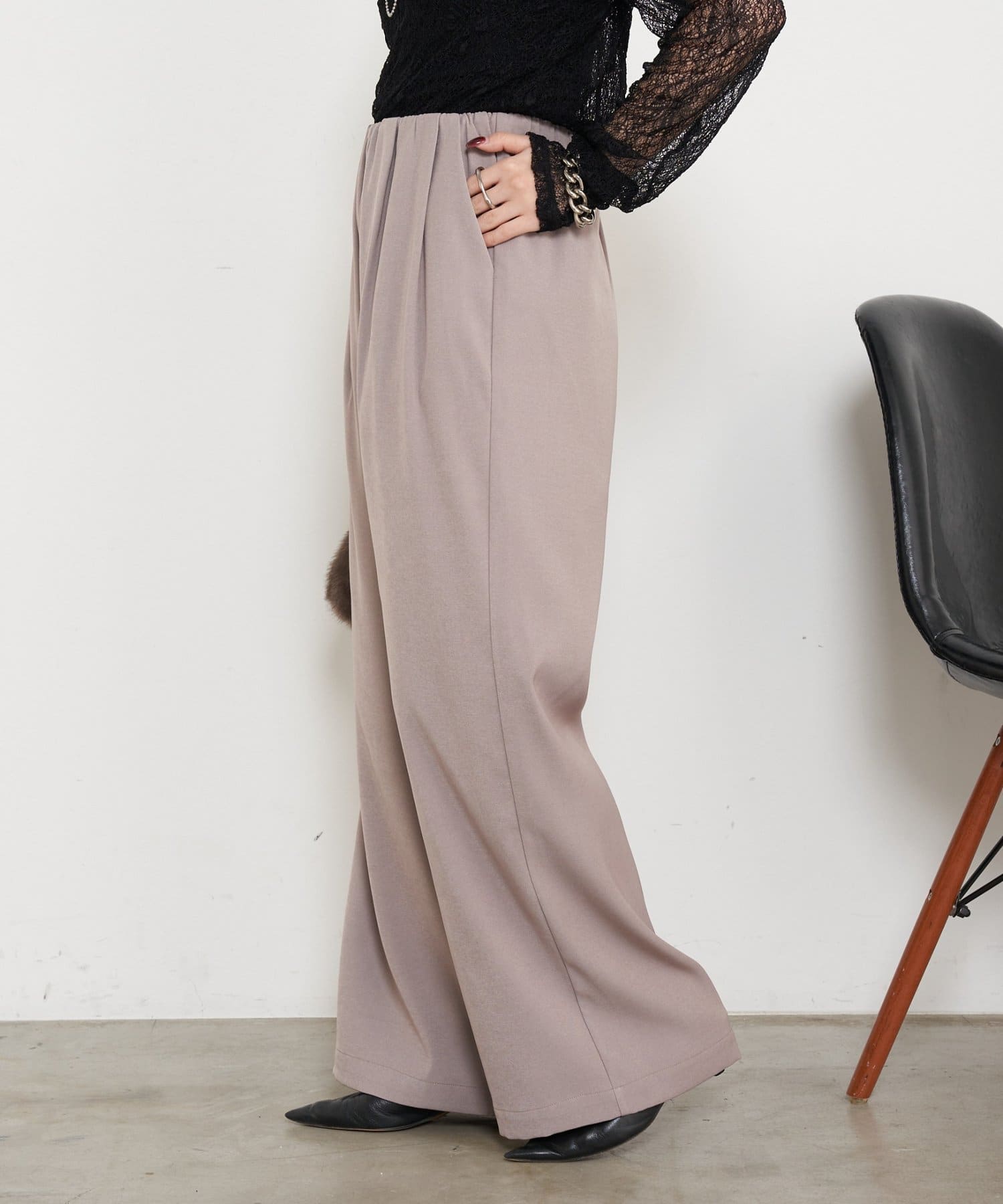 【ゆるっと美シルエット】ウエストギャザーワイドパンツ