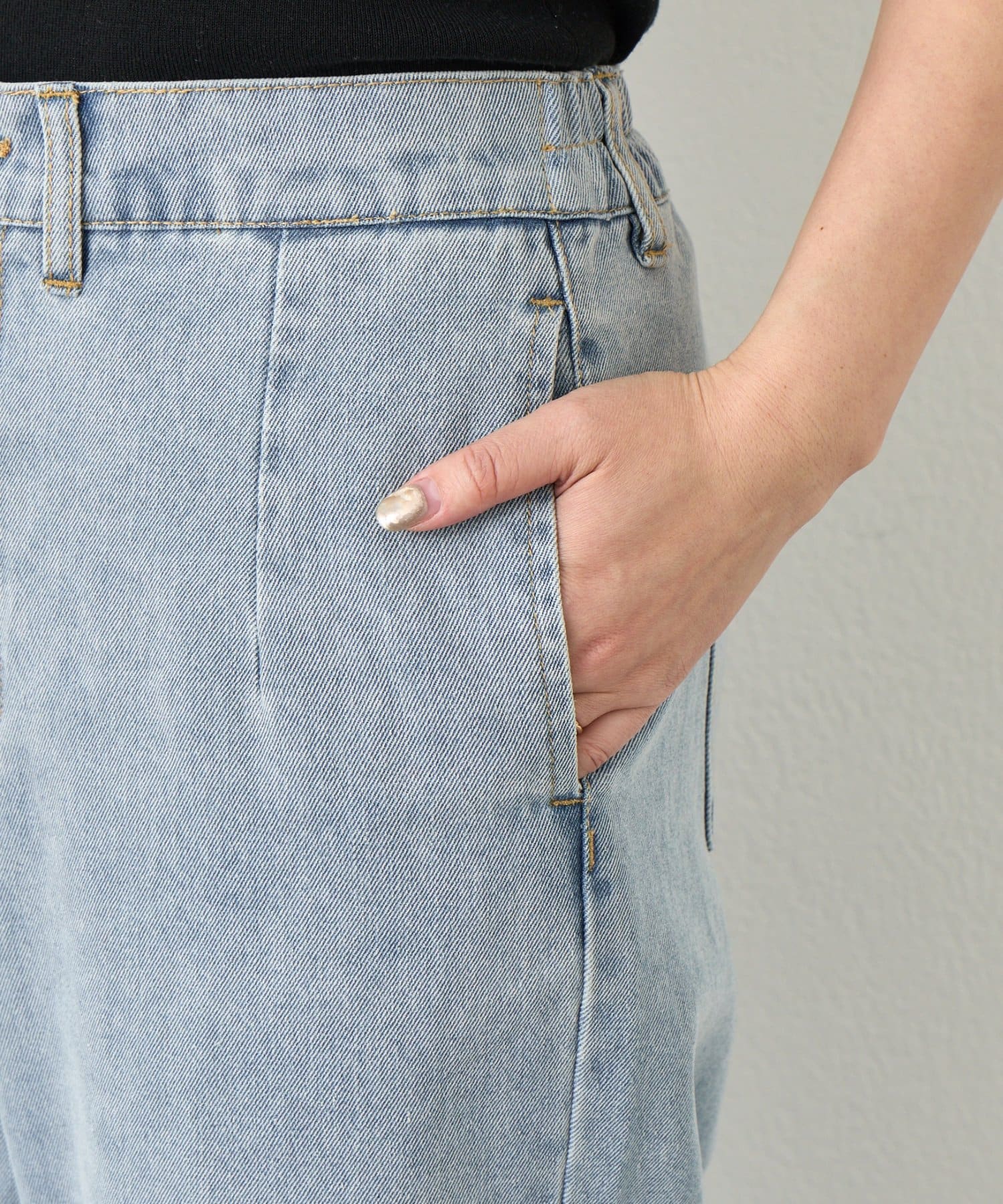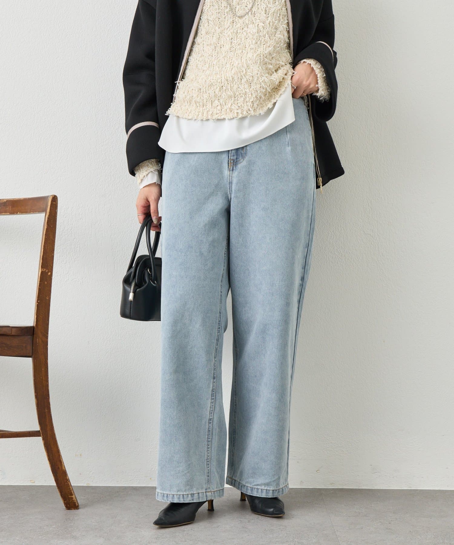 ・厚すぎない軽やかなデニム素材で、季節を問わず着まわせる一着です。