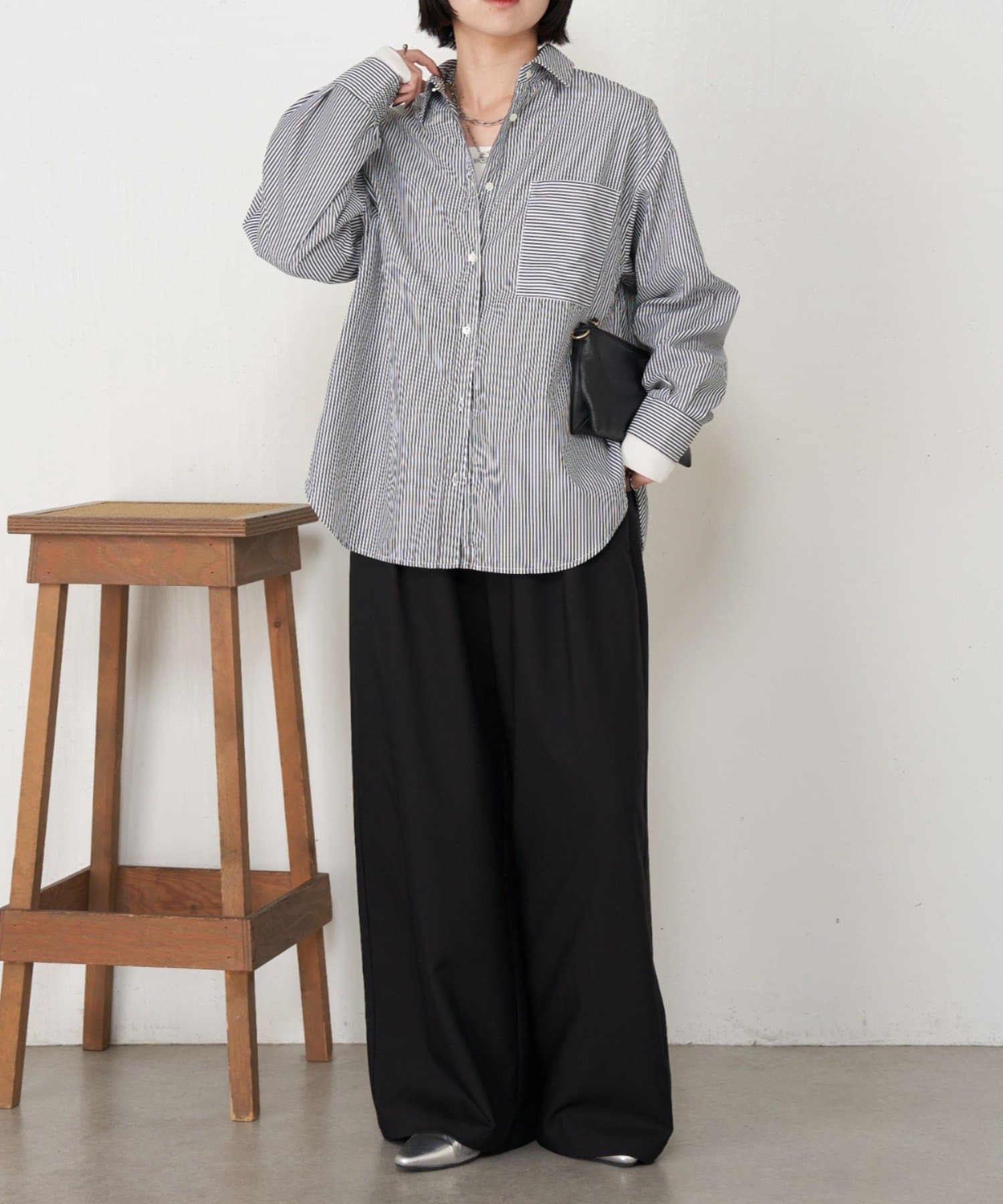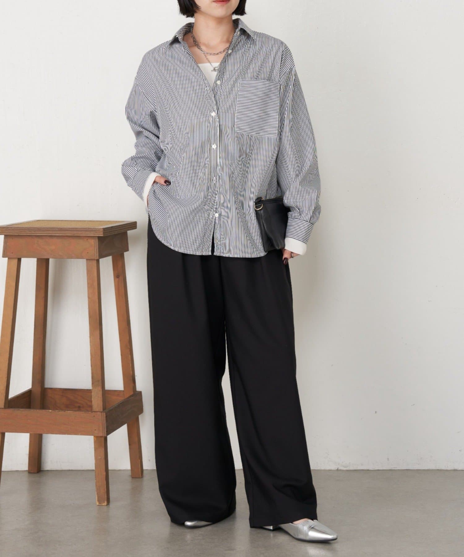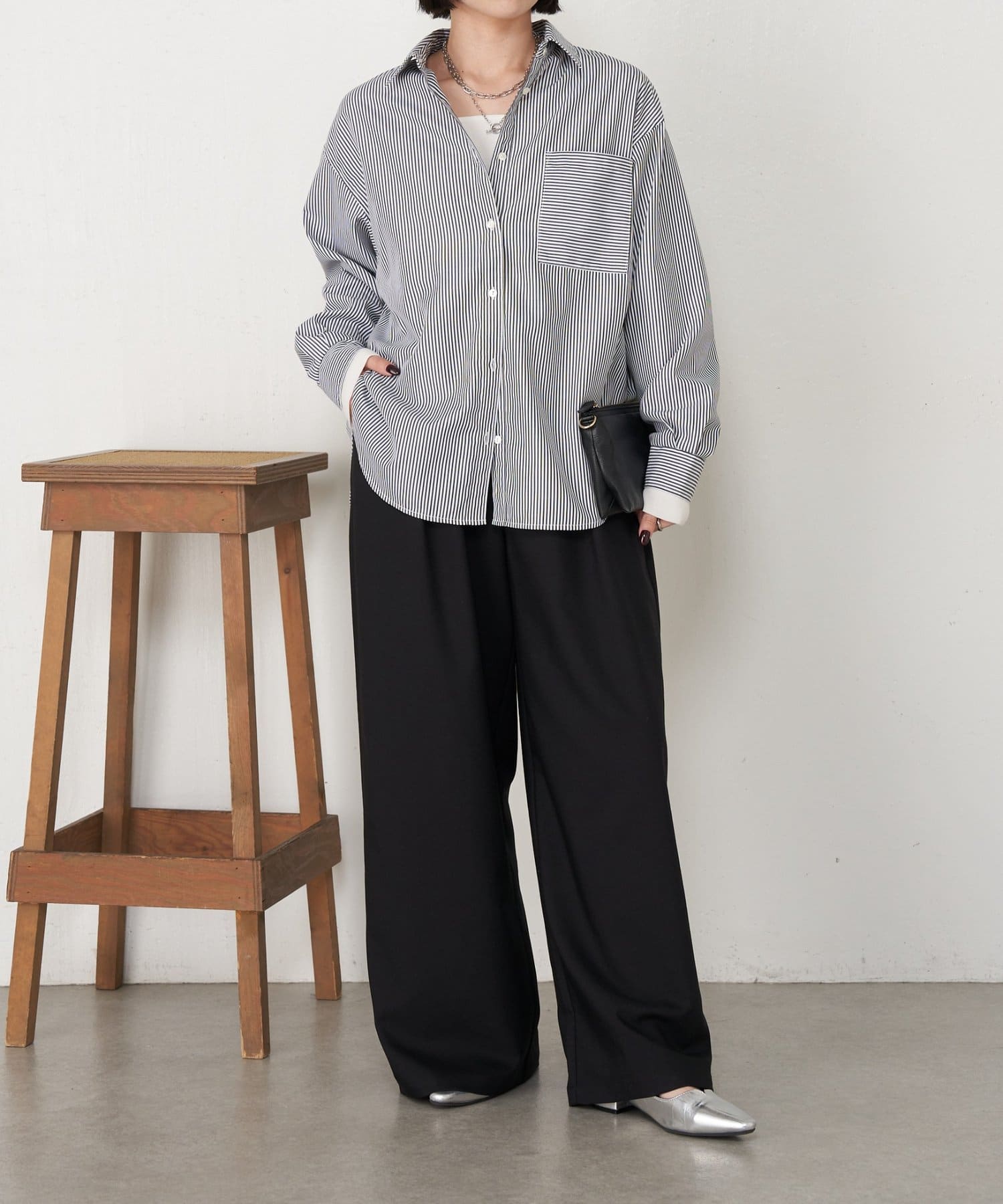 ・「ストライプ柄×ゆったりシルエット」が1枚で主役になり印象をぐっと引き上げます。