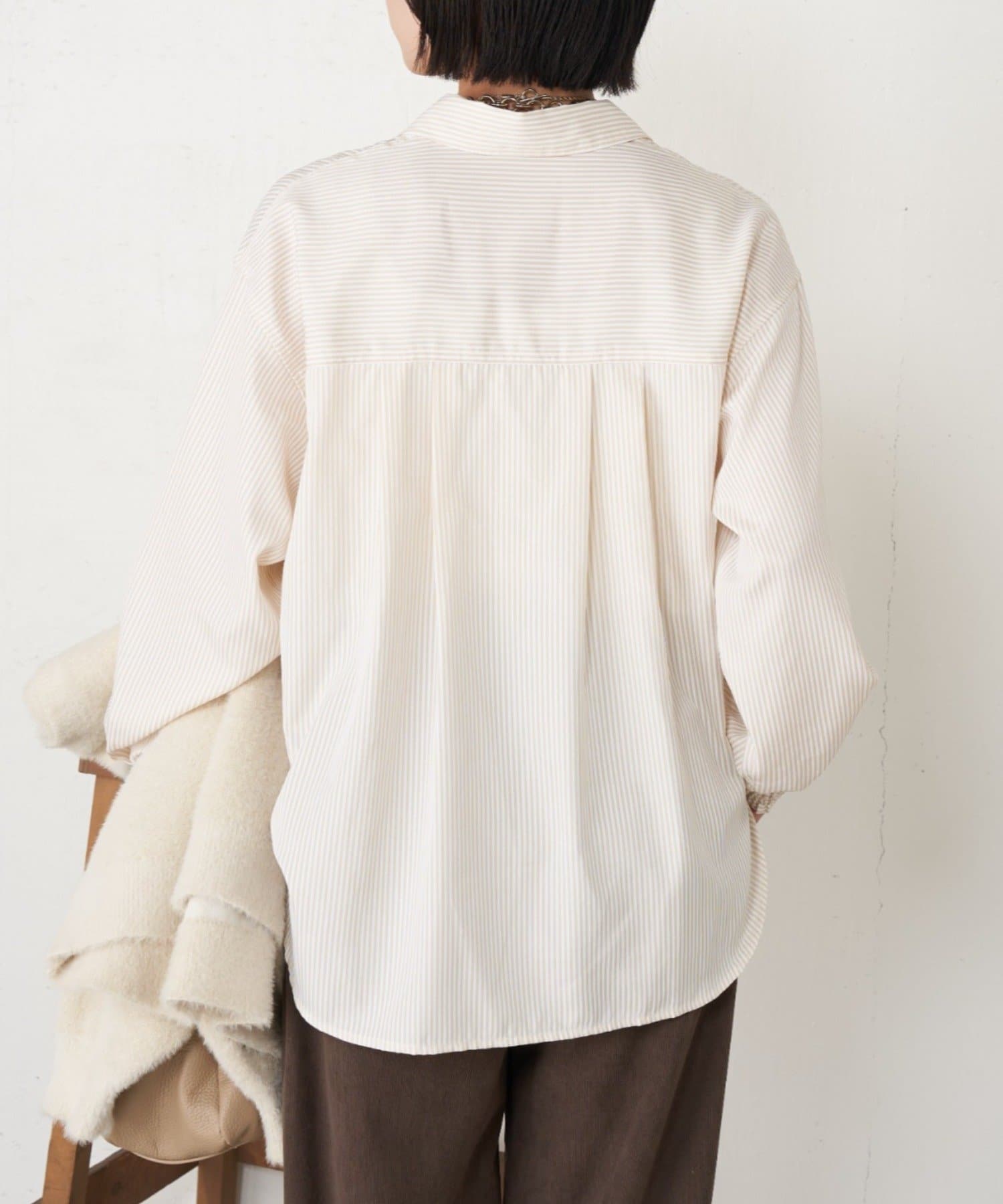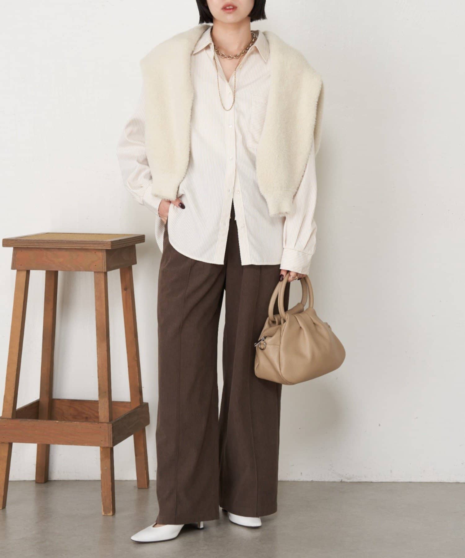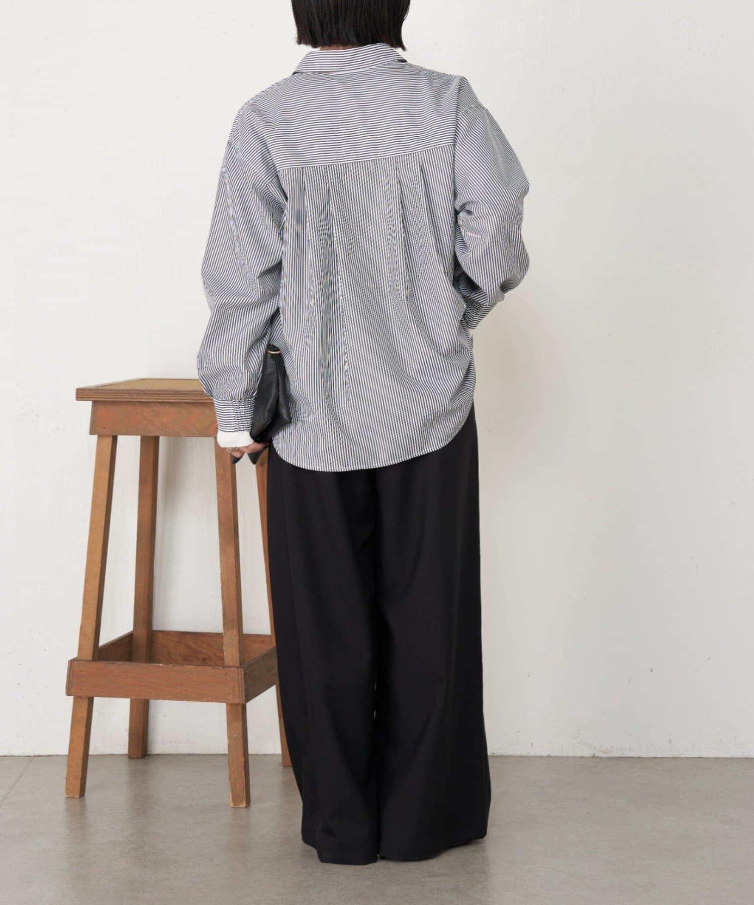 ・「ストライプ柄×ゆったりシルエット」が1枚で主役になり印象をぐっと引き上げます。