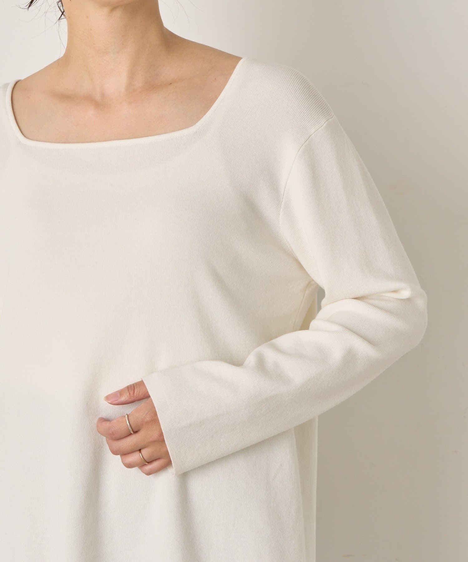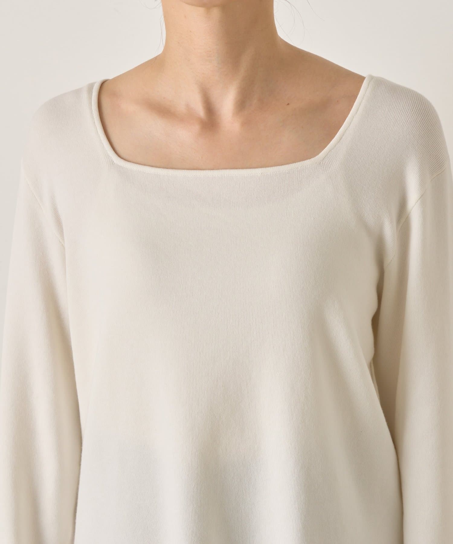 ・ロングシーズン活躍するスクエアネックのニットトップス。
