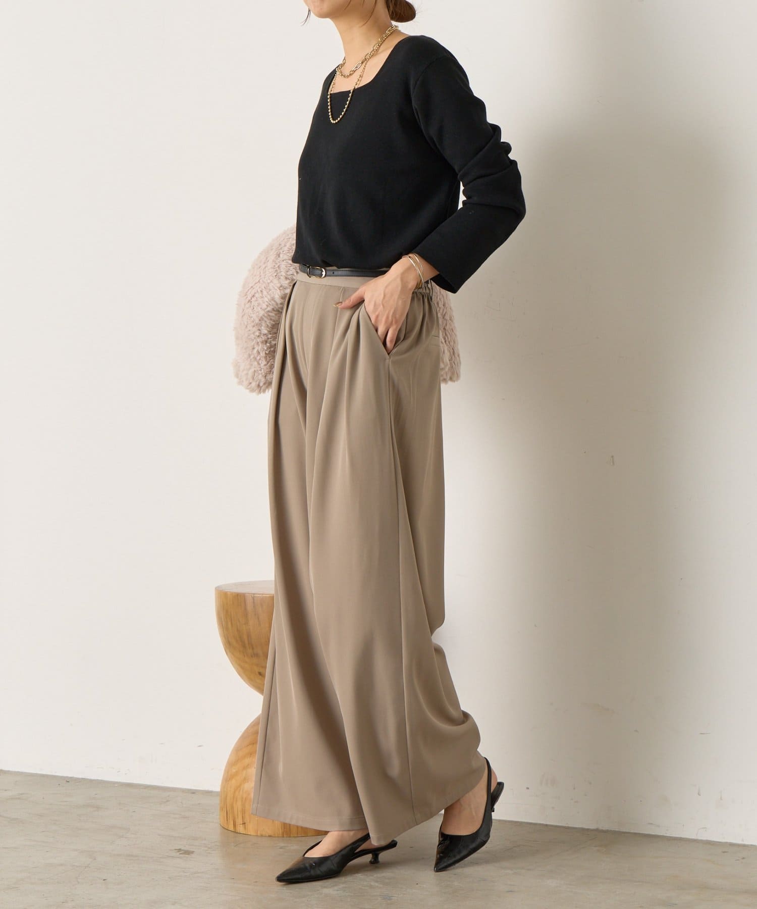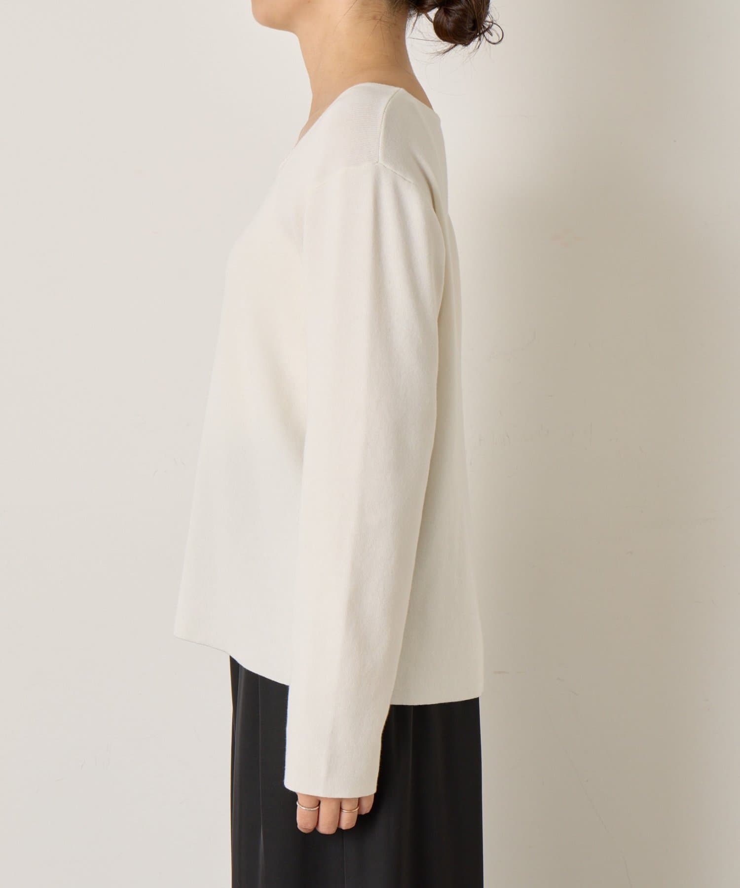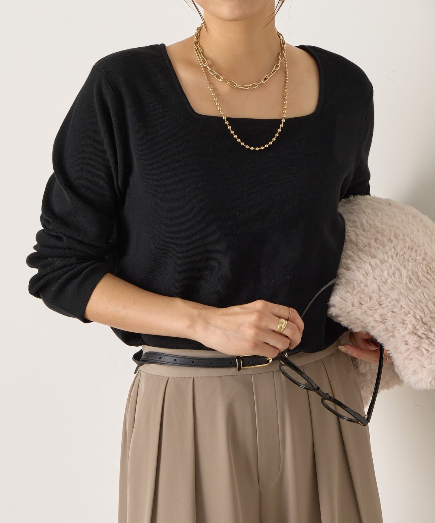 ・ロングシーズン活躍するスクエアネックのニットトップス。
