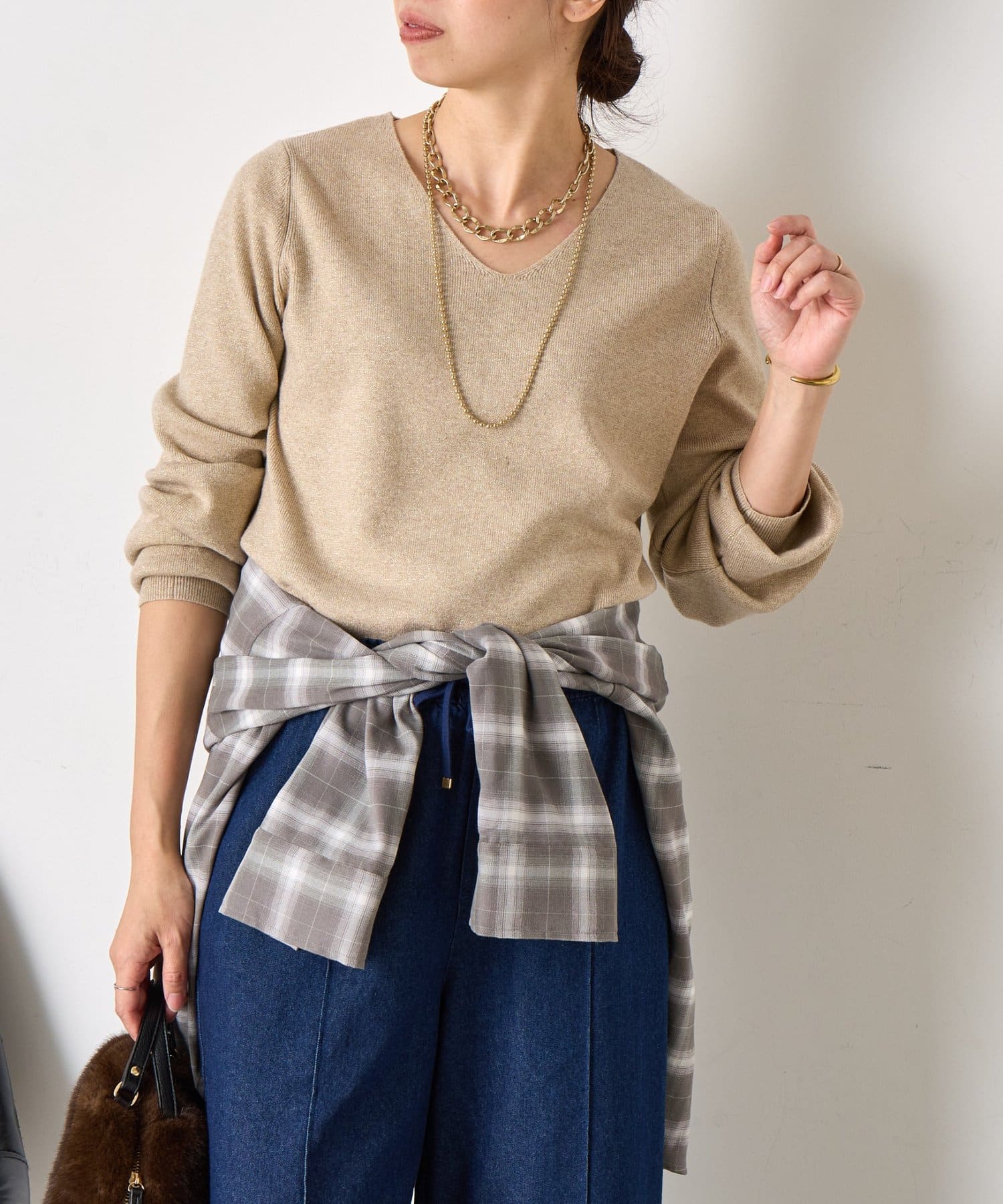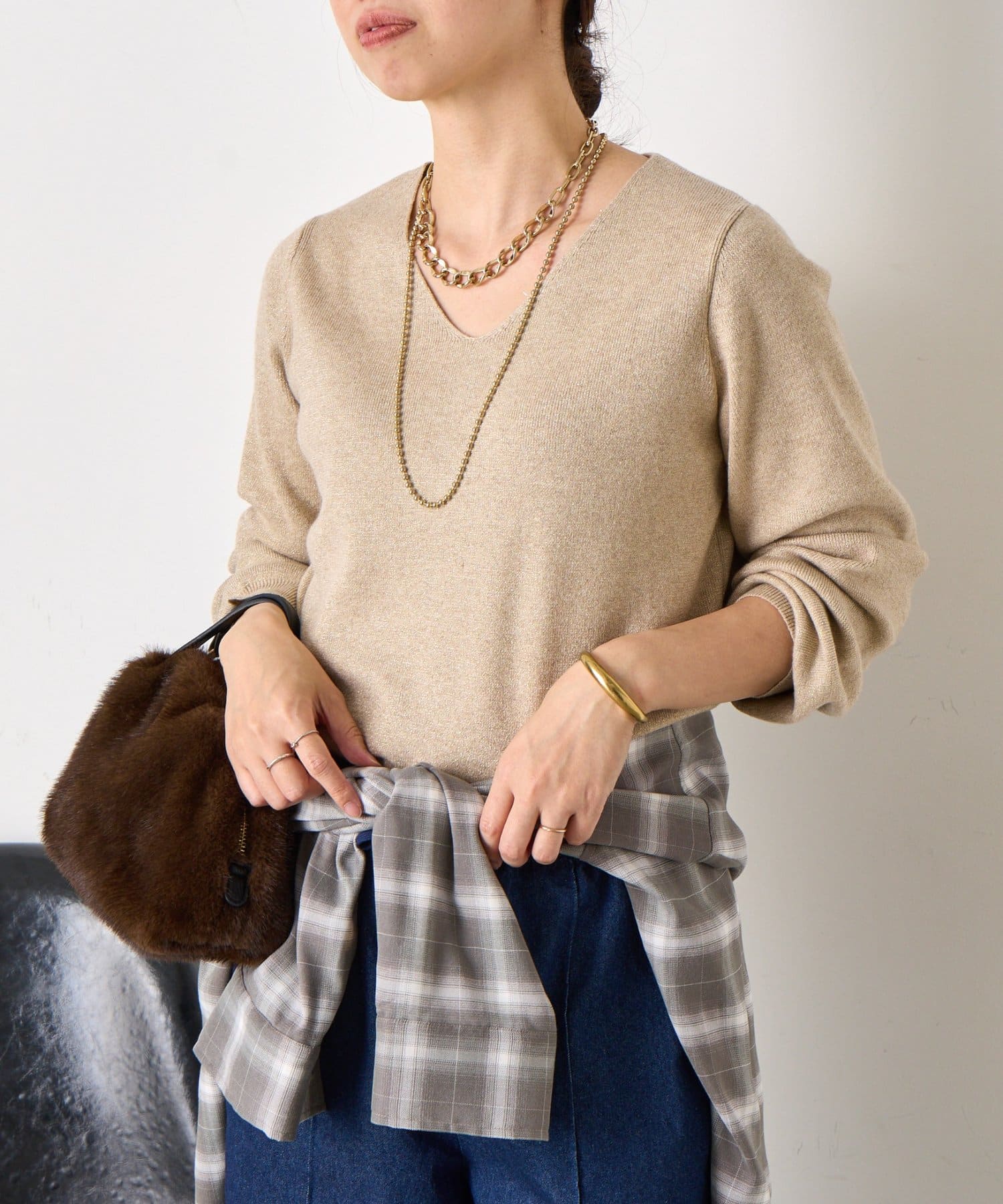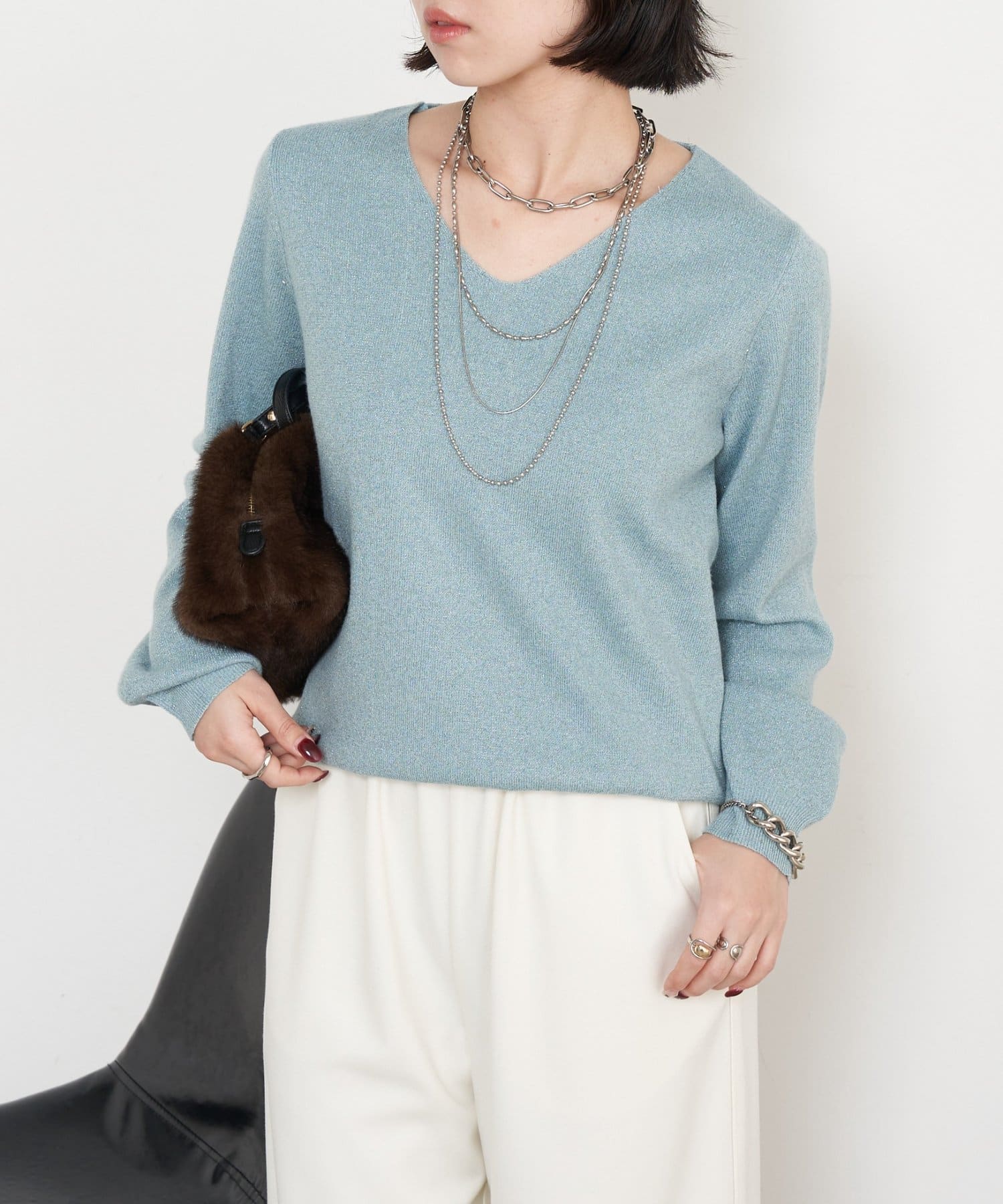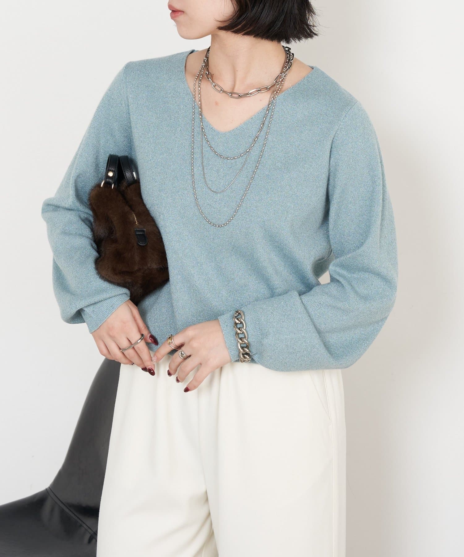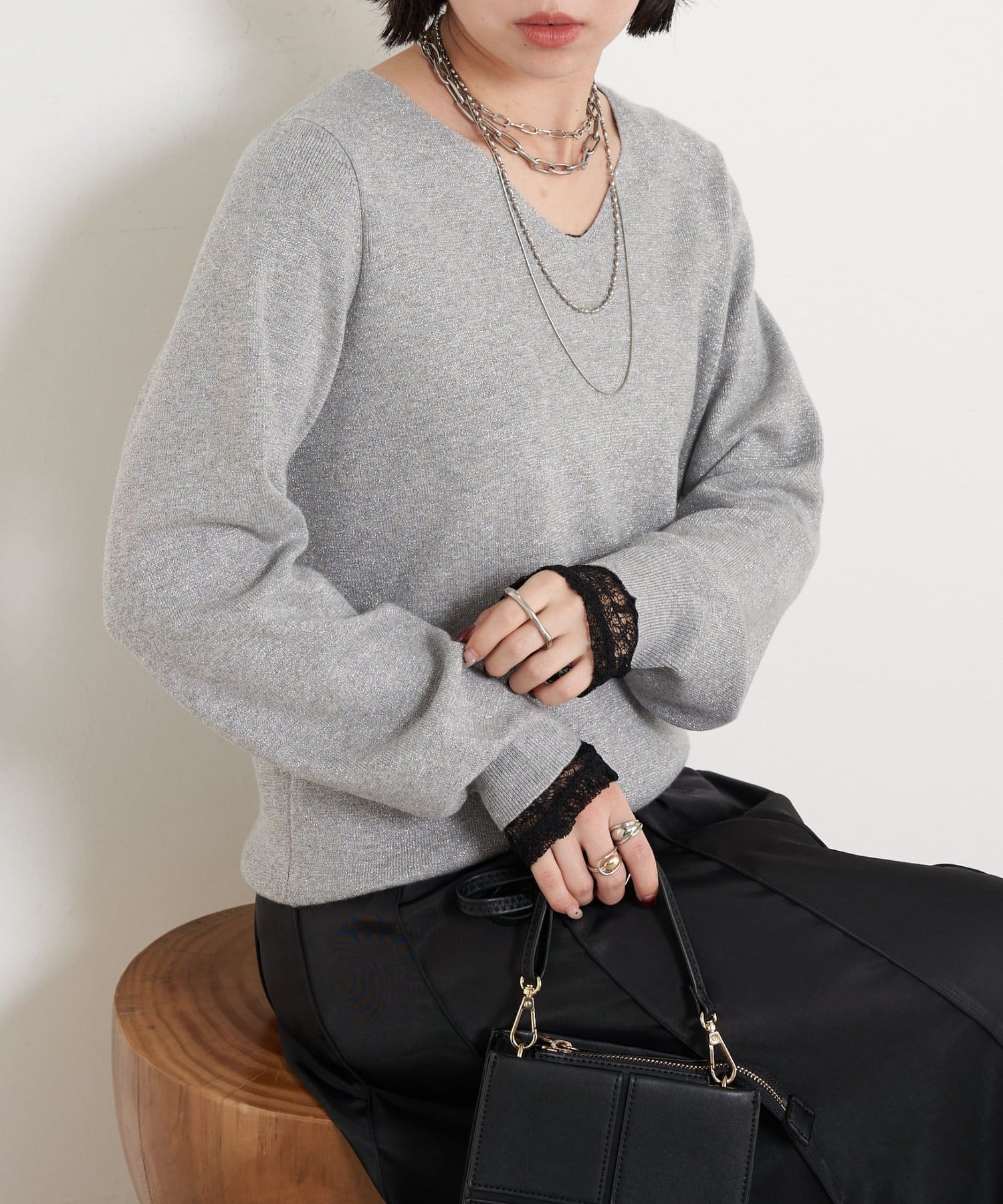 ラメプレーティングVニット