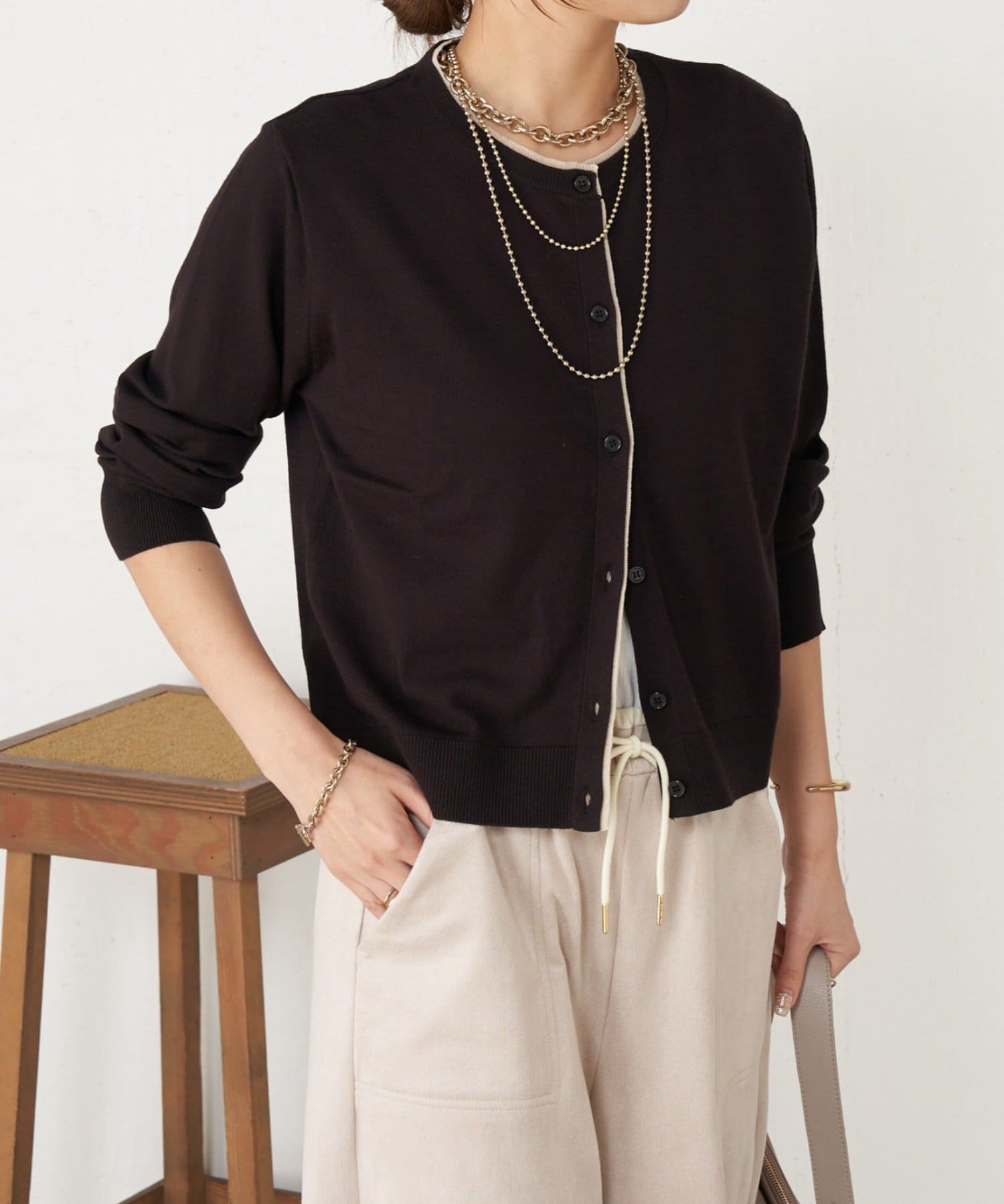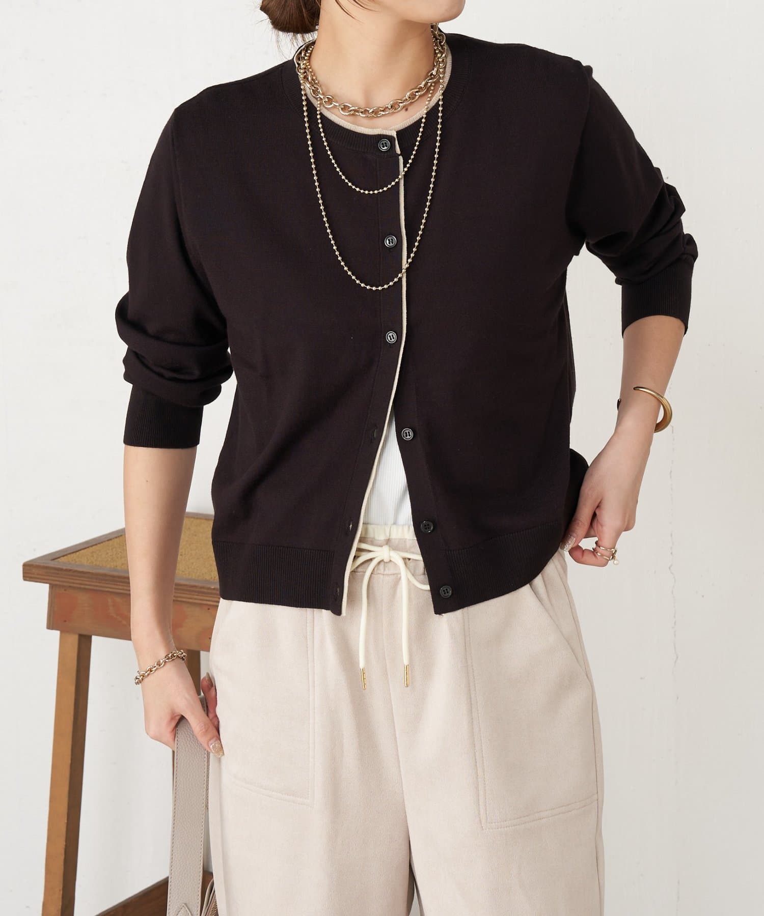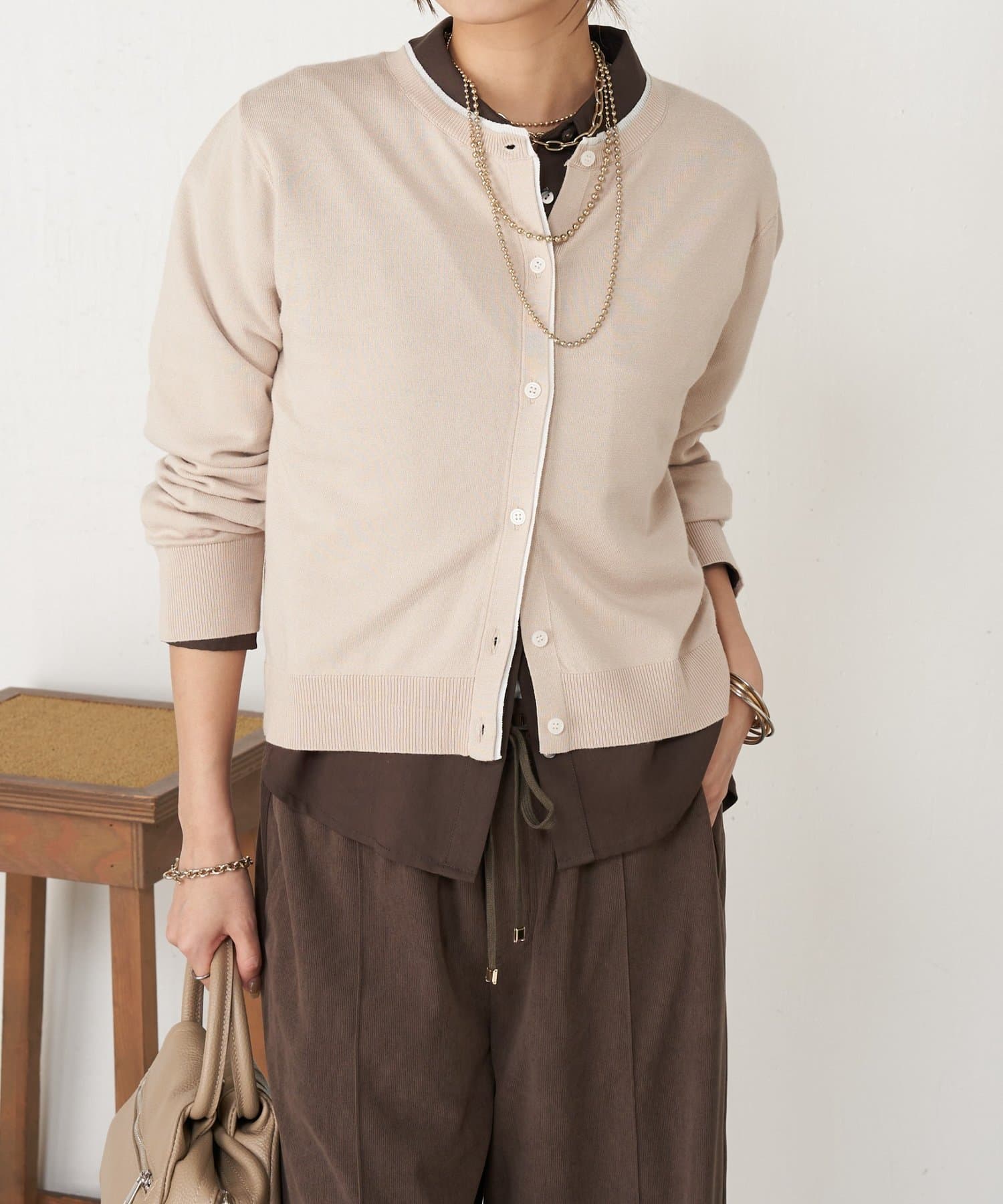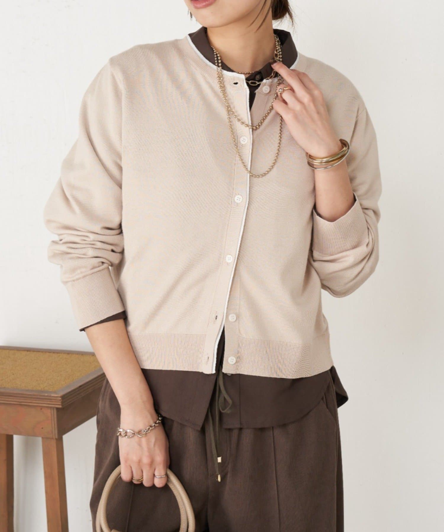 ・重ね着風のデザインが、コーデに奥行きとこなれ感を加えるカーディガン。