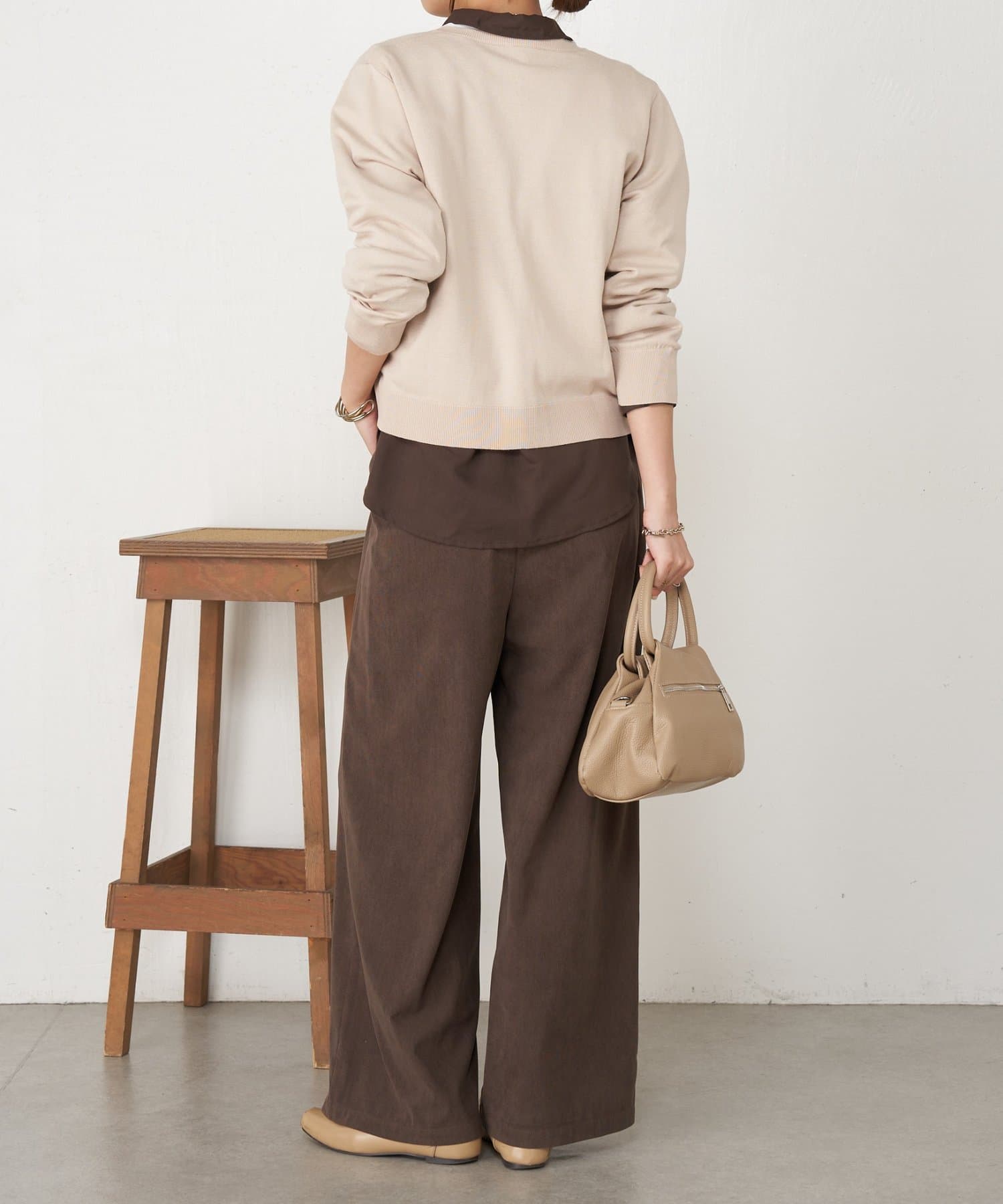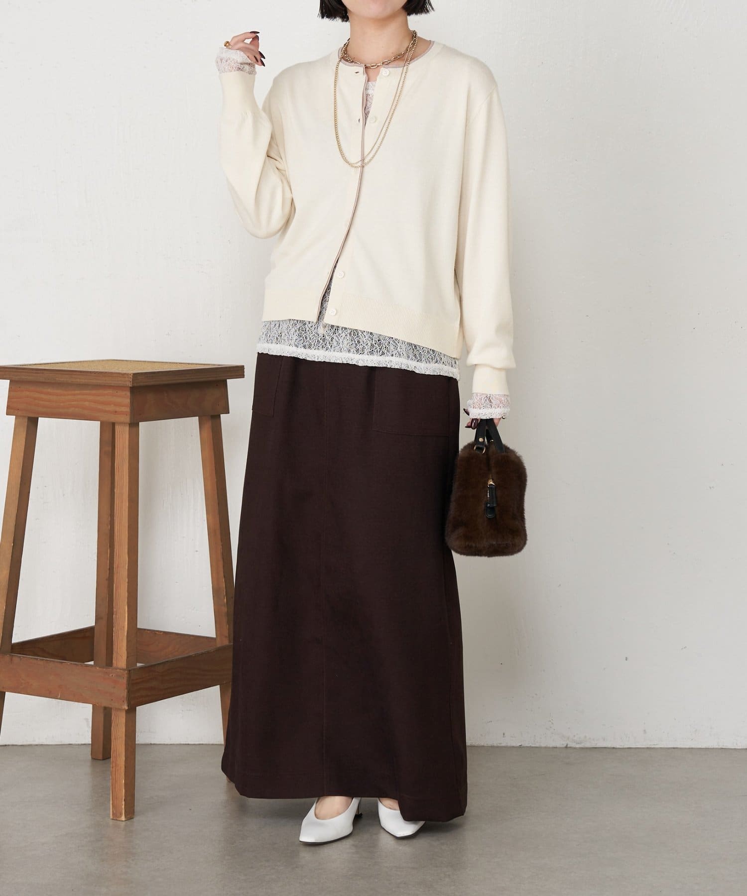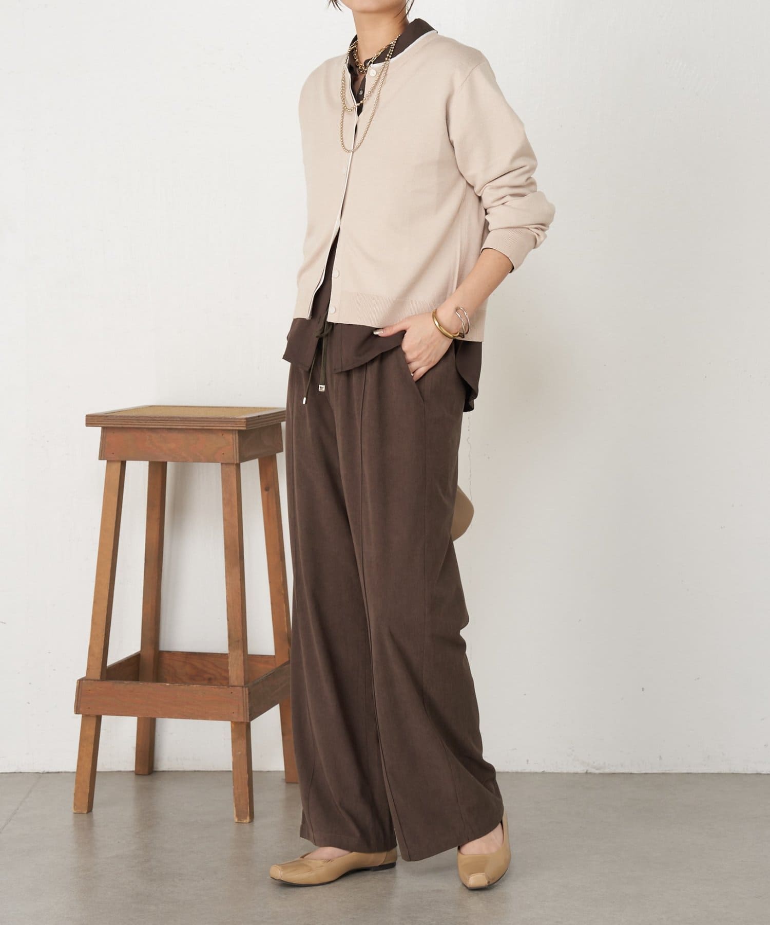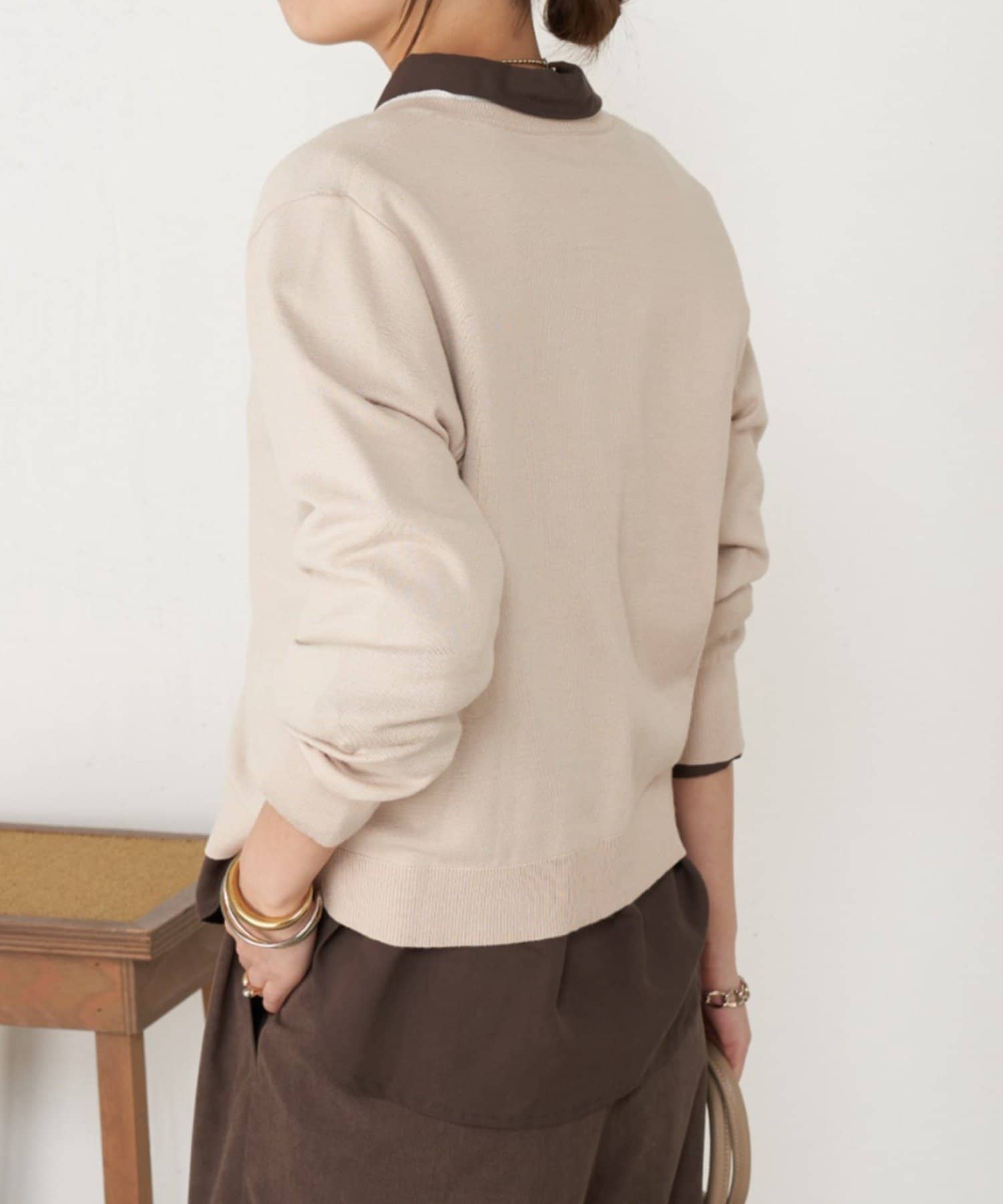 ・重ね着風のデザインが、コーデに奥行きとこなれ感を加えるカーディガン。