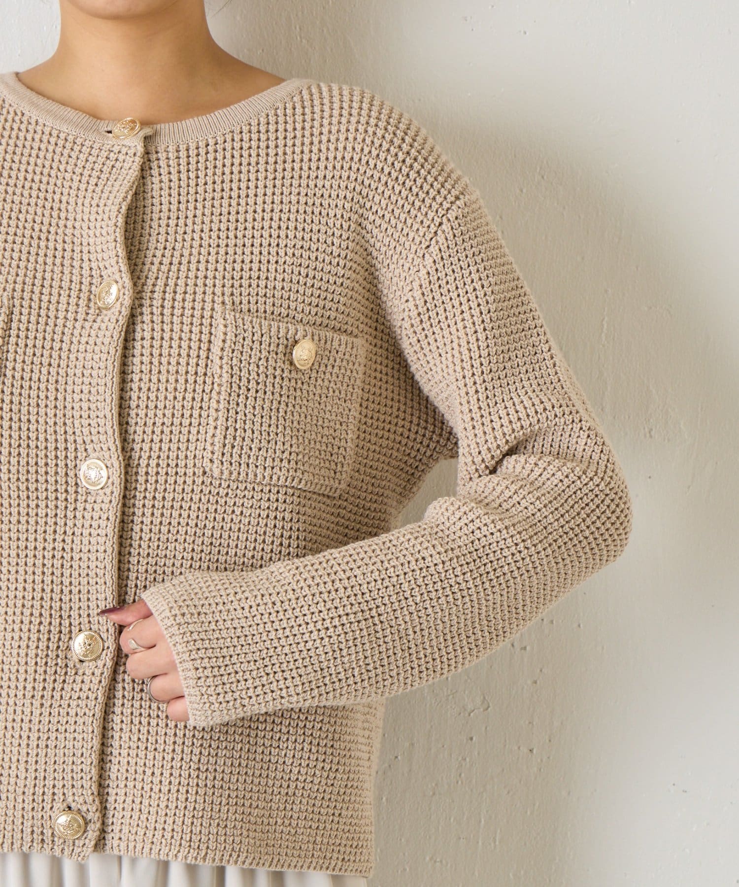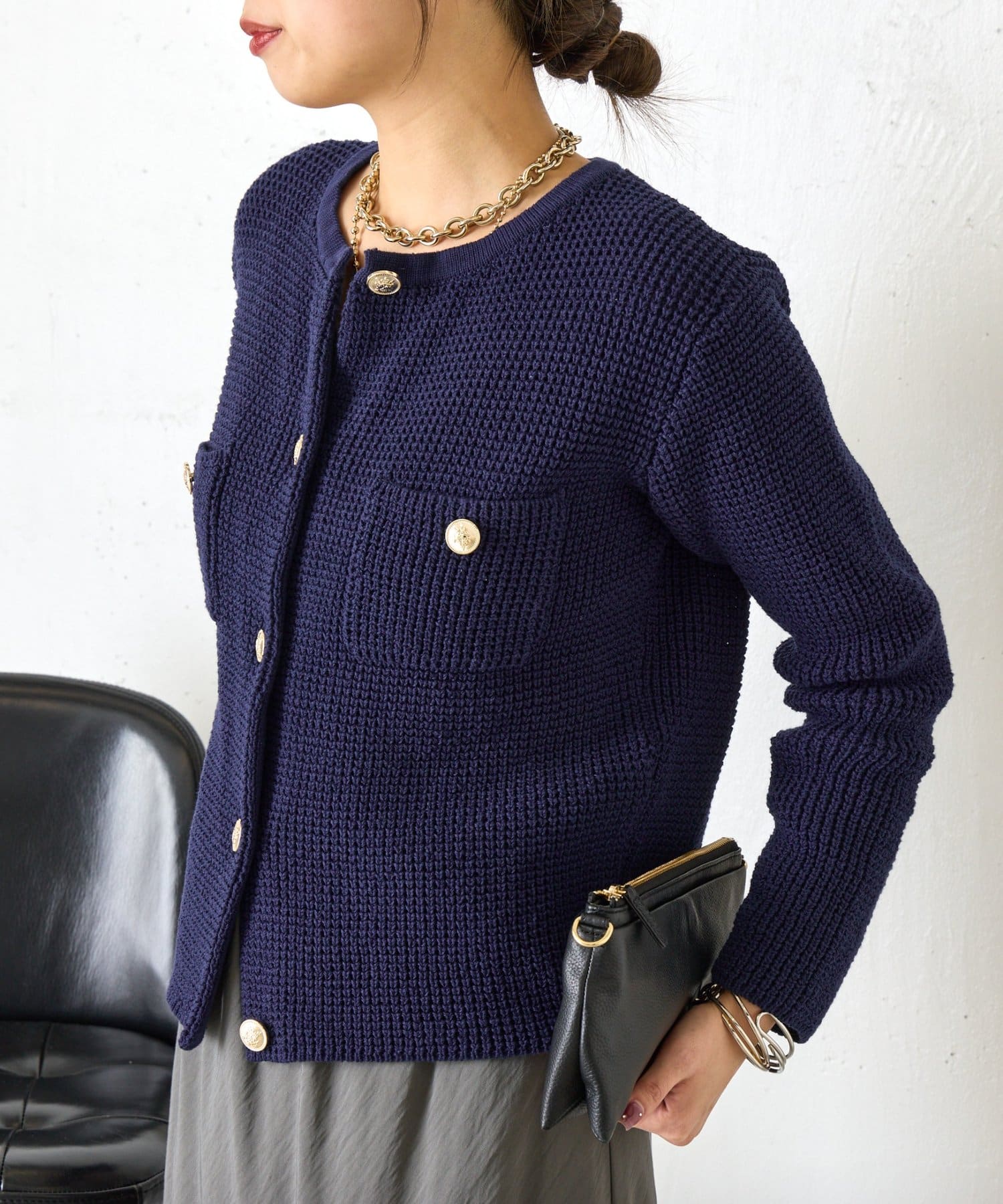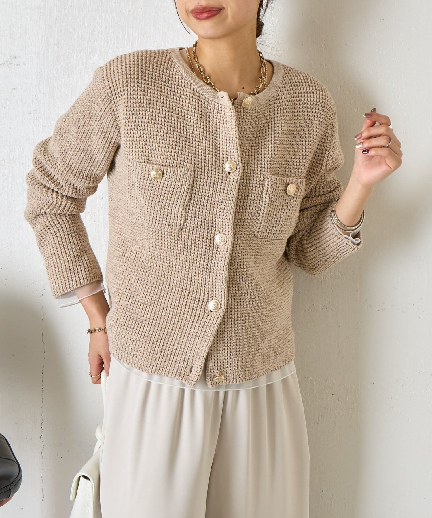 クラシカルなボタンが映える、大人上品カーディガンが新登場