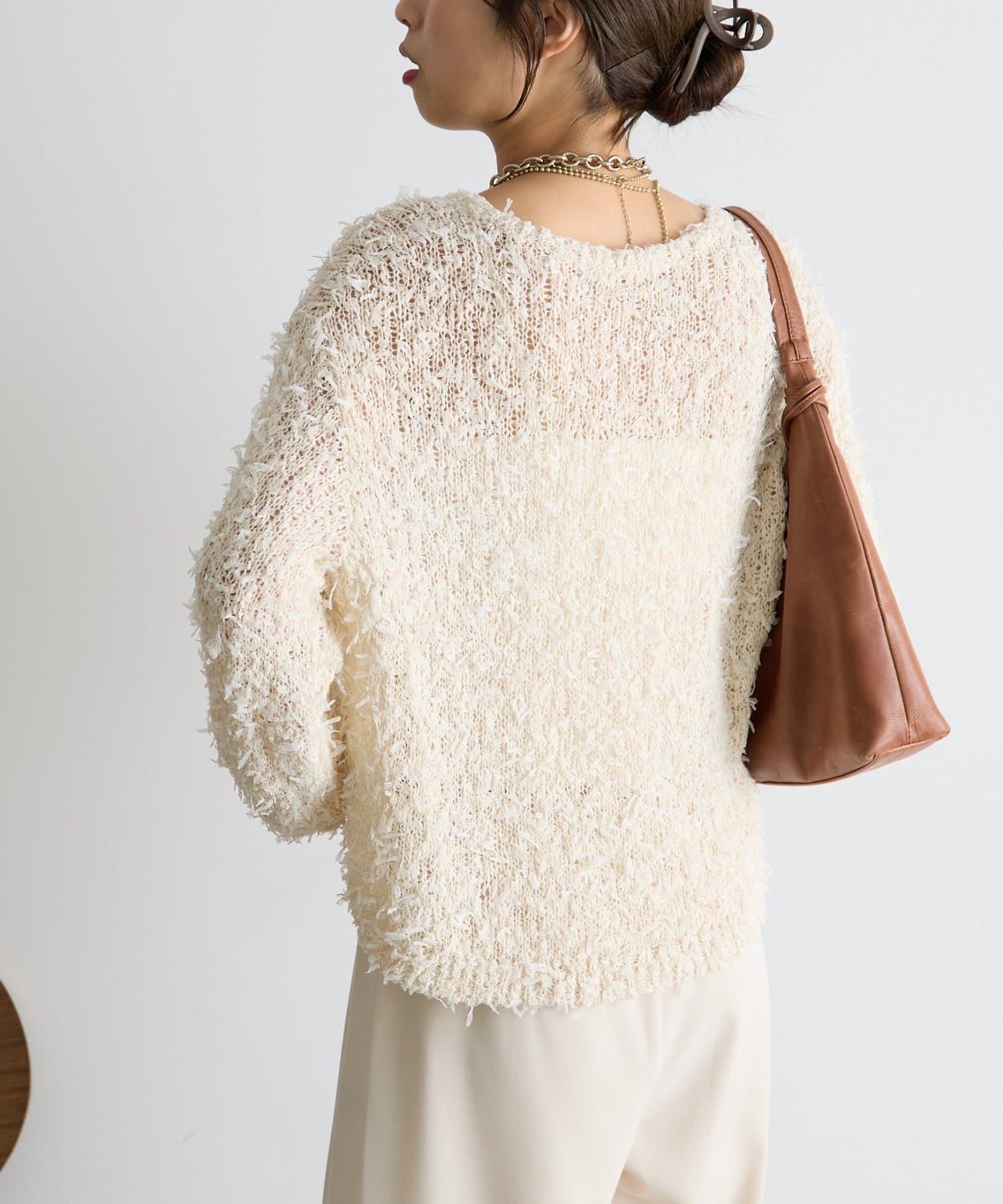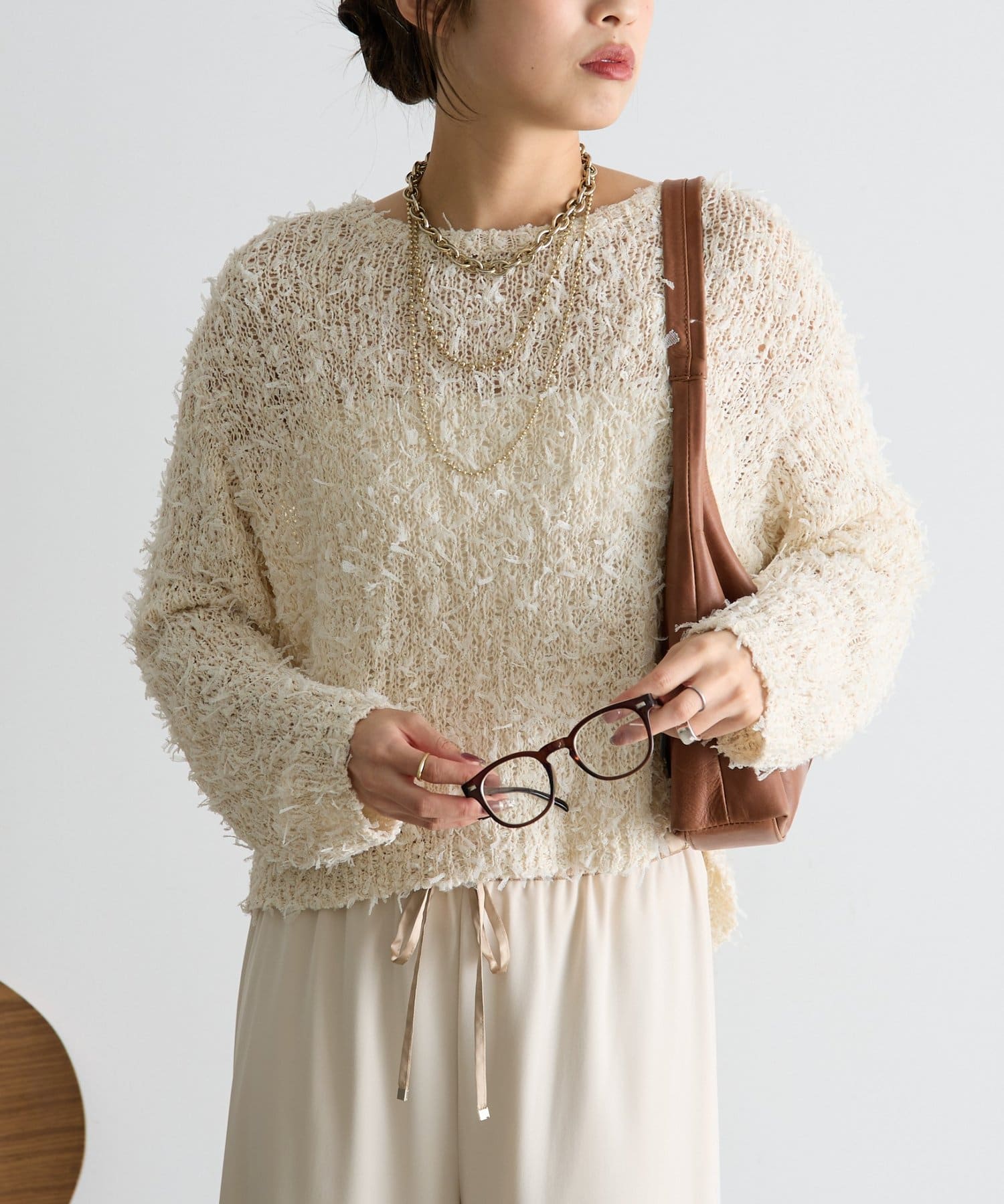 ・リボン×チュールをミックスした素材感で、着るだけで華やぐ主役ニット