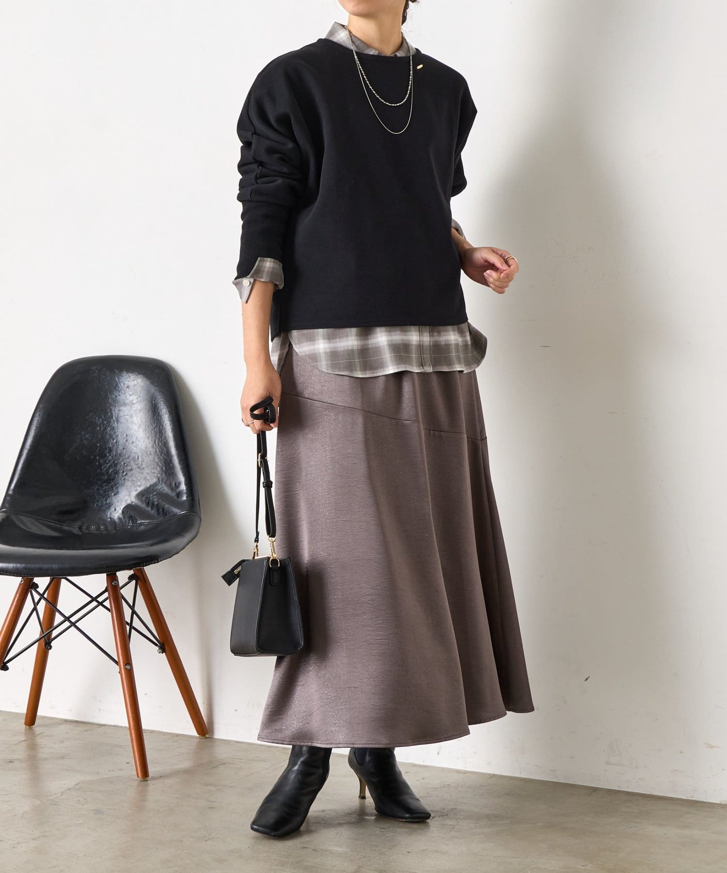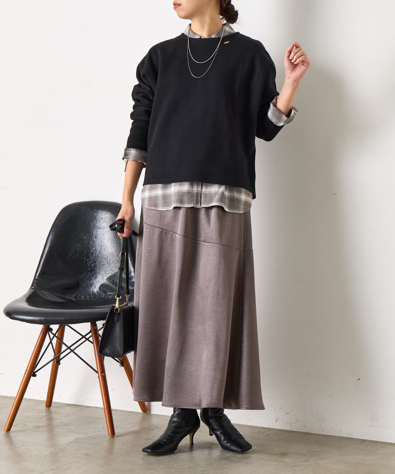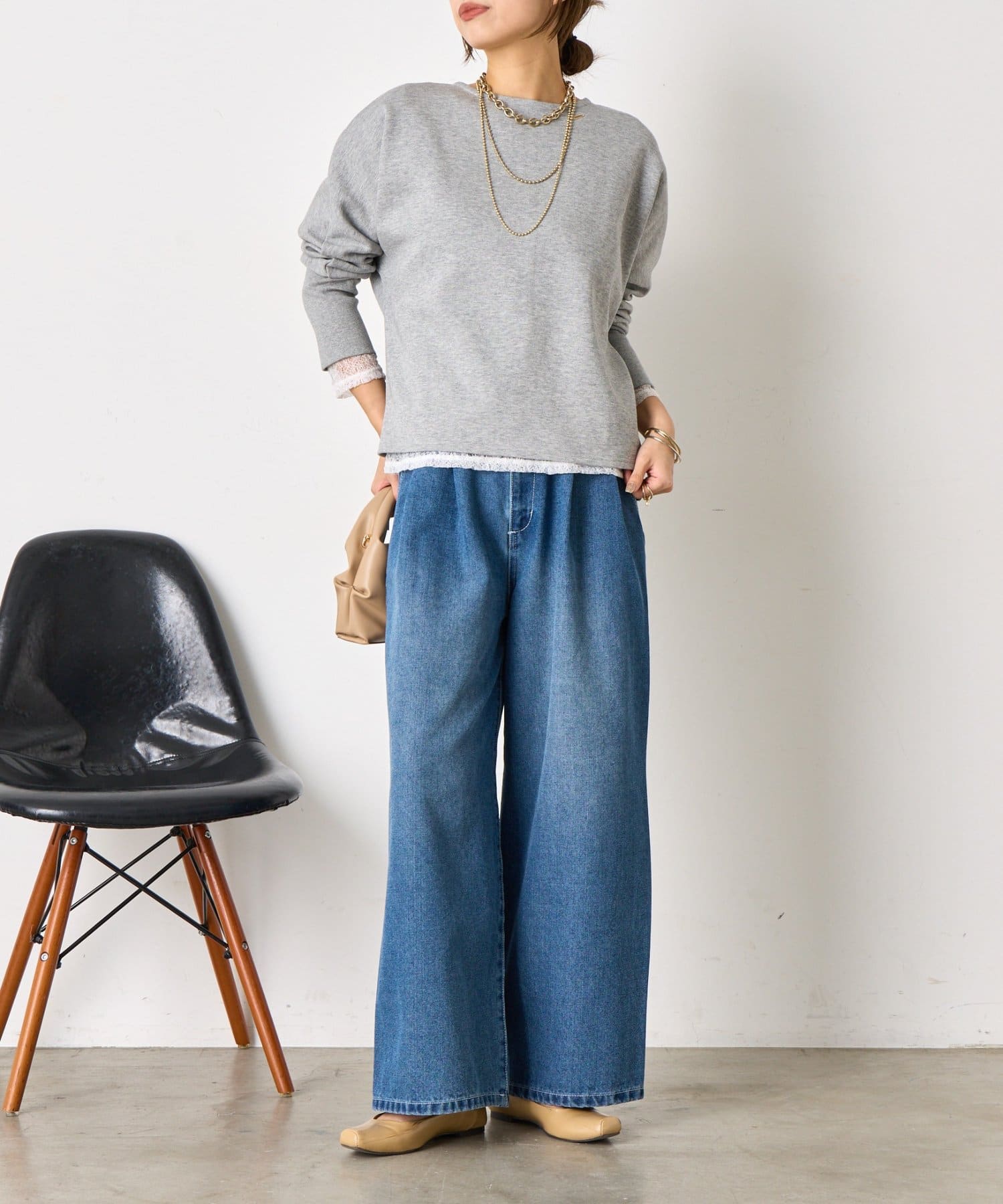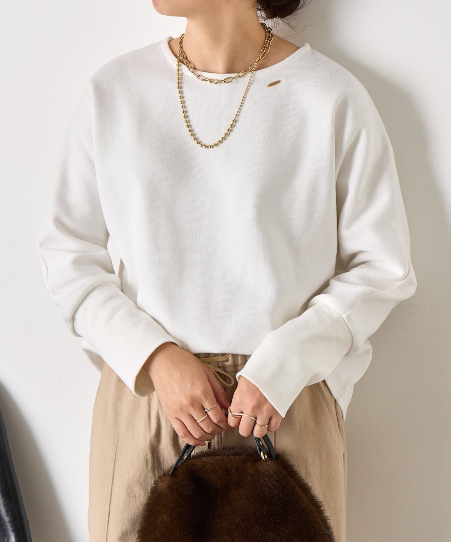 ・デコルテラインを程よく見せてくれるので、顔周りがすっきりと見えて女性らしい抜け感をプラス。
