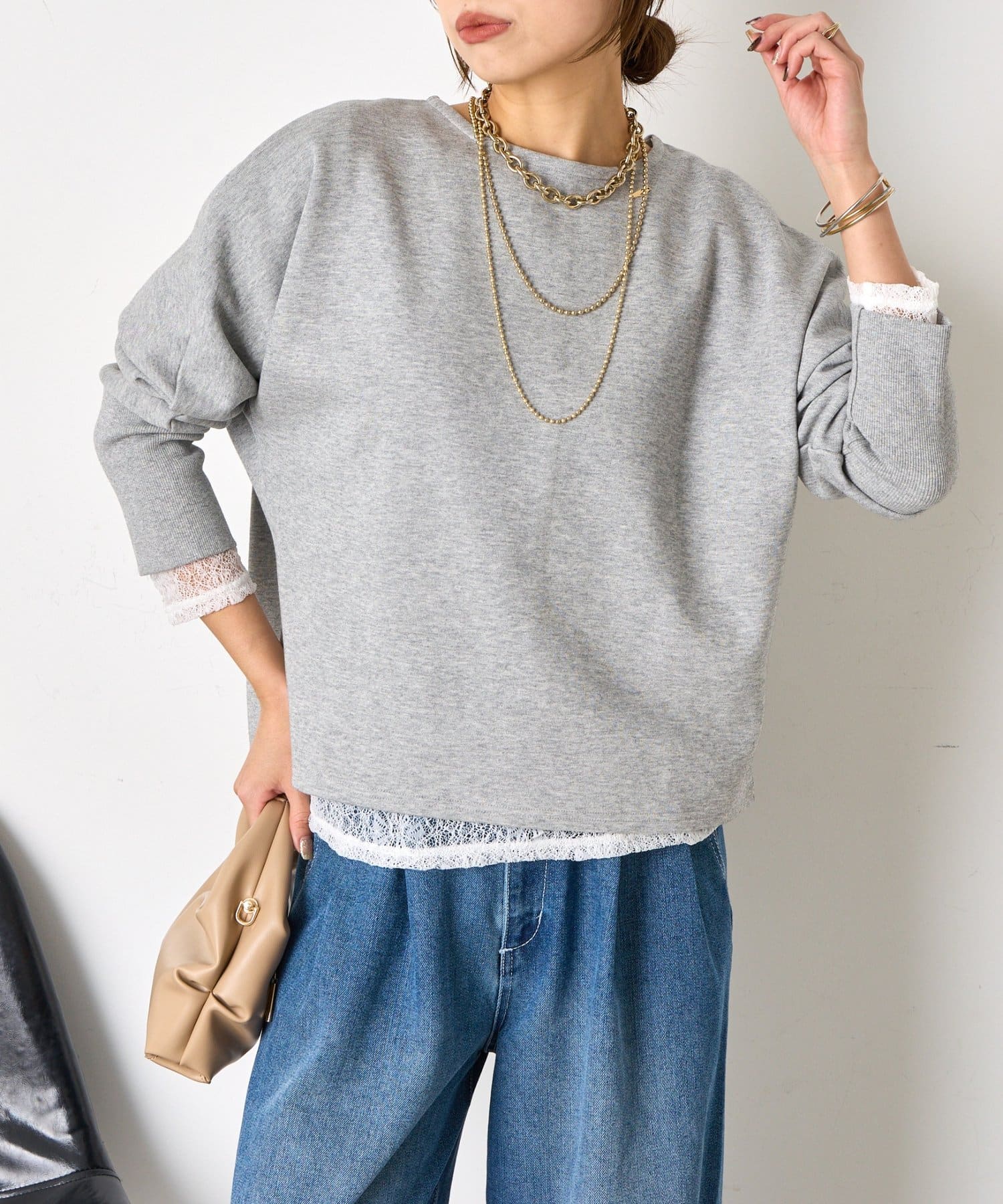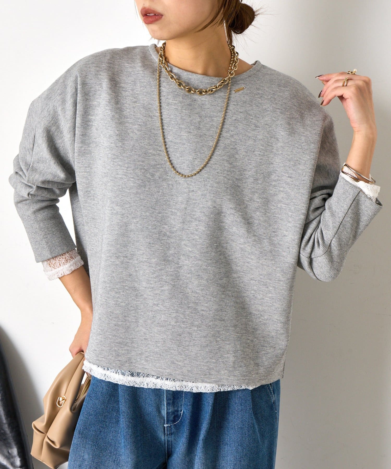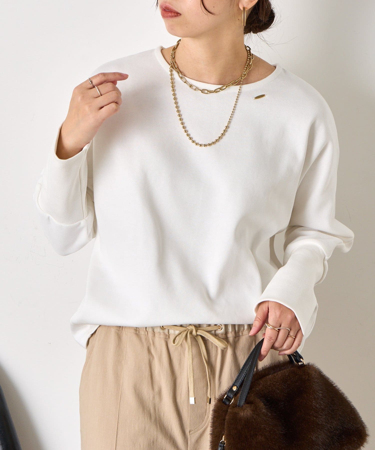 ・ラフすぎず気こなれた感を演出するドルマンデザインのプルオーバー。気になる腰回りをしっかりカバー◎