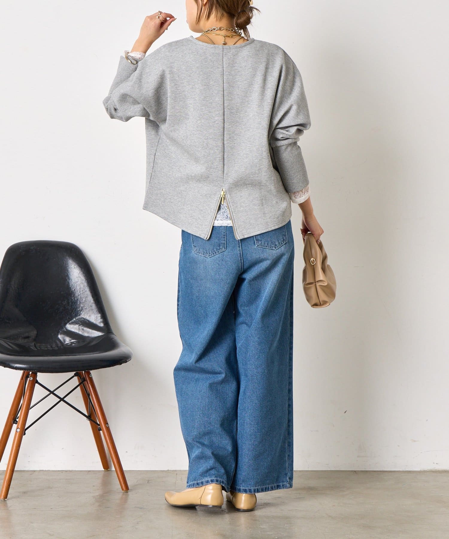 ・ジップ施したバックデザインはお好みで開閉可能◎