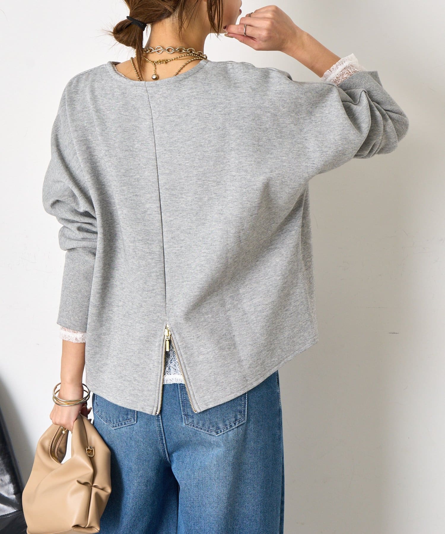 【後ろ姿で差をつける】ドルマンバックジッププルオーバー