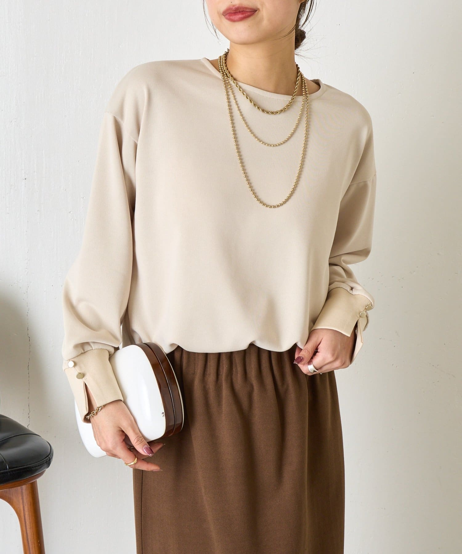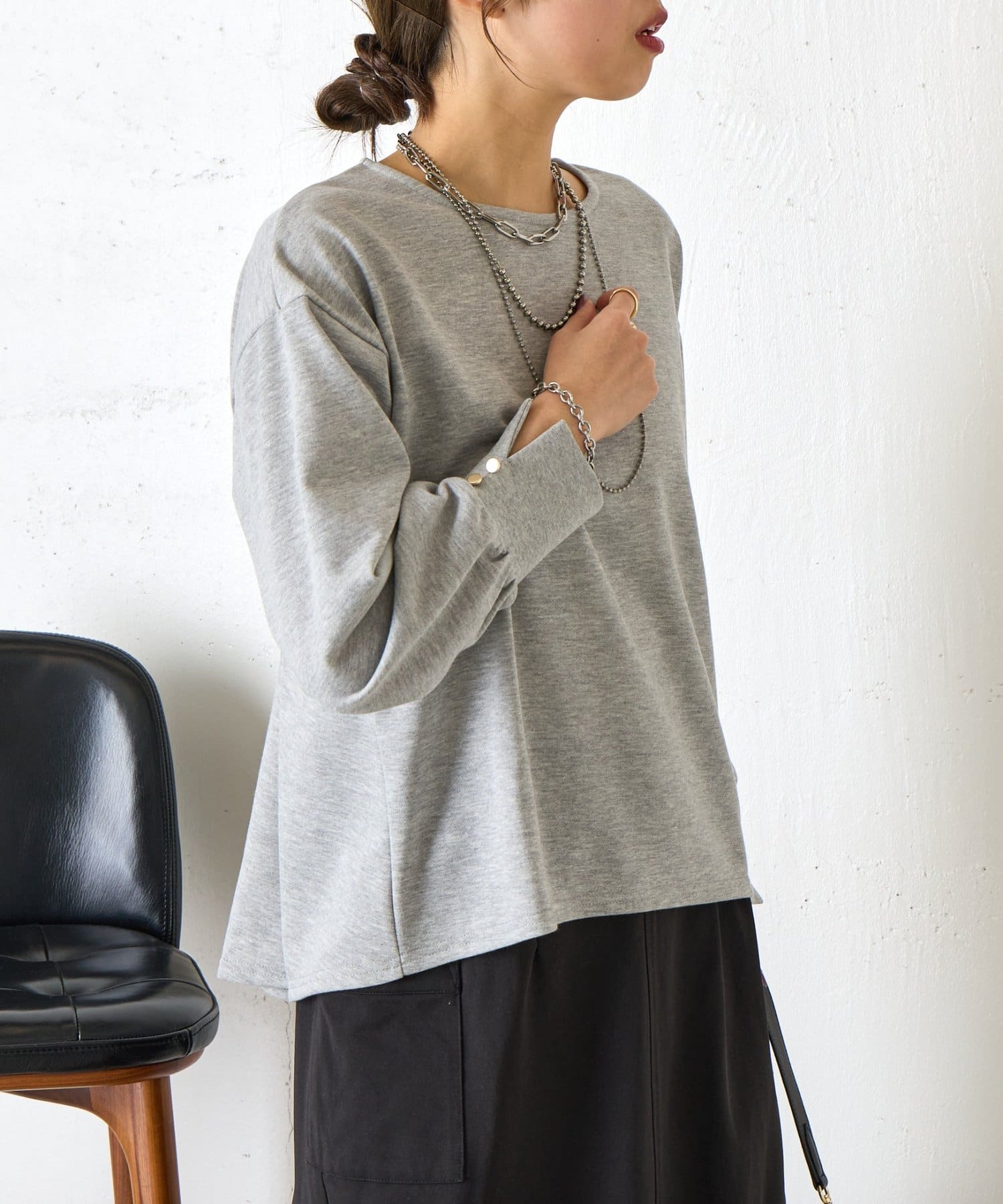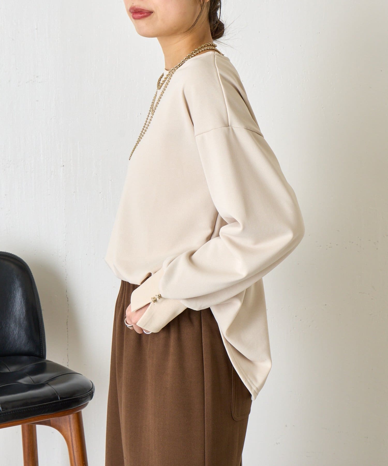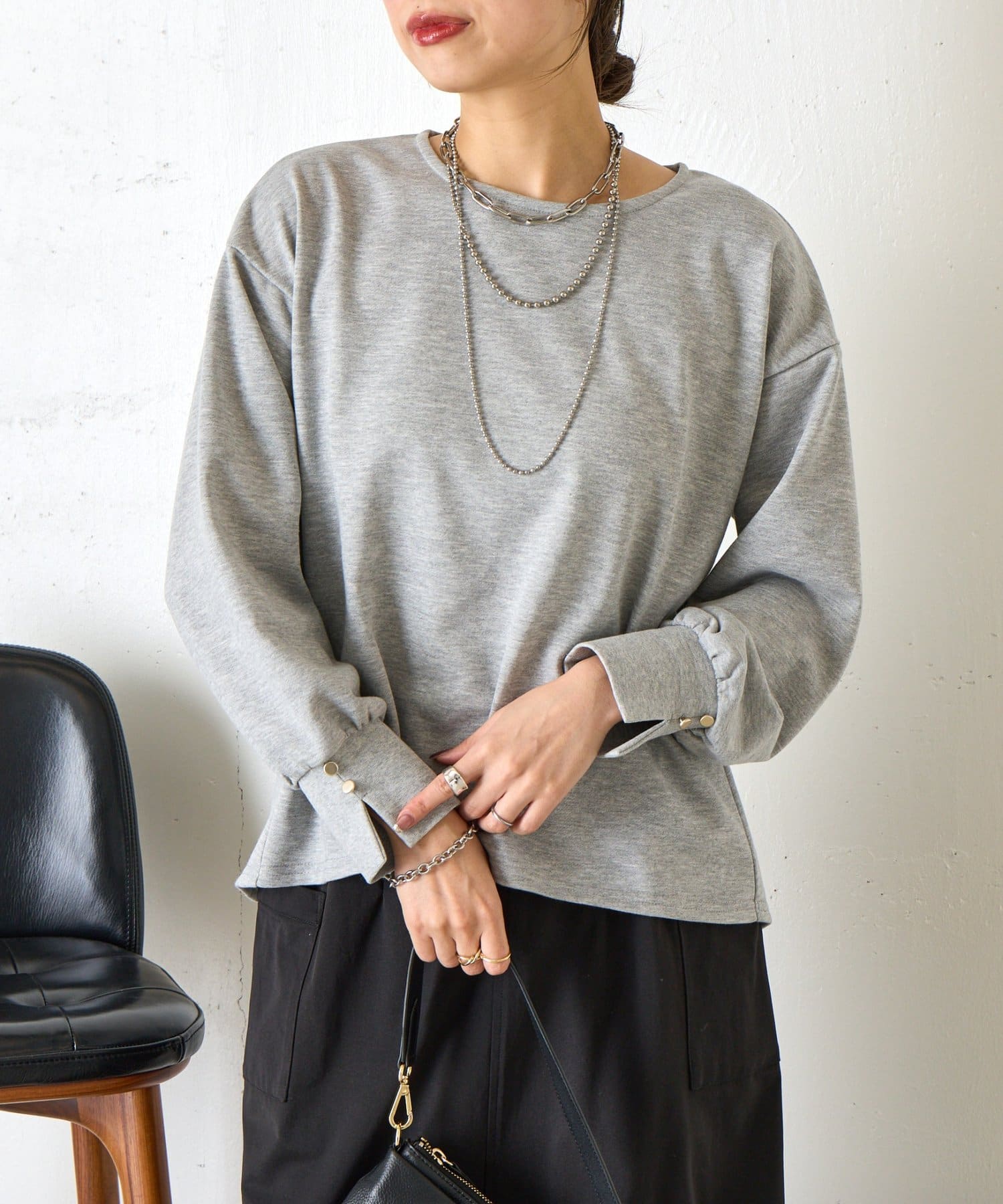 ・袖にはスリットを入れ、さりげない抜け感をプラス