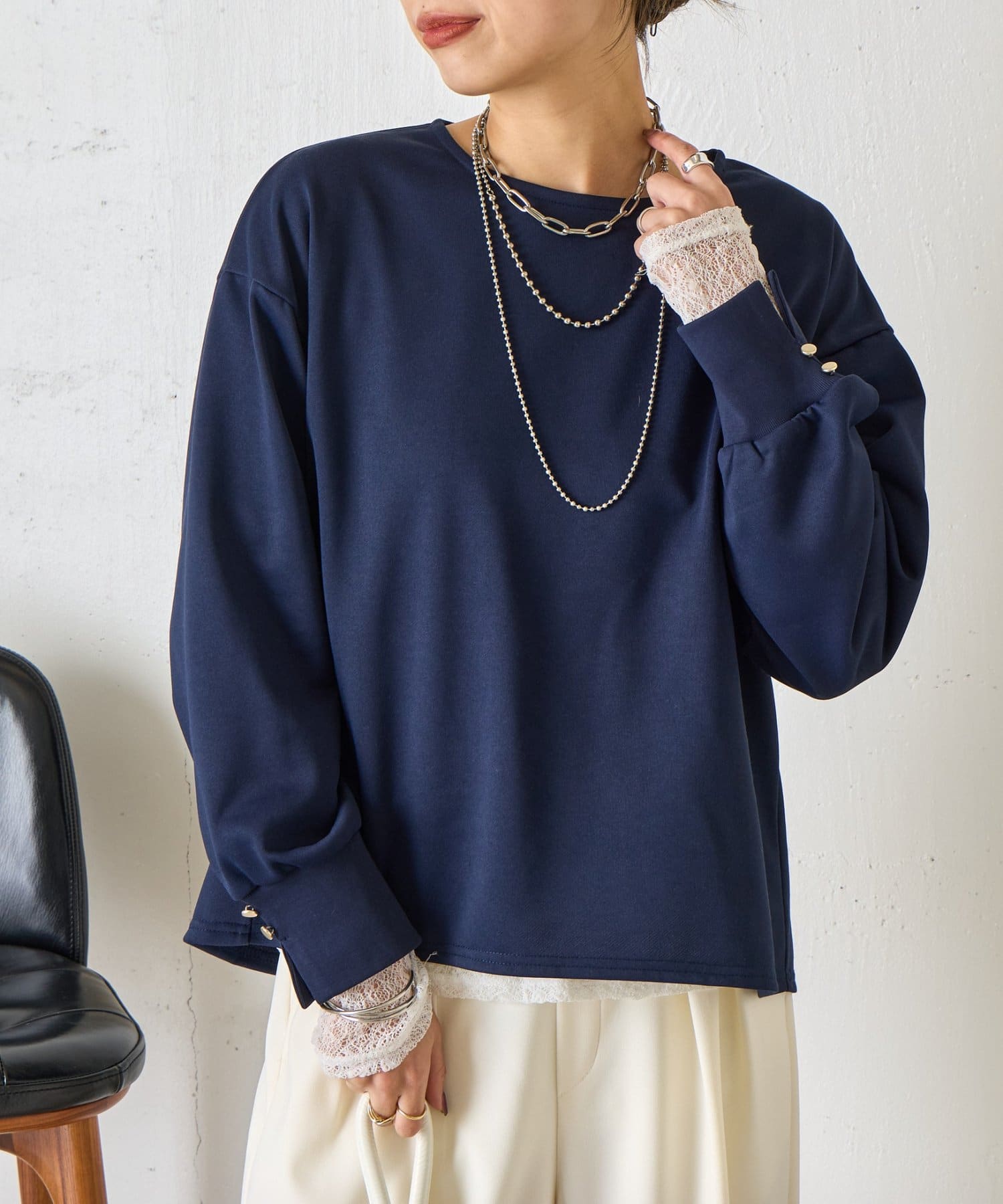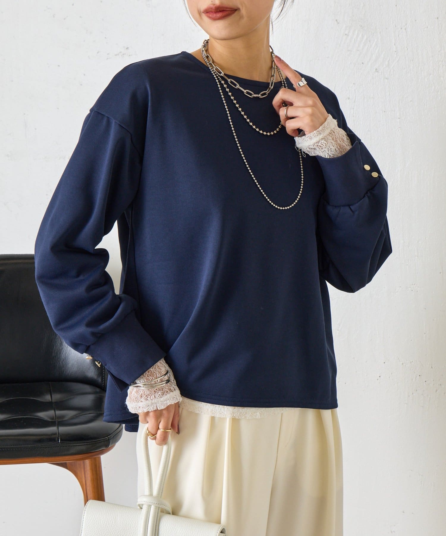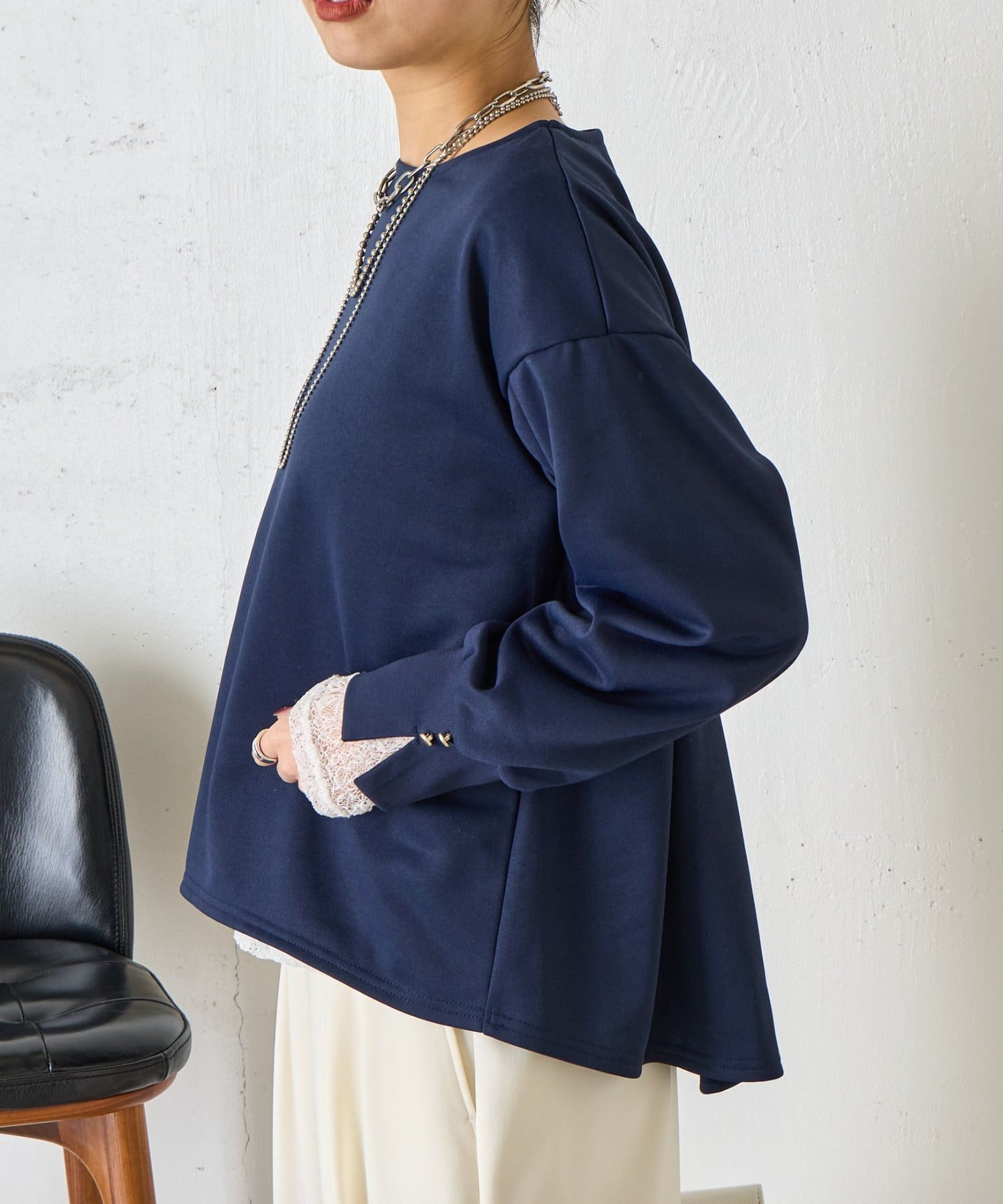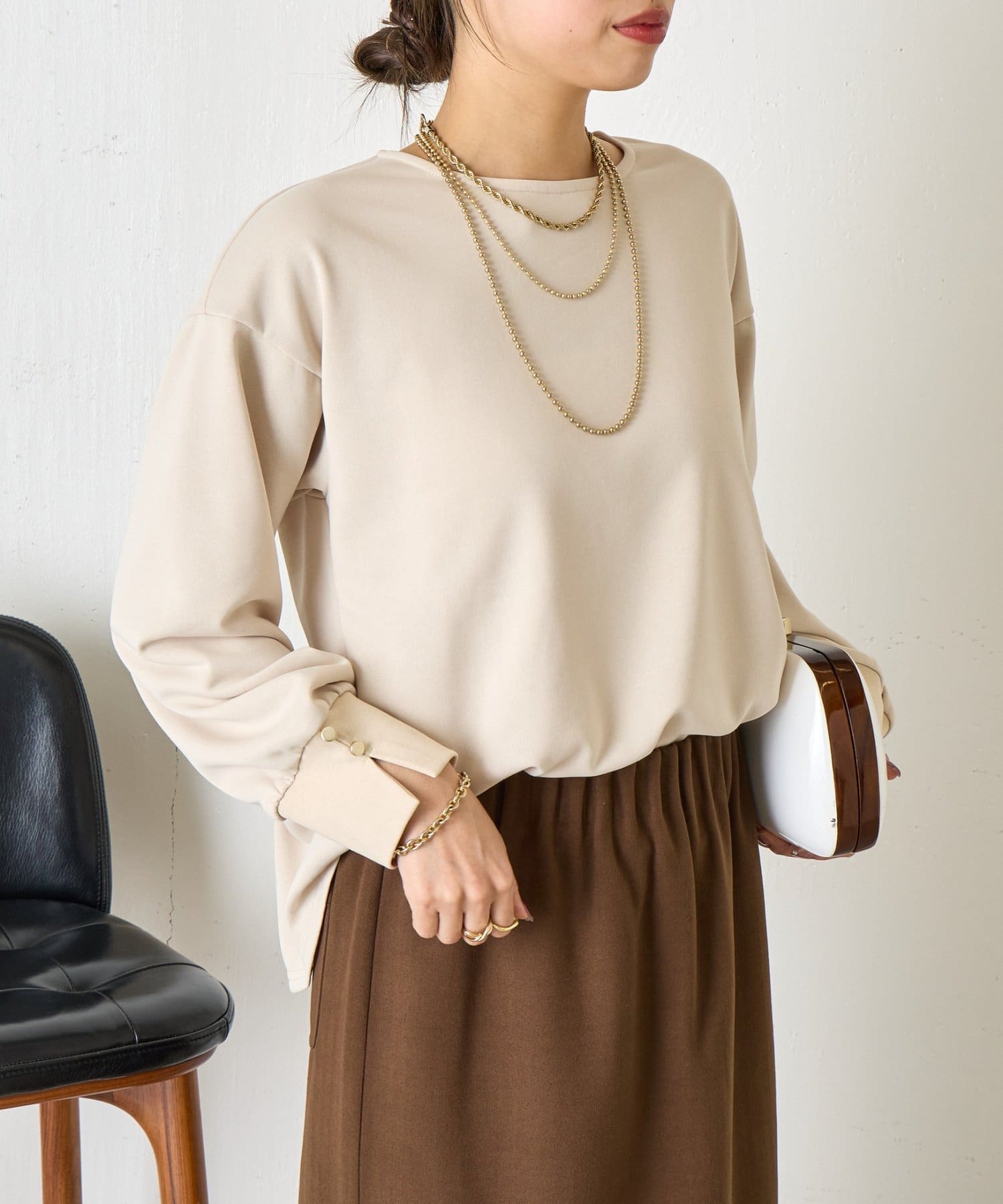 ・袖にはスリットを入れ、さりげない抜け感をプラス