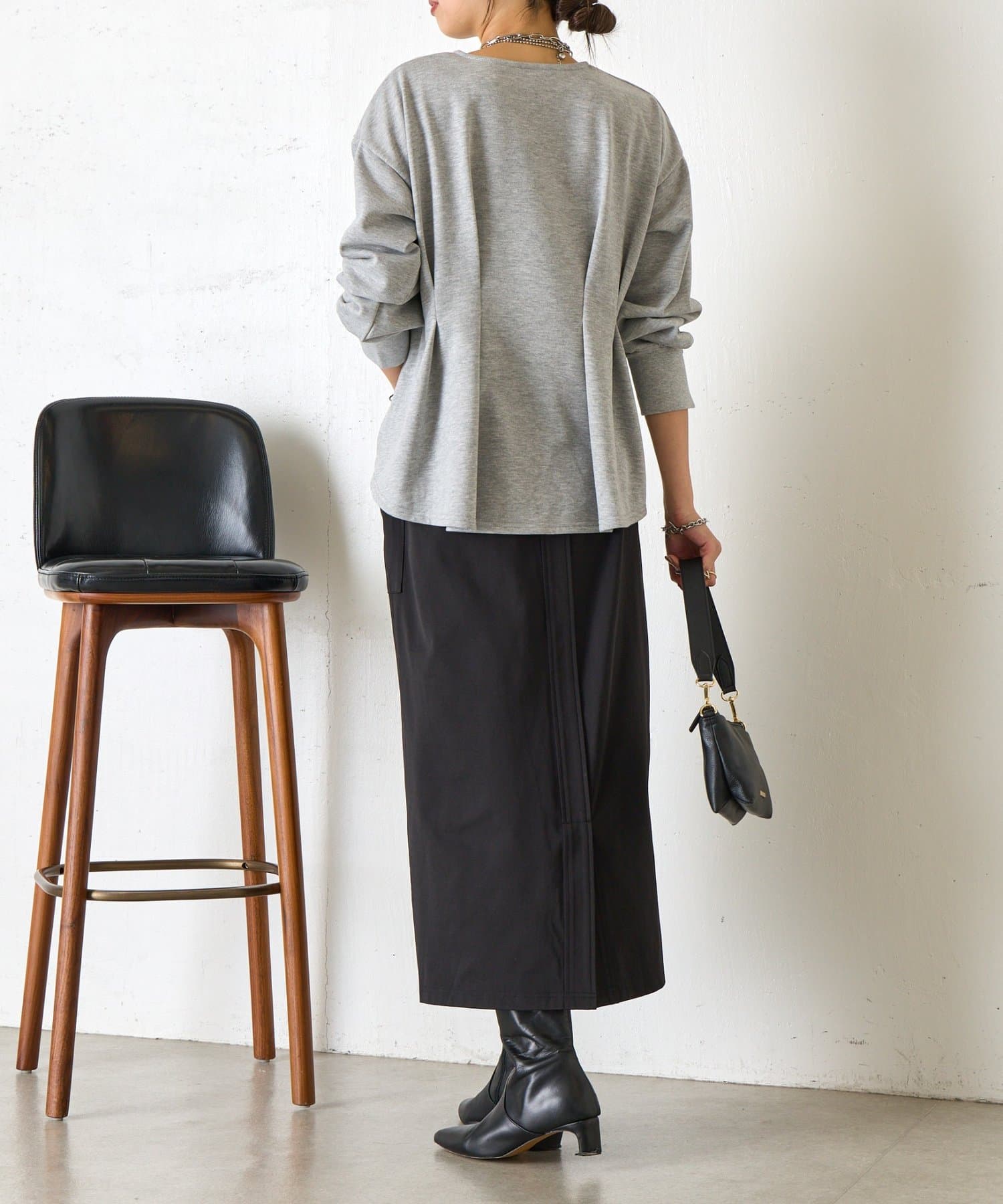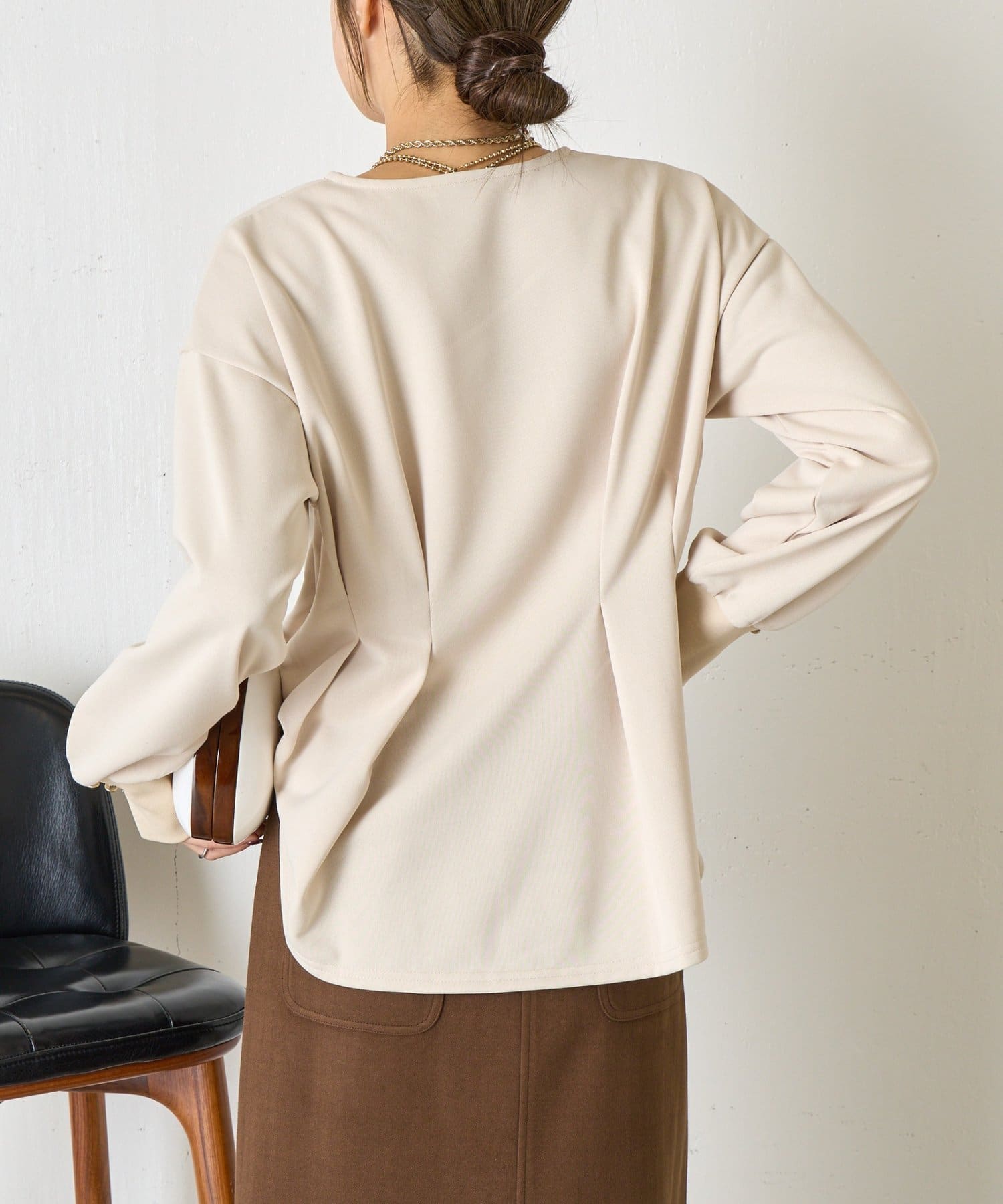 ・背中に施されたタックがポイントになり、後ろ姿まで抜かりないデザイン